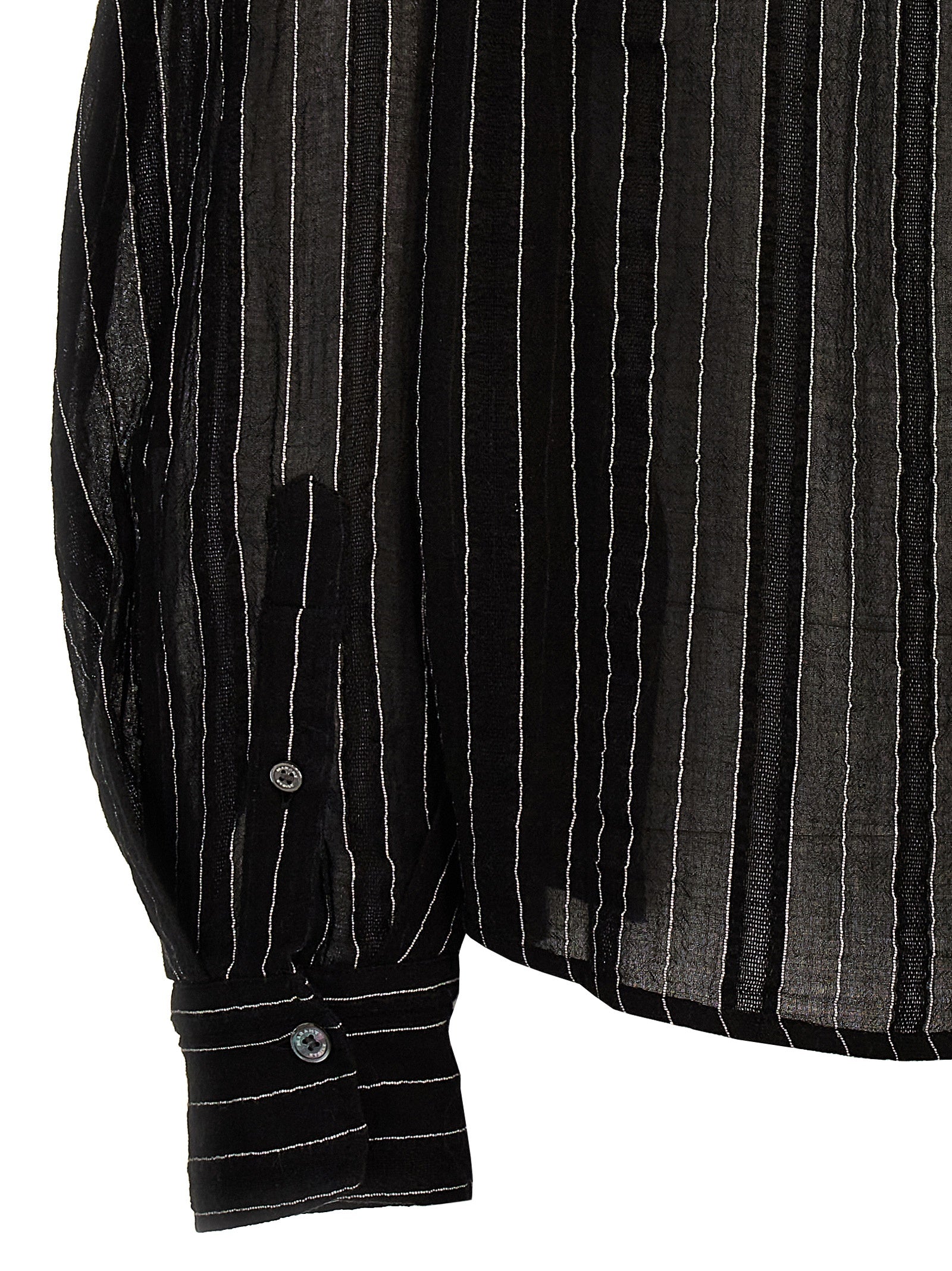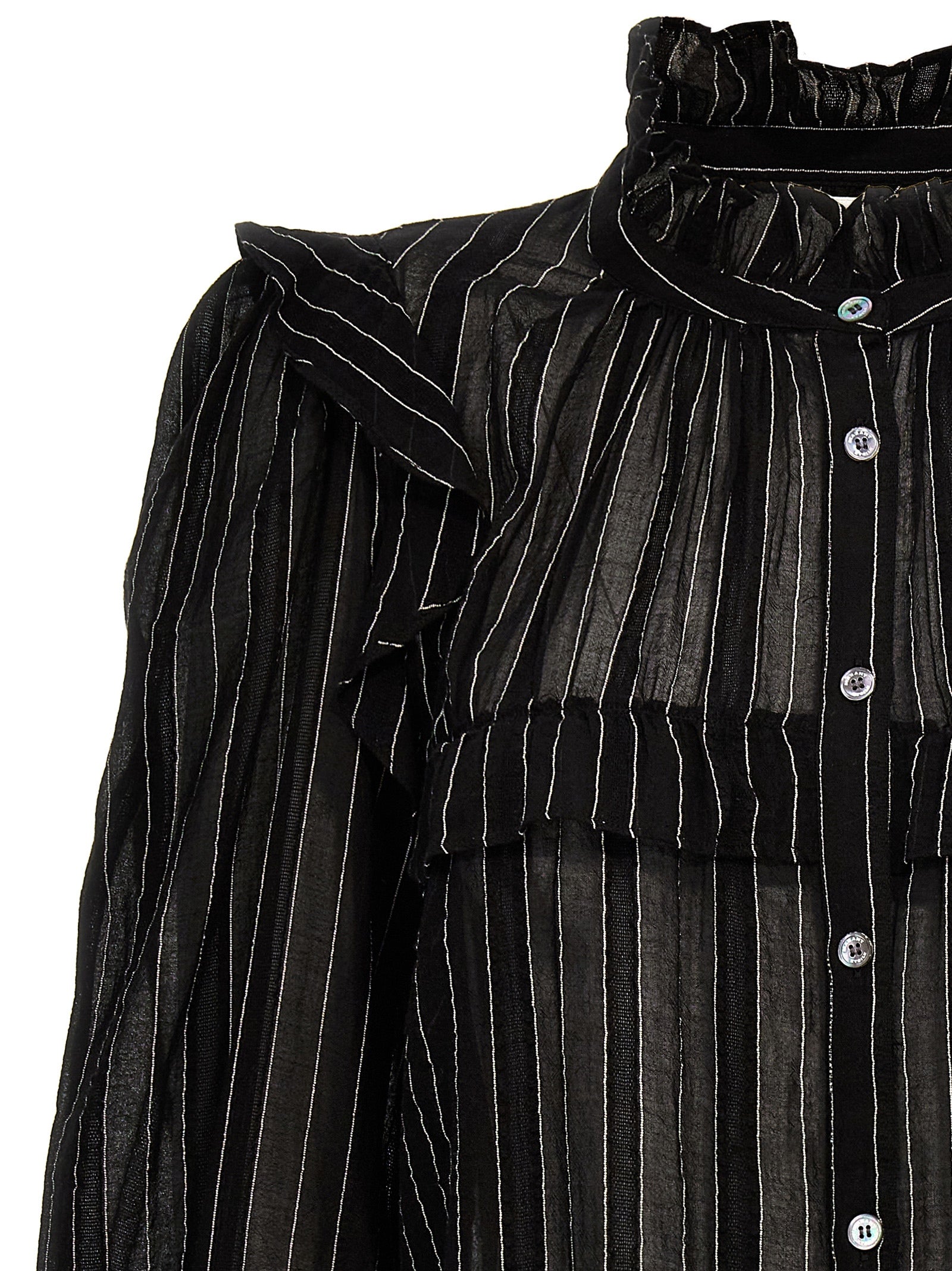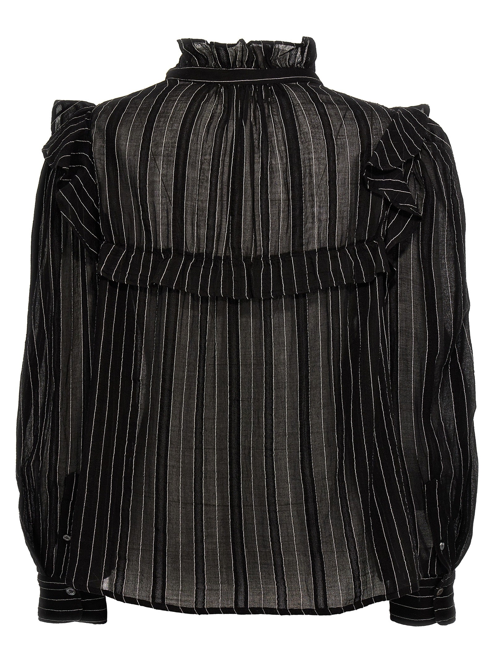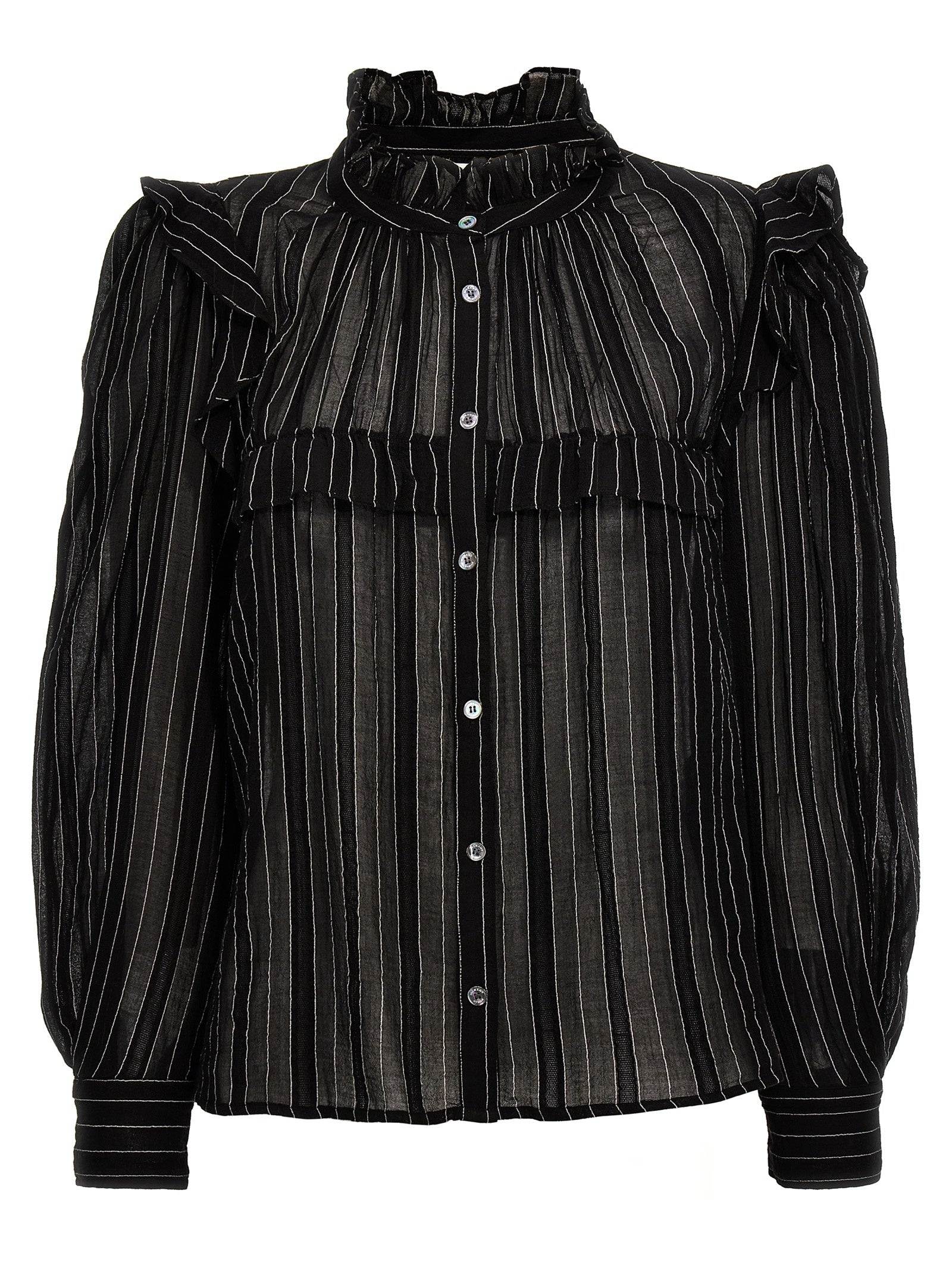 Chemise en coton à rayures «idety» avec détail à volants, fermeture de bouton, manches à remise à long terme.