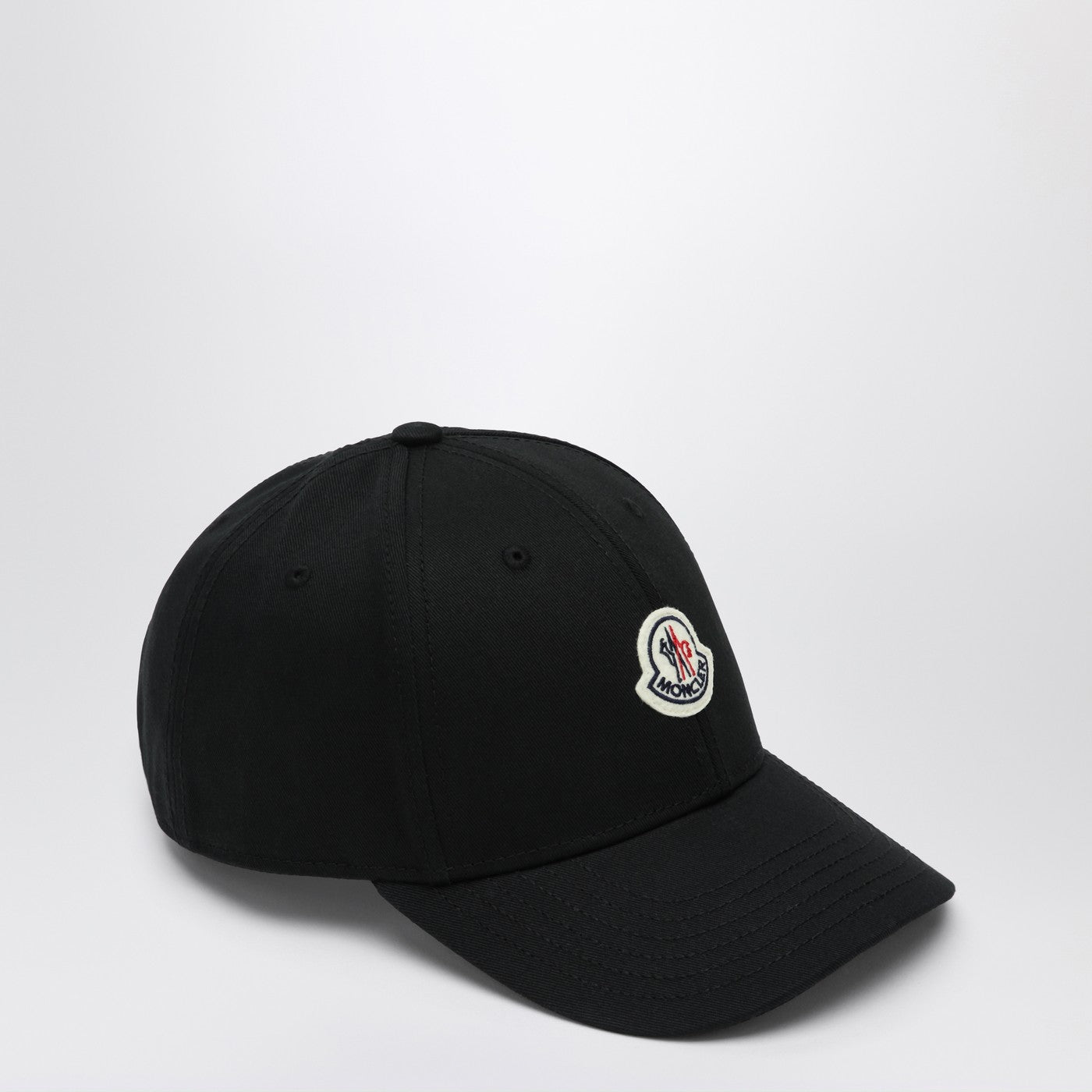 Capeur de visière Moncler en gabardine en coton noir, avec un patch de logo avant et une sangle réglable à l'arrière.