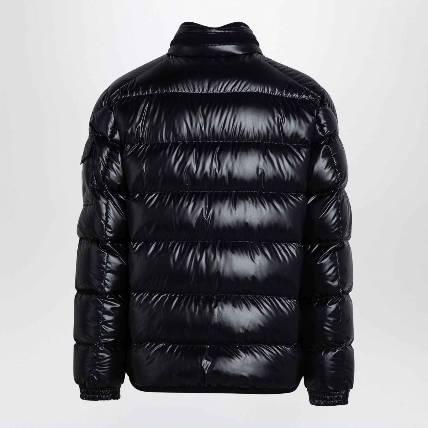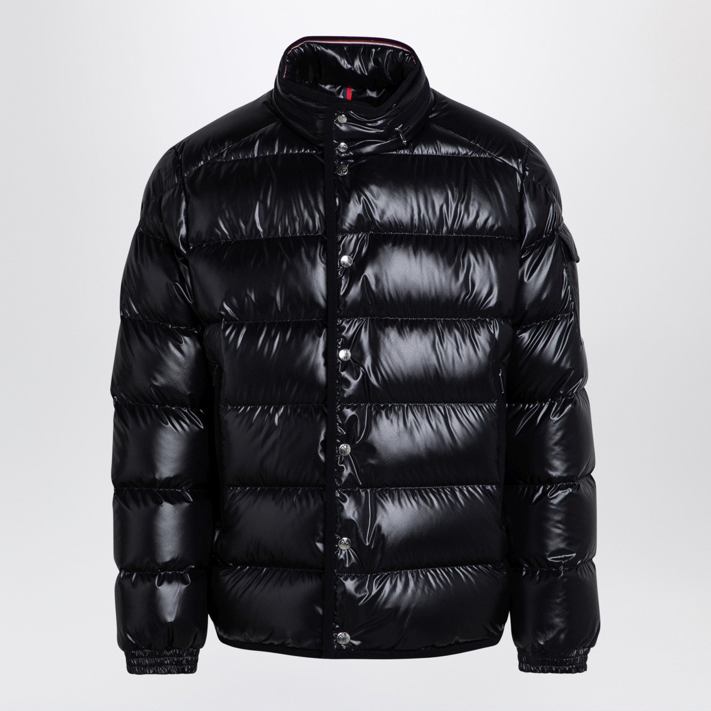 Jacket court-bas en nylon bleu brillant Moncler Shiny