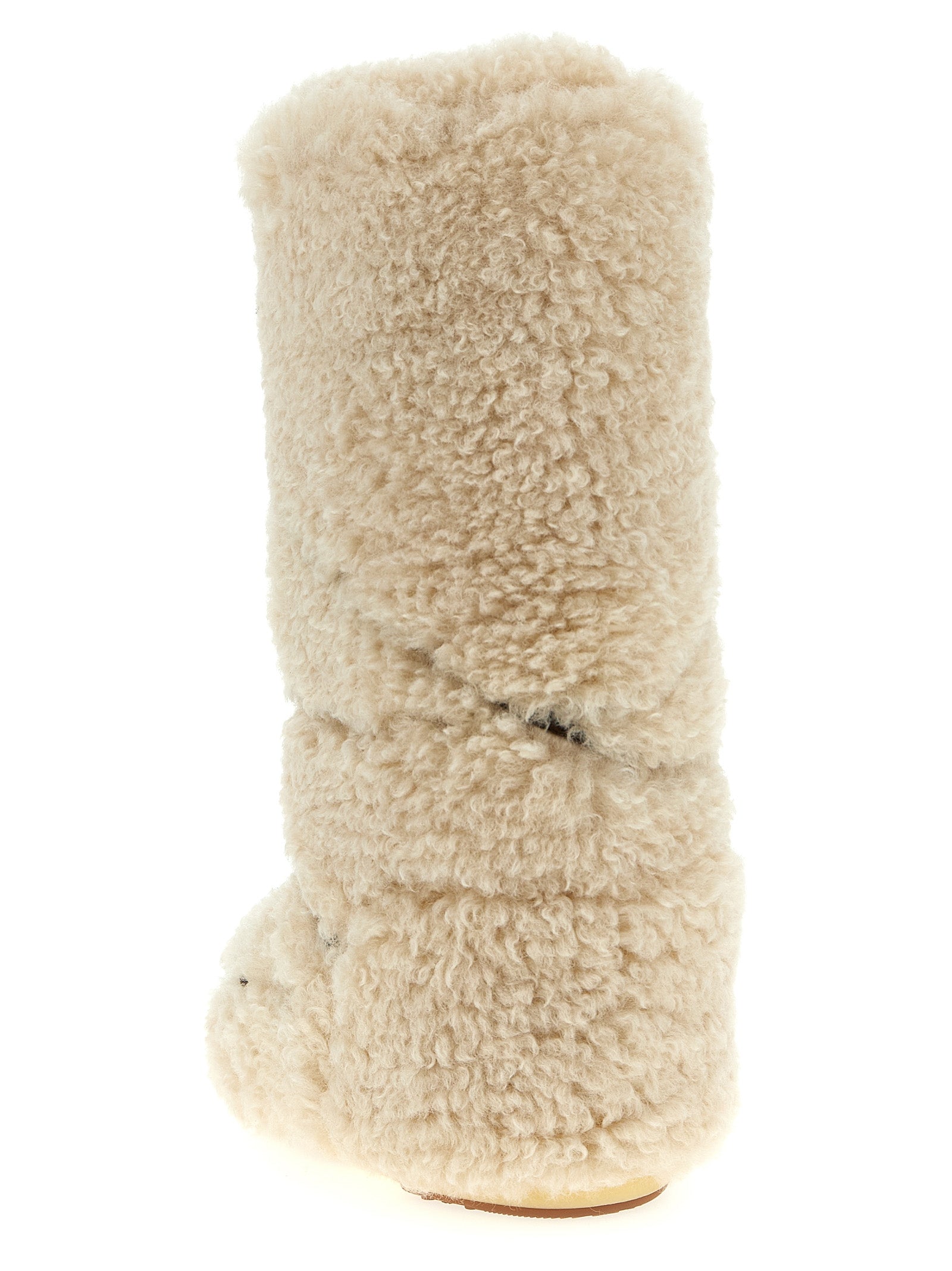Bottes «icônes bouclées supplémentaires» dans le tissu à effet fourrure, modèle ambidextre, doublure en mousse douce, lacets croisés tubulaires, cordon réglable, semelle intermédiaire en caoutchouc thermoplastique, bande de roulement en caoutchouc non glissée.