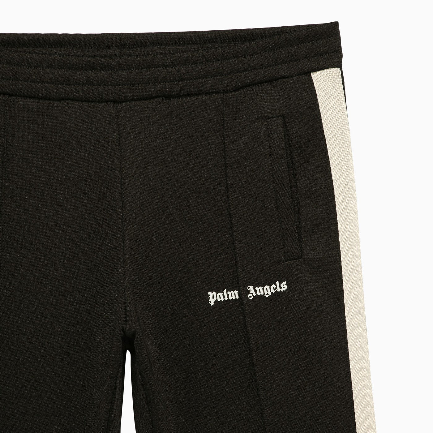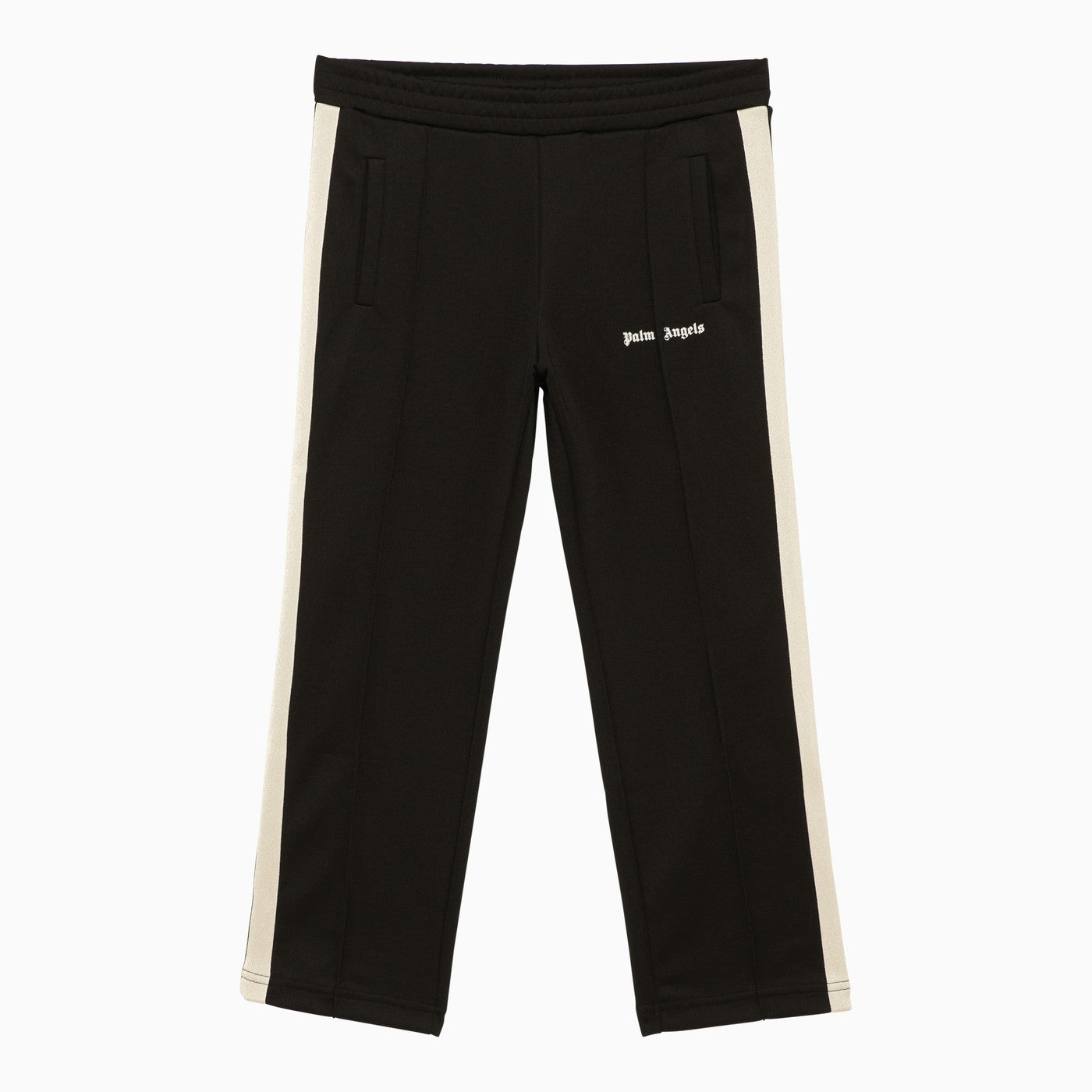 Pantalon de jogging en coton noir et blanc de Palm Angels avec une ceinture élastique, des poches avant et un logo de lettrage contrasté sur le devant.