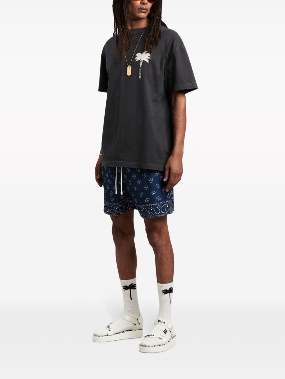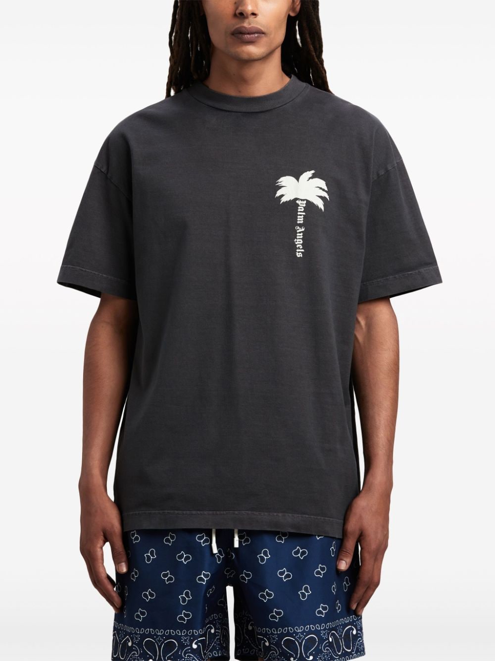 Gris foncé / casque cassé Coton Palm Print Crew Nou à manches courtes