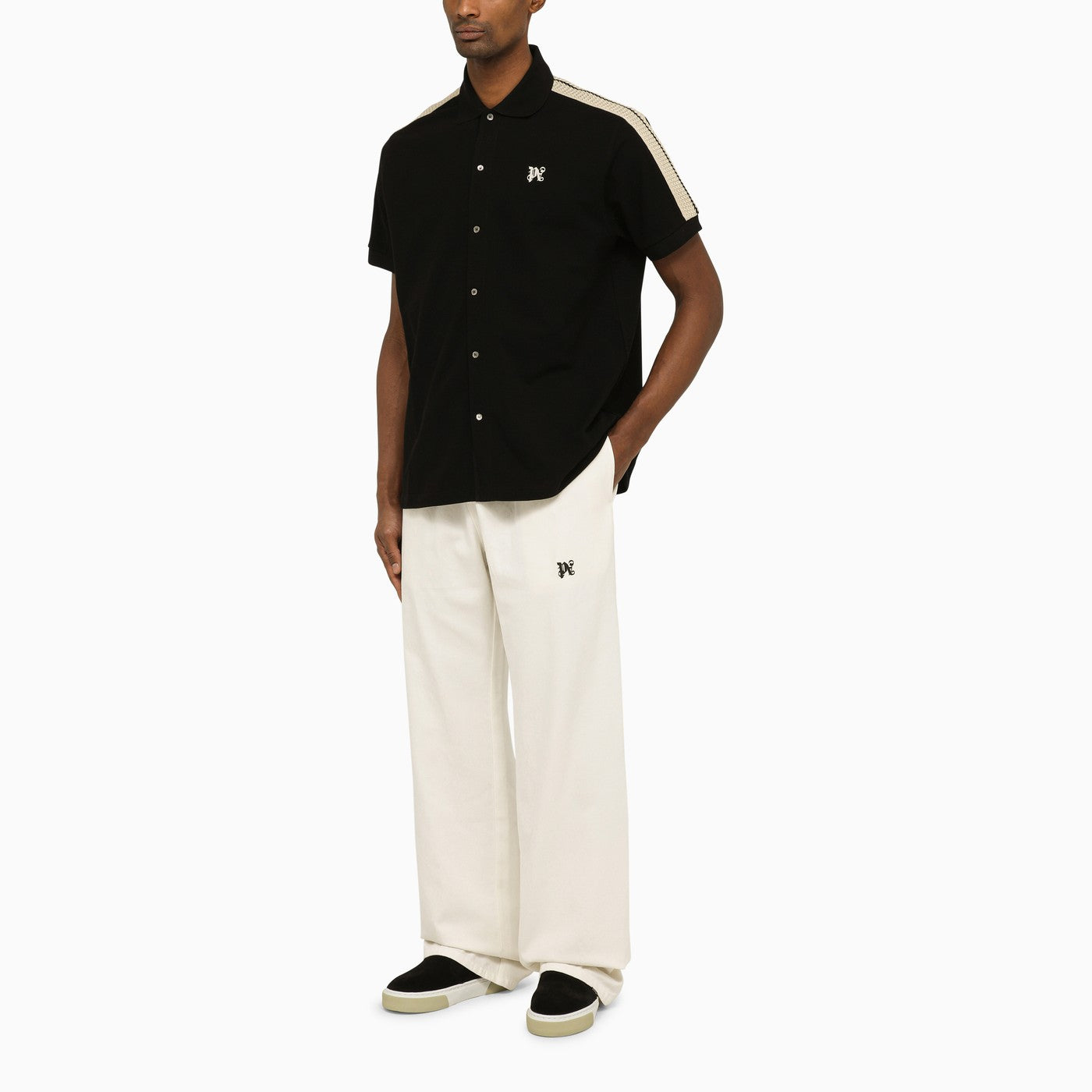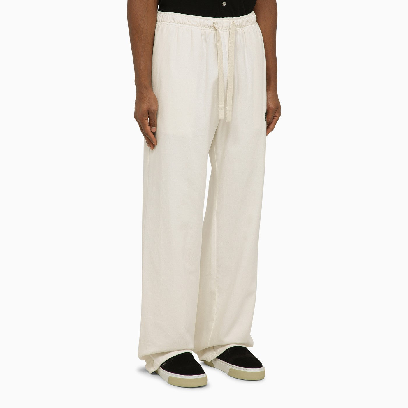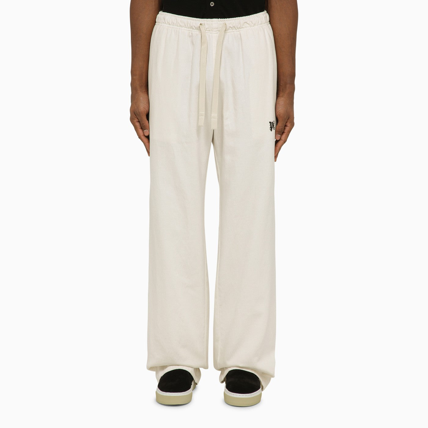 Pantalon de jogging par Palm Angels dans un mélange de coton en denim blanc cassé, avec une ceinture élastique avec cordon, des poches de welt latérales, des poches de dos de soudure boutonnées et un imprimé monogramme à l'avant.