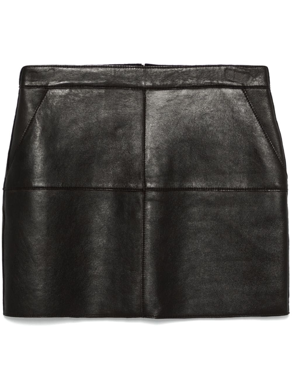 Conception de lambris de la peau d'agneau noir Crochet arrière dissimulé et fermeture de fermeture à glissière à deux poches de plérette latérale sans doublure ourlet
