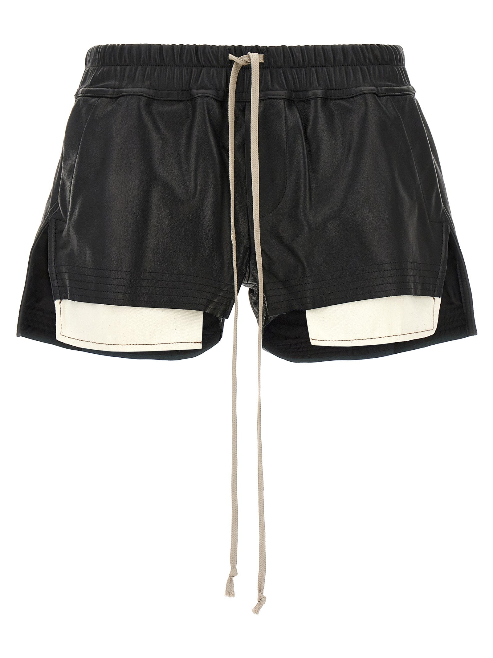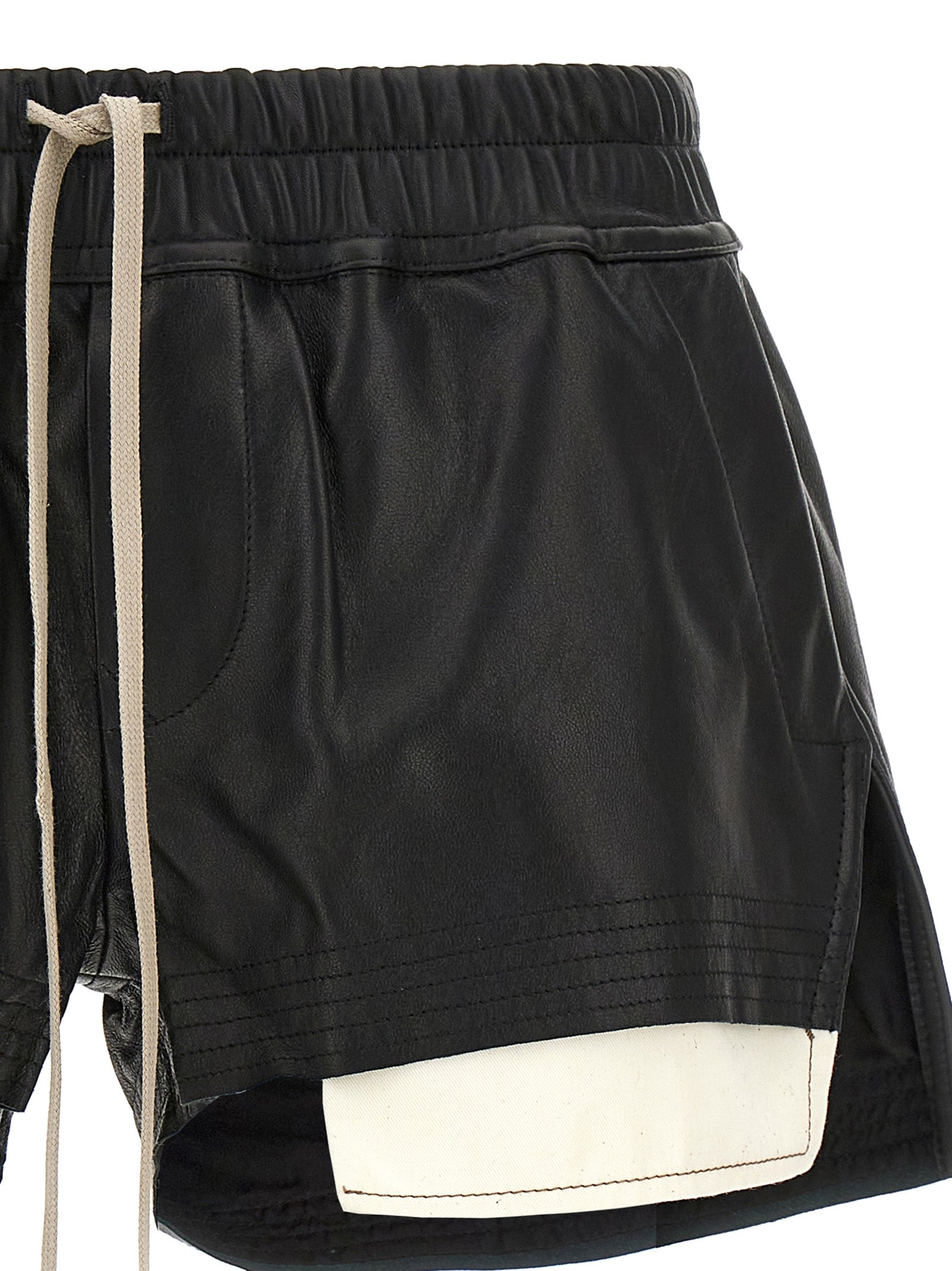 Short en cuir des boxeurs de brouillard, élastique et cordon à la taille, poches avec doublure visible.