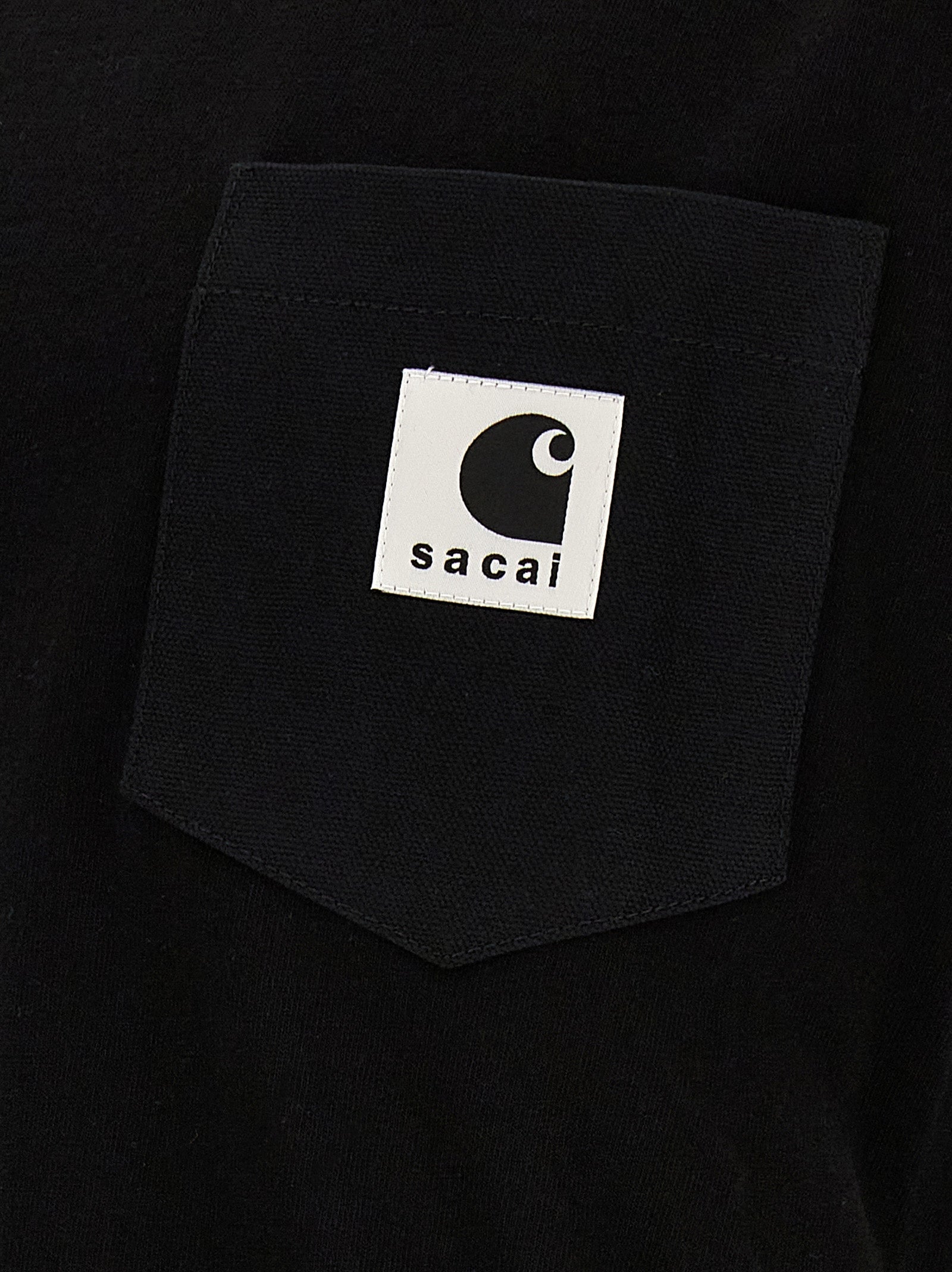 T-shirt en coton Sacai x Carhartt WIP avec détail zip sur les côtés, cou de l'équipage, manches courtes, poche de toile avec patch de logo avant.