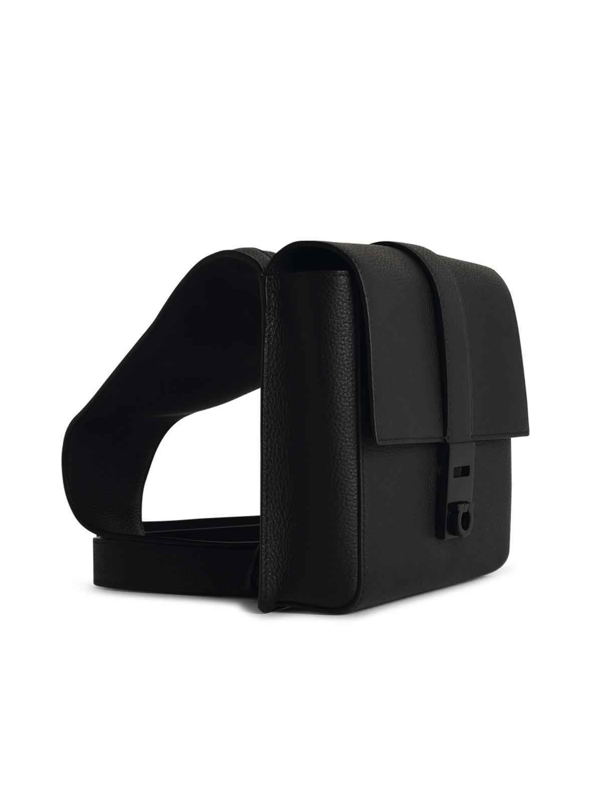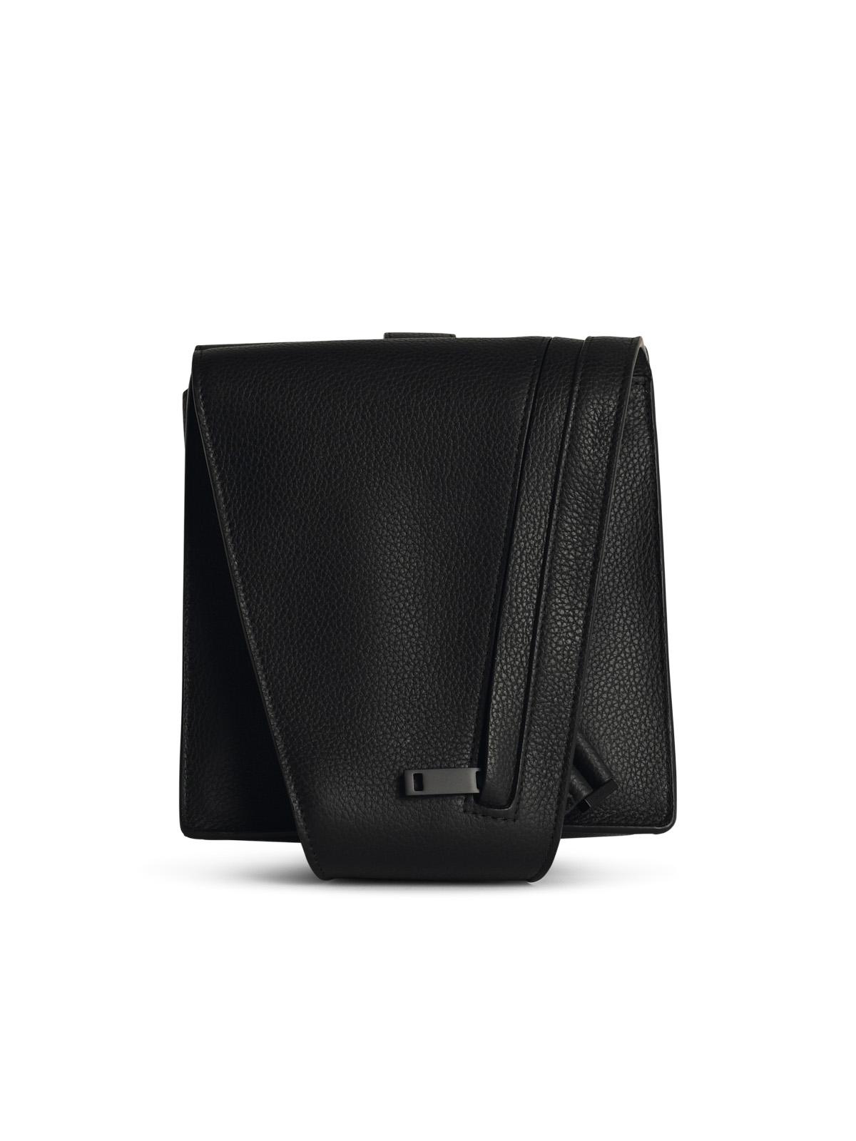 Fabriqué en cuir en relief Matt, fermeture de boucle centrale en ton sur ton, compartiment intérieur unique, poche fendue, bandoulière avec insert en cuir, poche zippée sur le bandoulière \ n21 x 17 x 5 cm