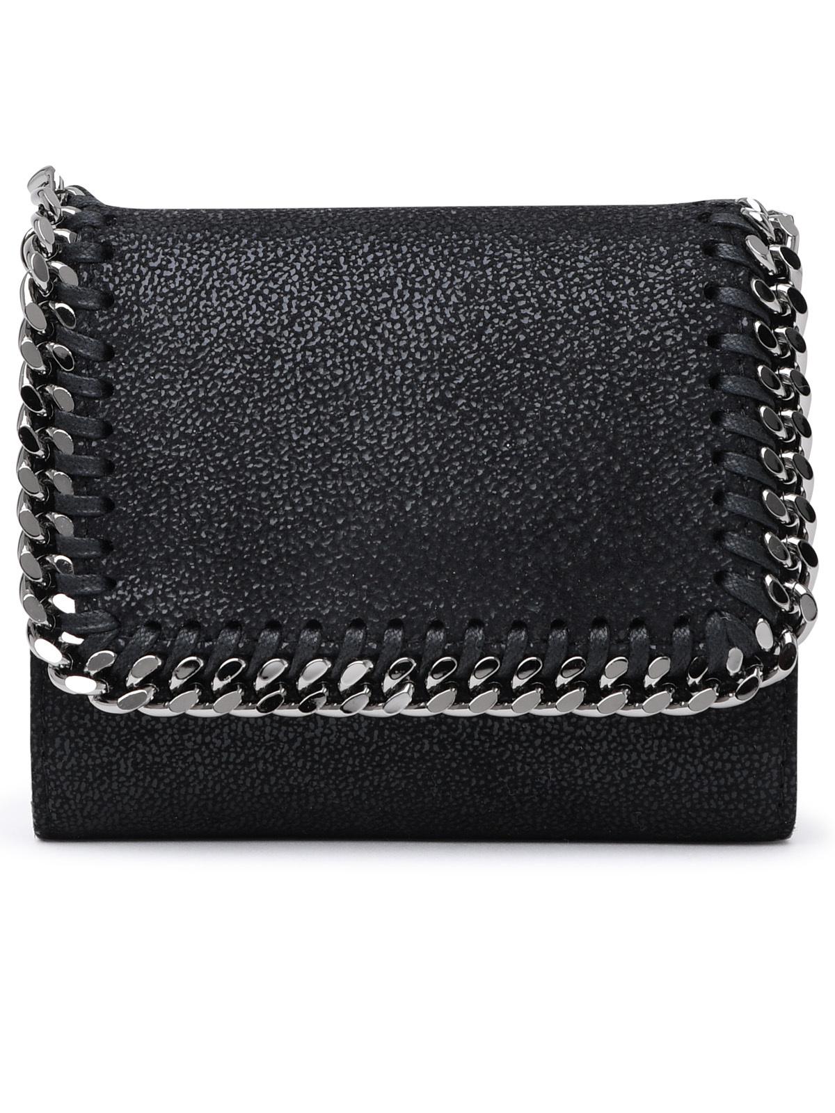 Chaîne argentée emblématique sur l'ourlet, volet avec fermeture à pression, un compartiment de billets, six emplacements de carte, un porte-monnaie à fermeture éclair 12 x 10 x 2,5 cm