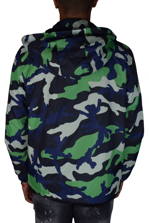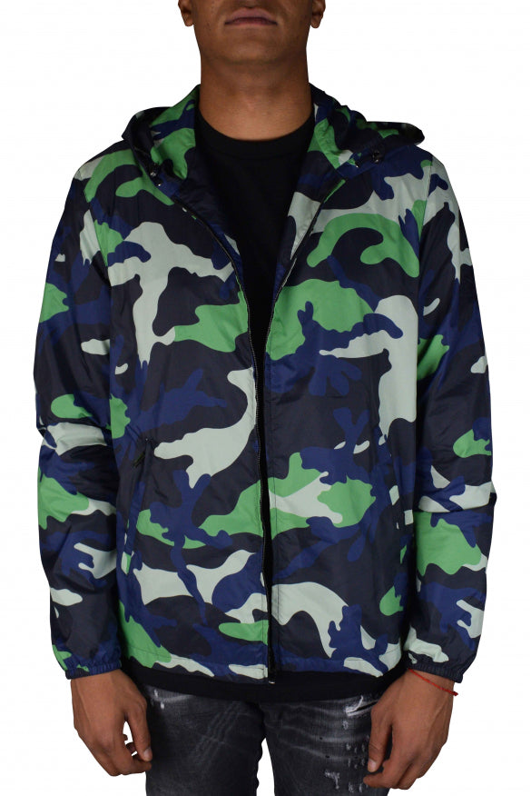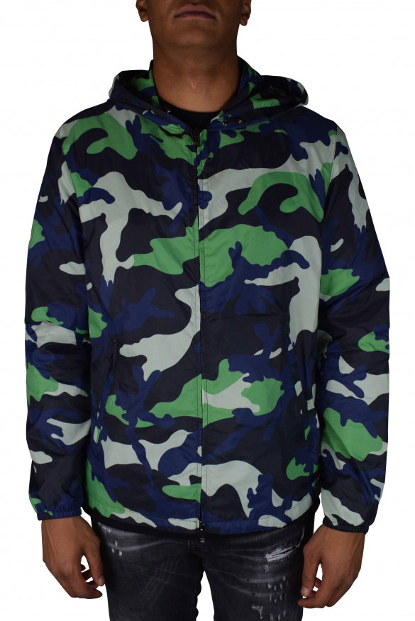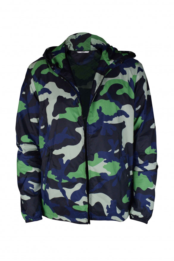 Veste imprimée de camouflage vert et bleu par Valentino.