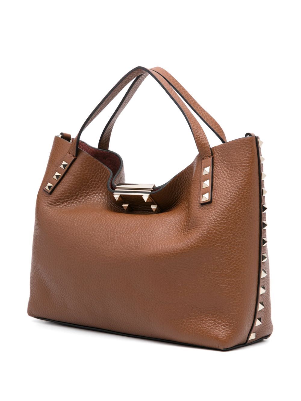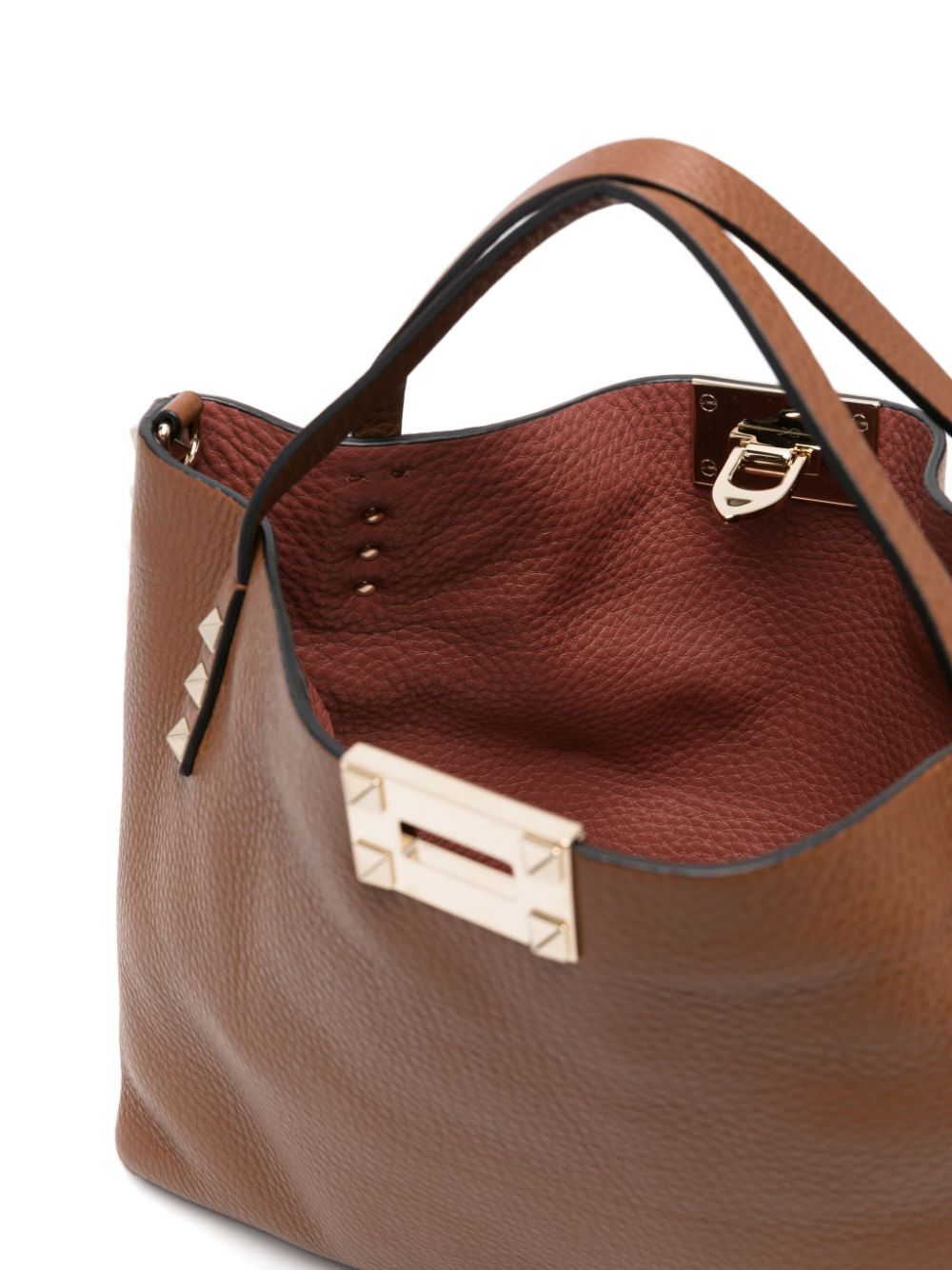Cognac Brown Leather Texture Signature Signature Rockstud Détails Flip-Lock Fixage Deux poignées supérieures