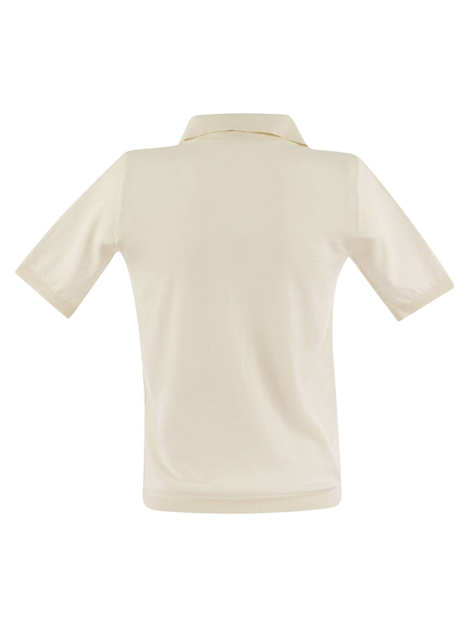 Jersey à manches courtes en soie et fil de coton fin, caractérisé par le volume, la longueur et l'ajustement régulier. Collier de polo à col en V à l'avant, poignets côtelés et ourlet. - Col à col - Manches courtes - ID de concepteur de col polo: 2425366091600 001