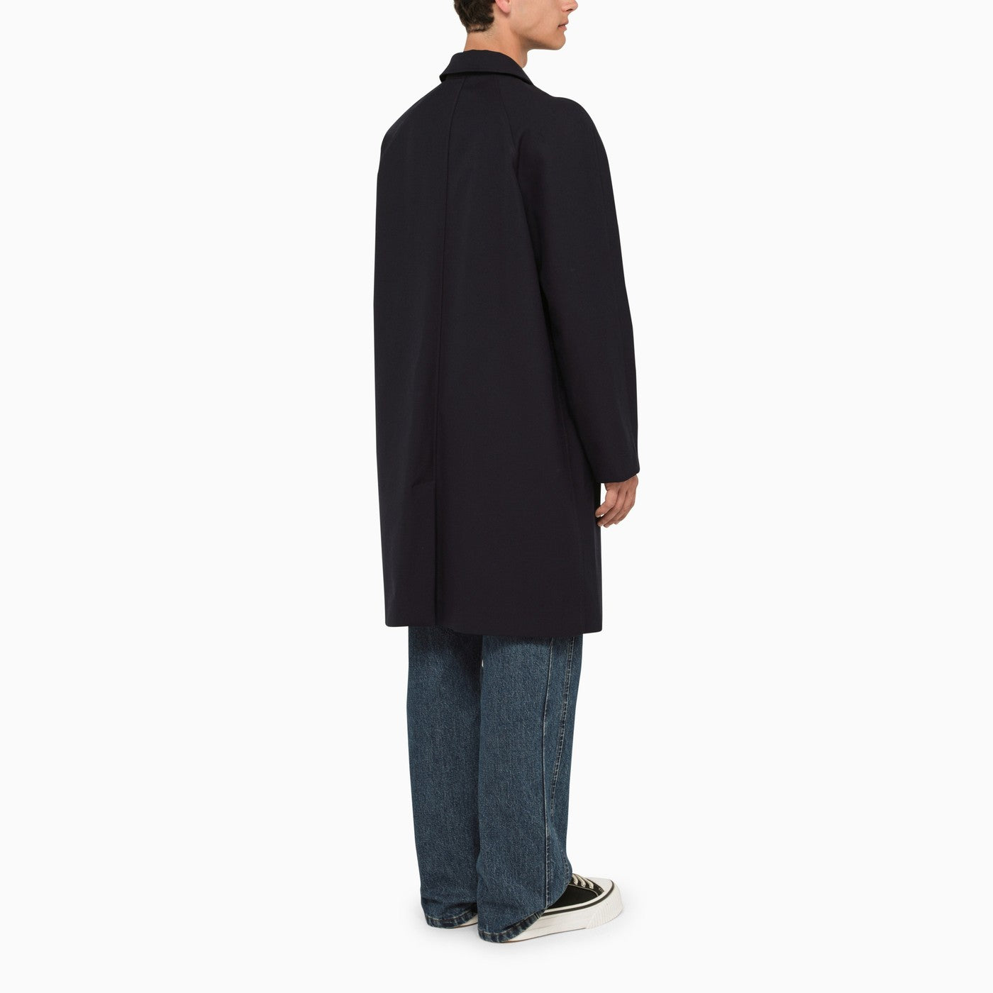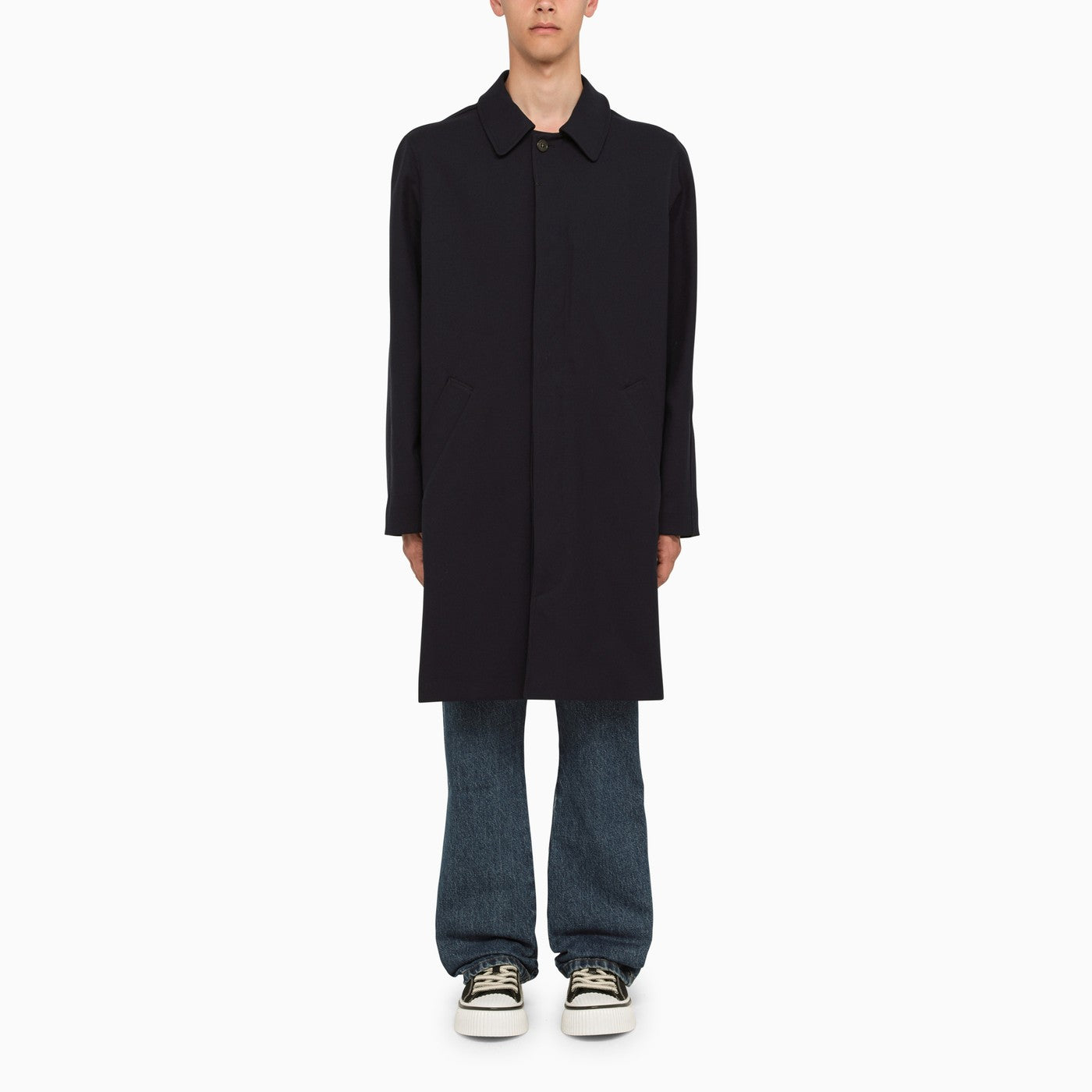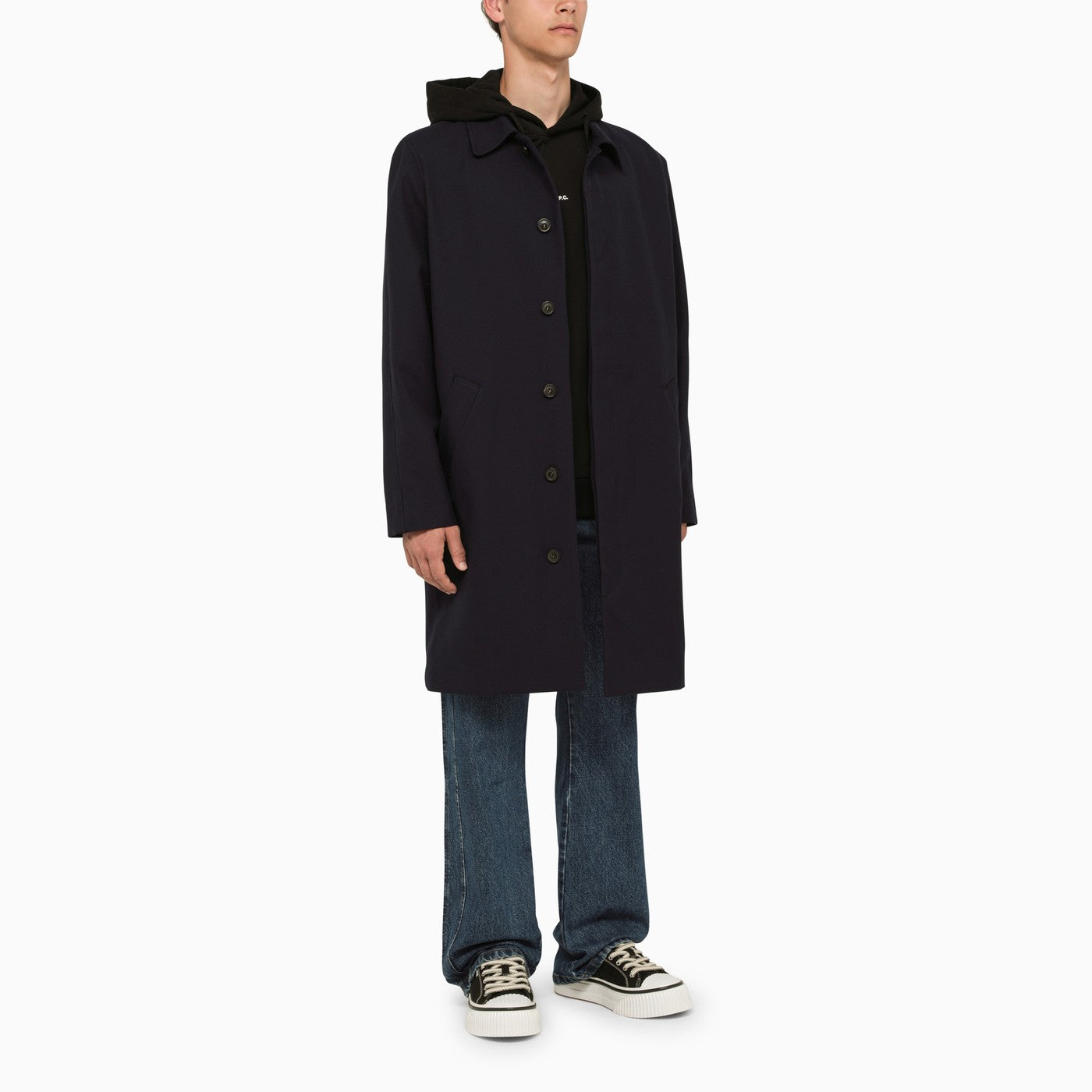 Coat di A.P.C. In tela blu impermeabile, con una placca a bottone anteriore, maniche lunghe e due tasche anteriori.
