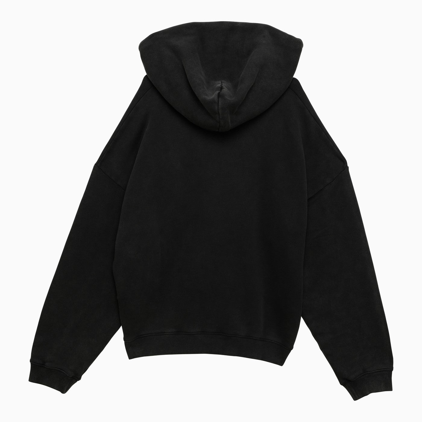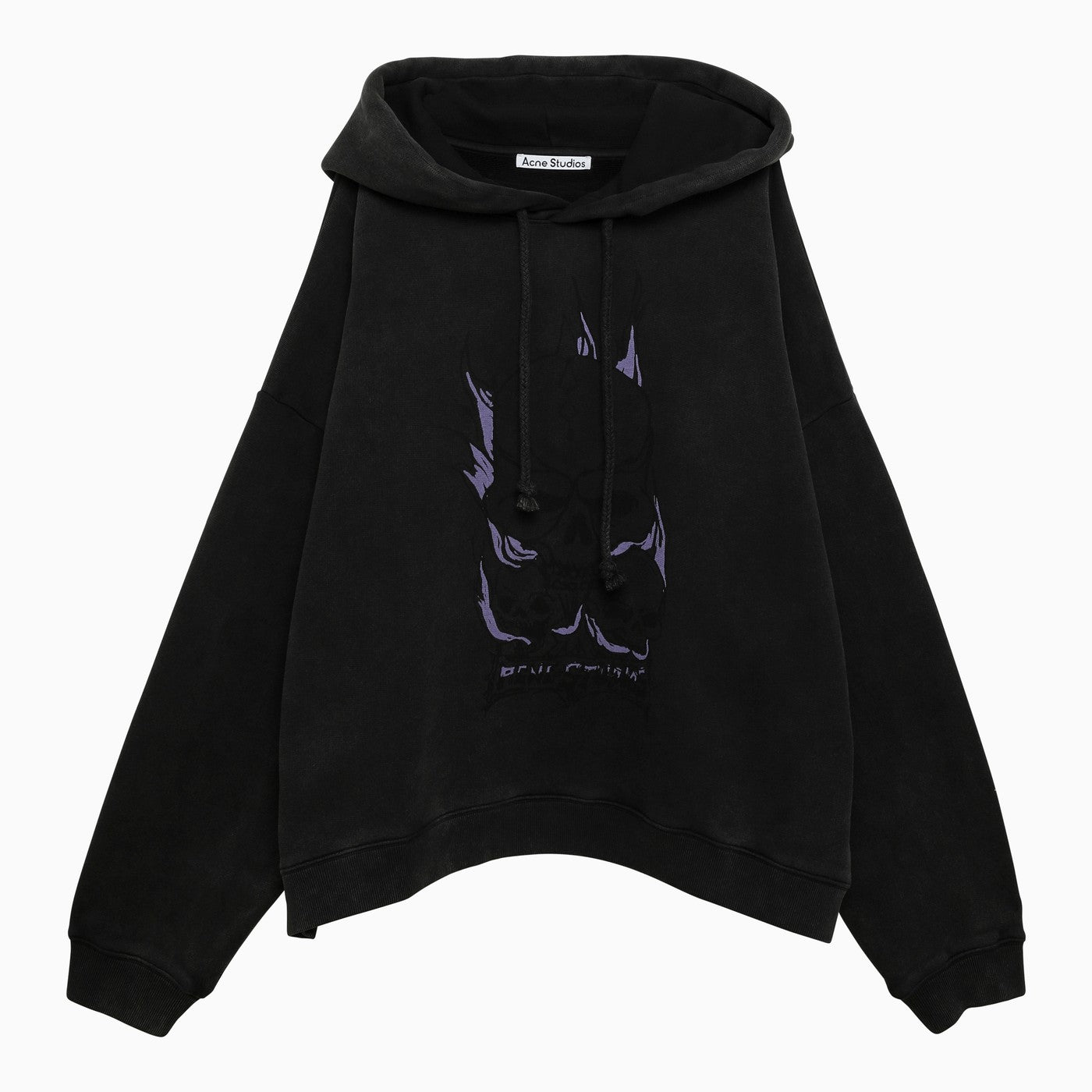 Felpa di cotone nera di Acne Studios con cappuccio, stampa anteriore, maniche lunghe e polsini e orlo.