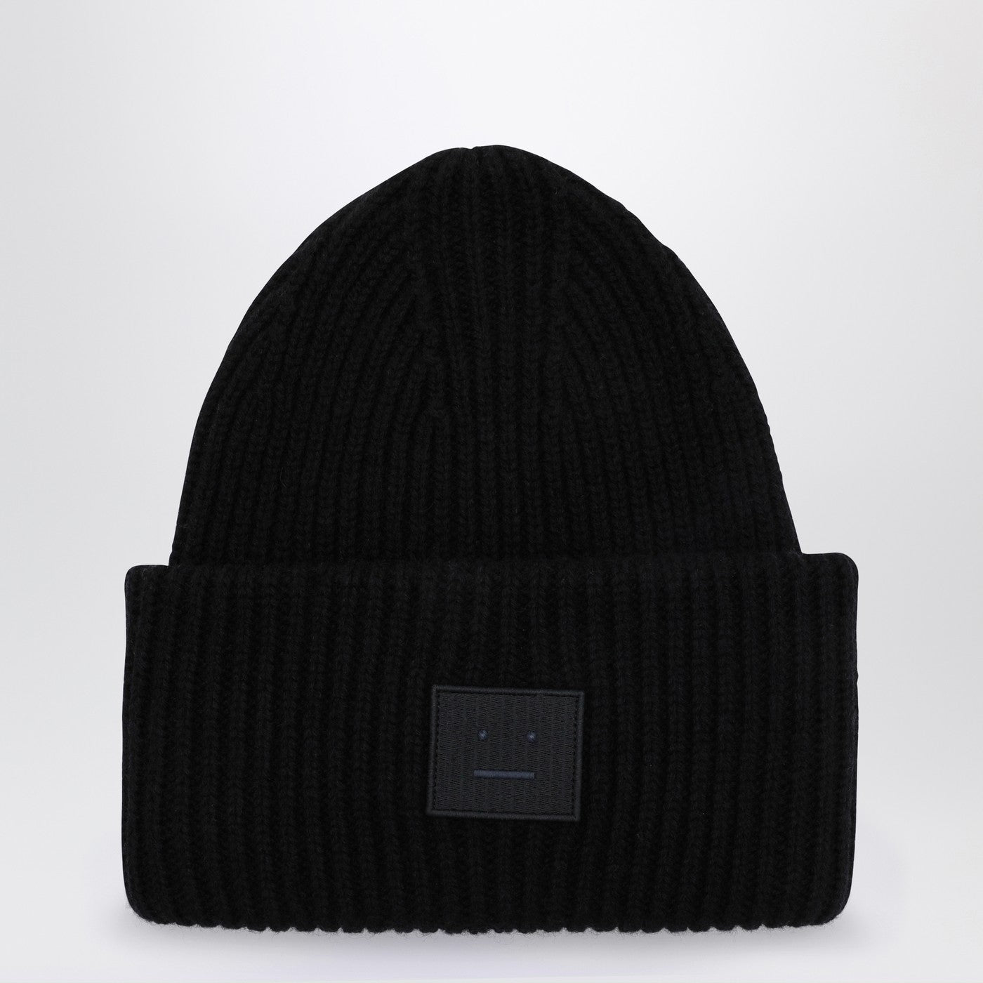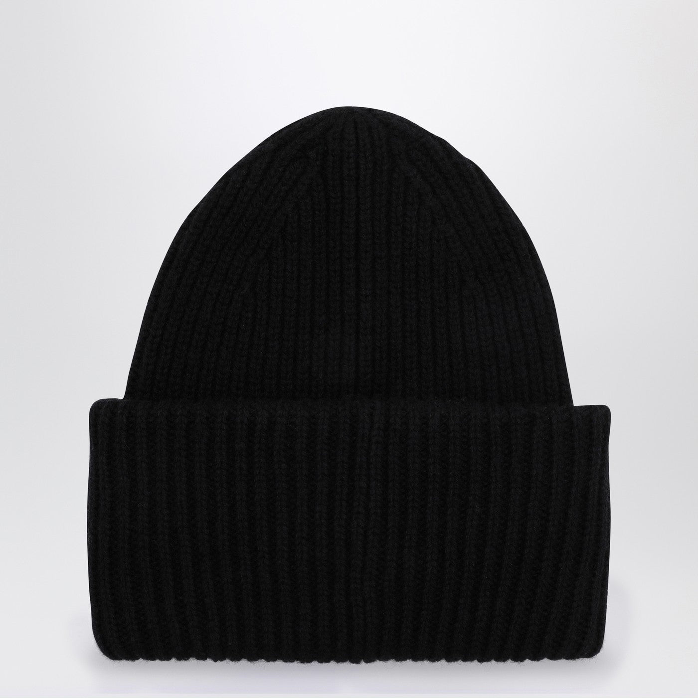 Capo di lana nera di Acne Studios, con un motivo a coste, orlo di svolta e patch di logo frontale.