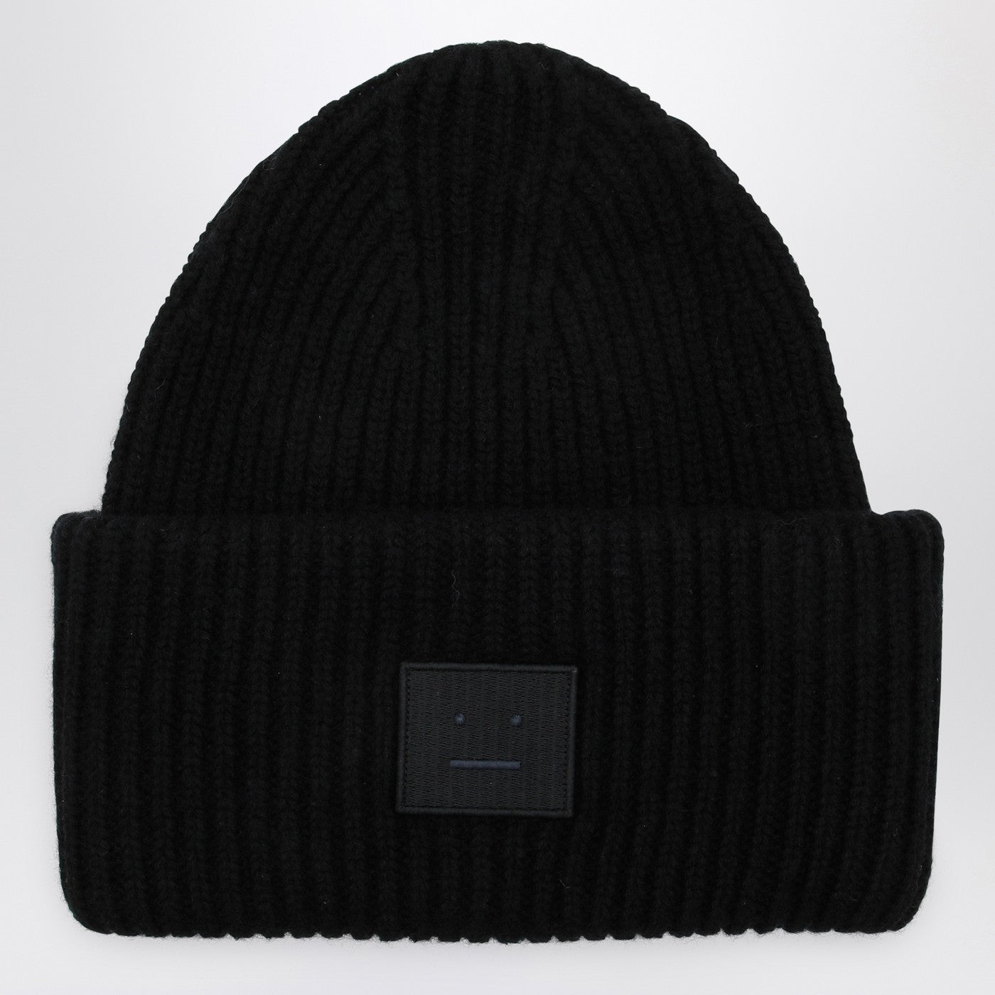 Capo di lana nera di Acne Studios, con un motivo a coste, orlo di svolta e patch di logo frontale.