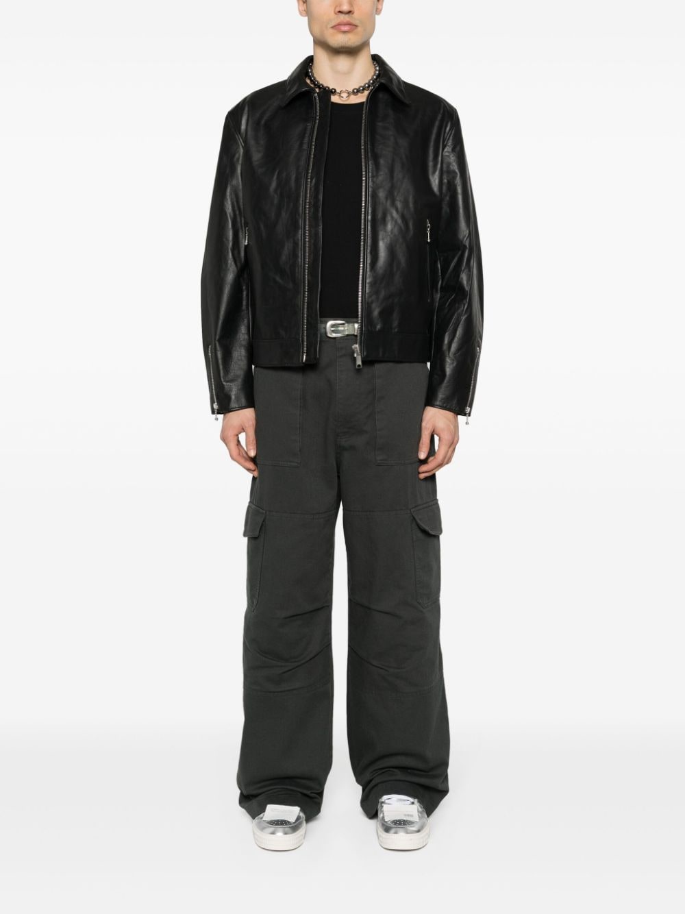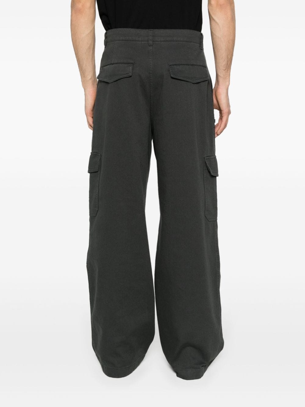 Fuggi di cinghia della gamba larga in cotone grigio scuro due tasche diagonali ai lati a due tasche da carico late