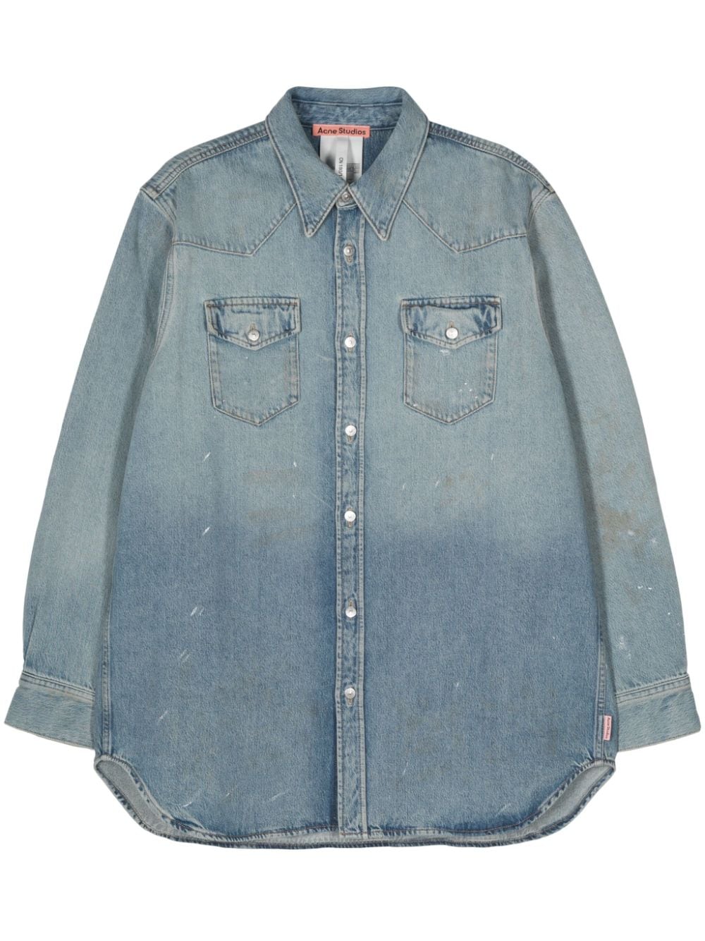 Miscela di rivestimento in denim in denim in denim in denim lavata in cotone azzurro azzurro Doppi di tasca a lempe a tappe per le alette lunghe a maniche lunghe.s dimensionamento.