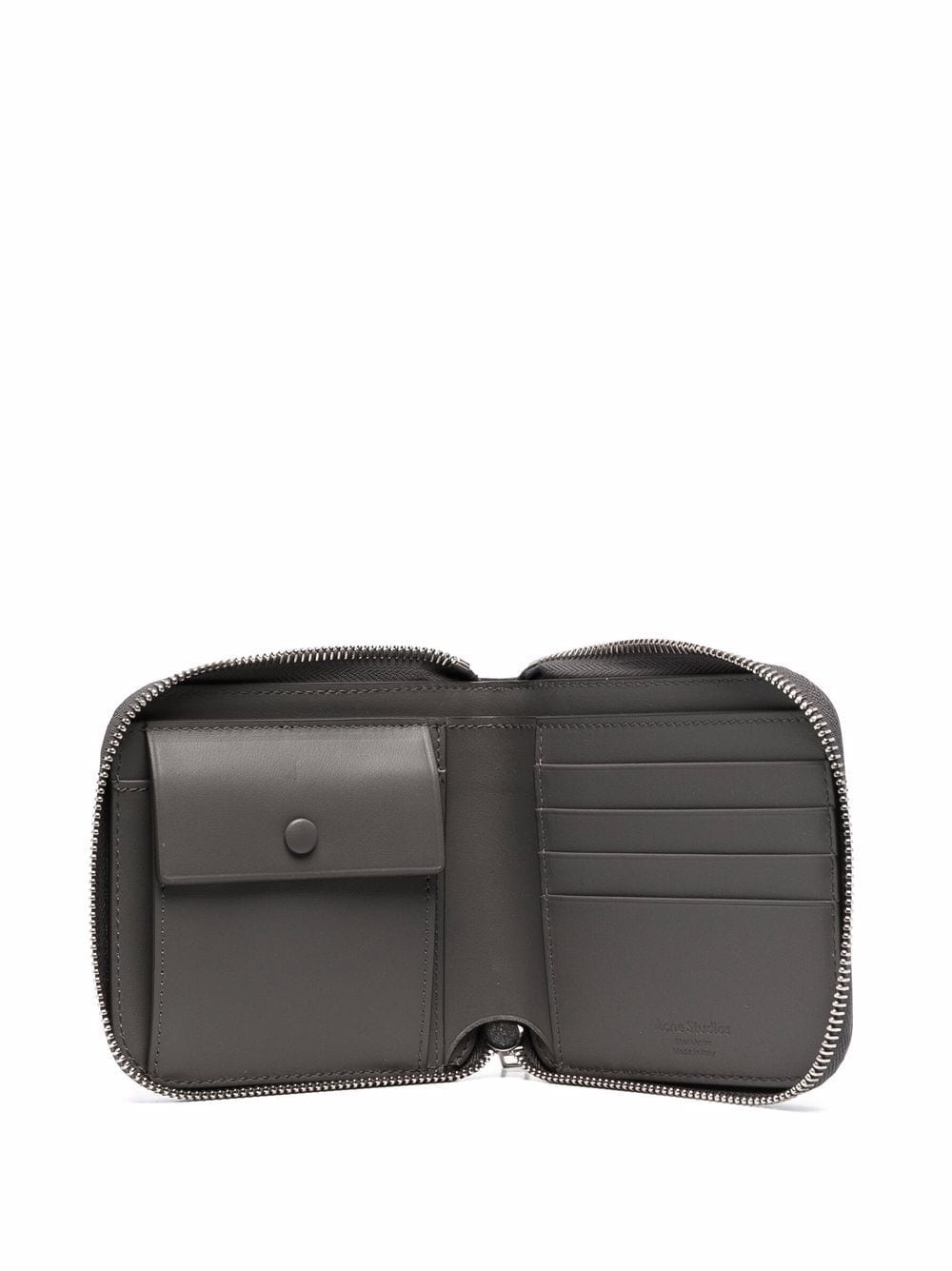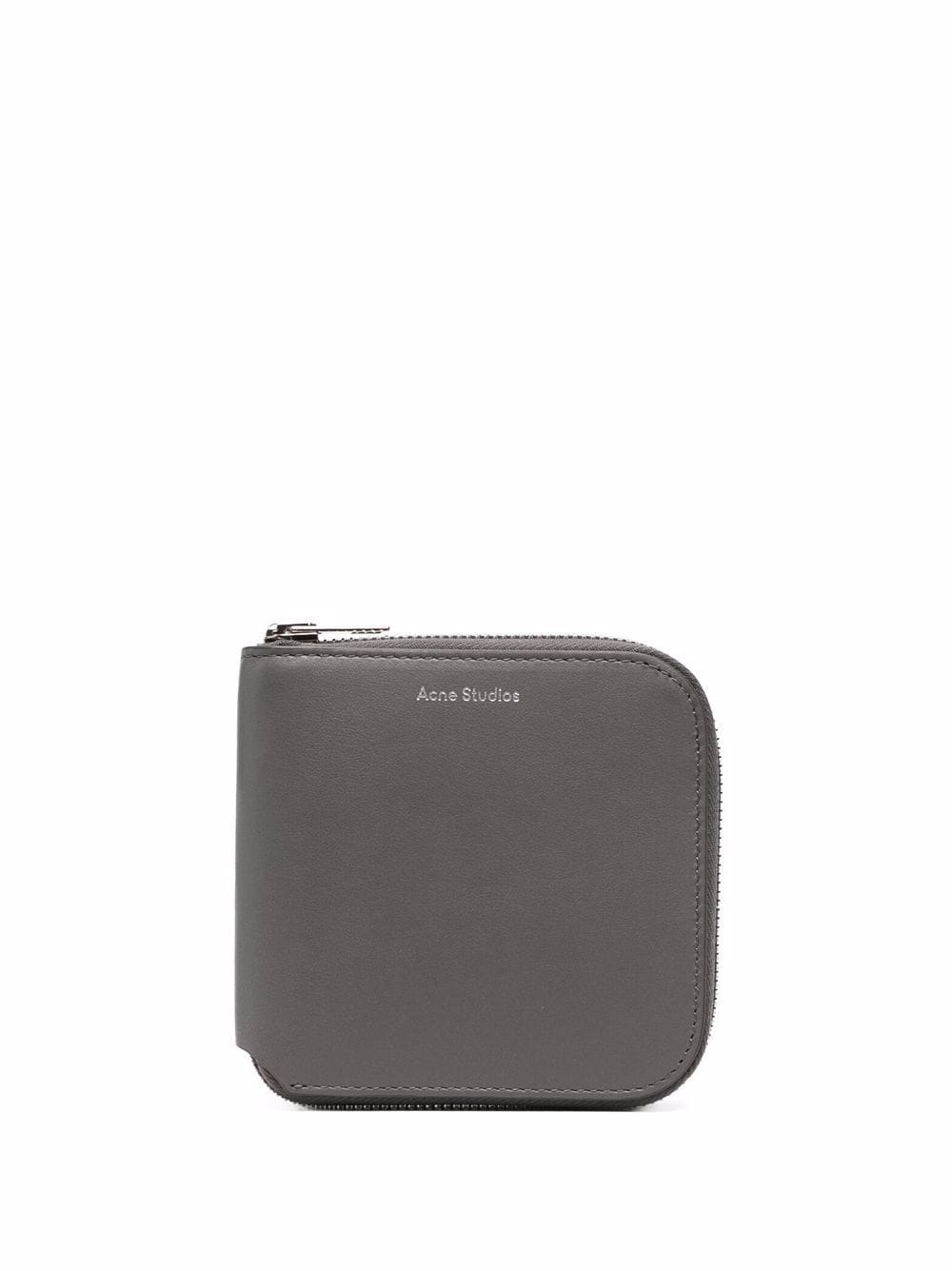 Portafoglio bi-folt con zippato medio a vite grigio scuro di Acne Studios con logo debossato, fissaggio a una cerniera a tutto tondo, slot per carte interne, tasca della moneta e compartimento Note.