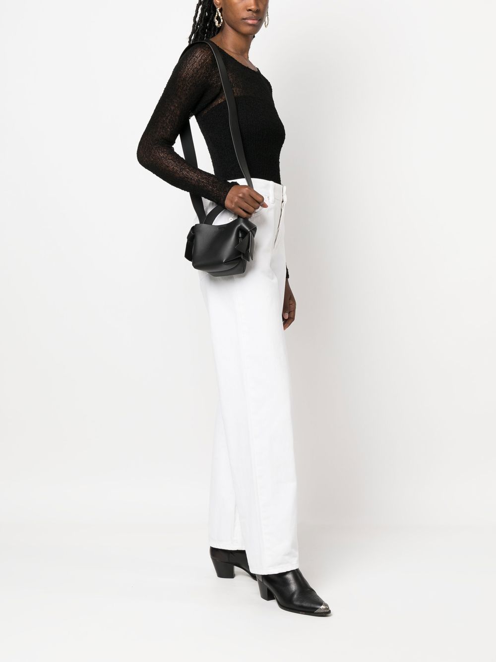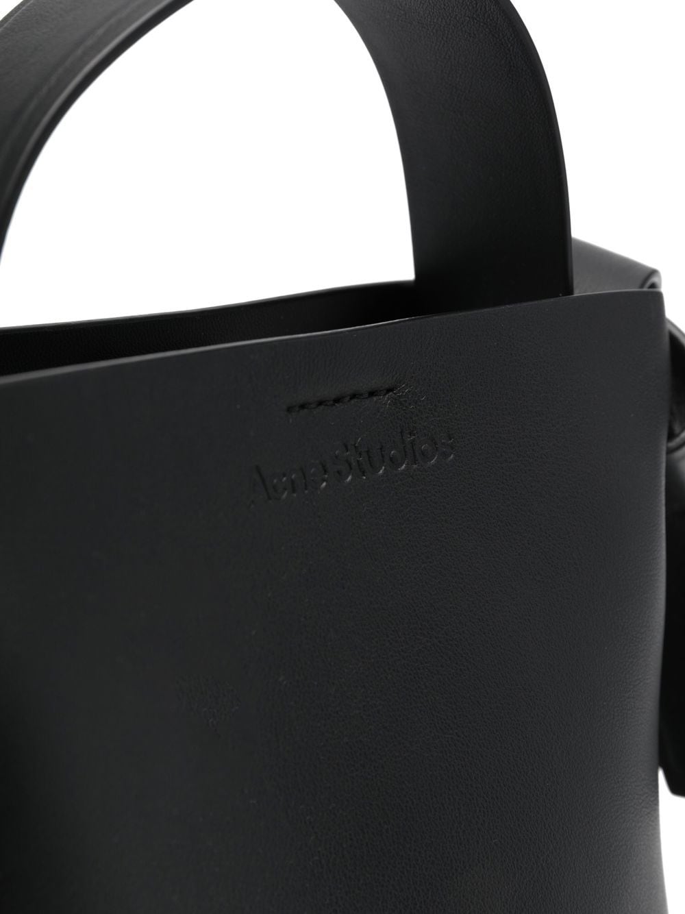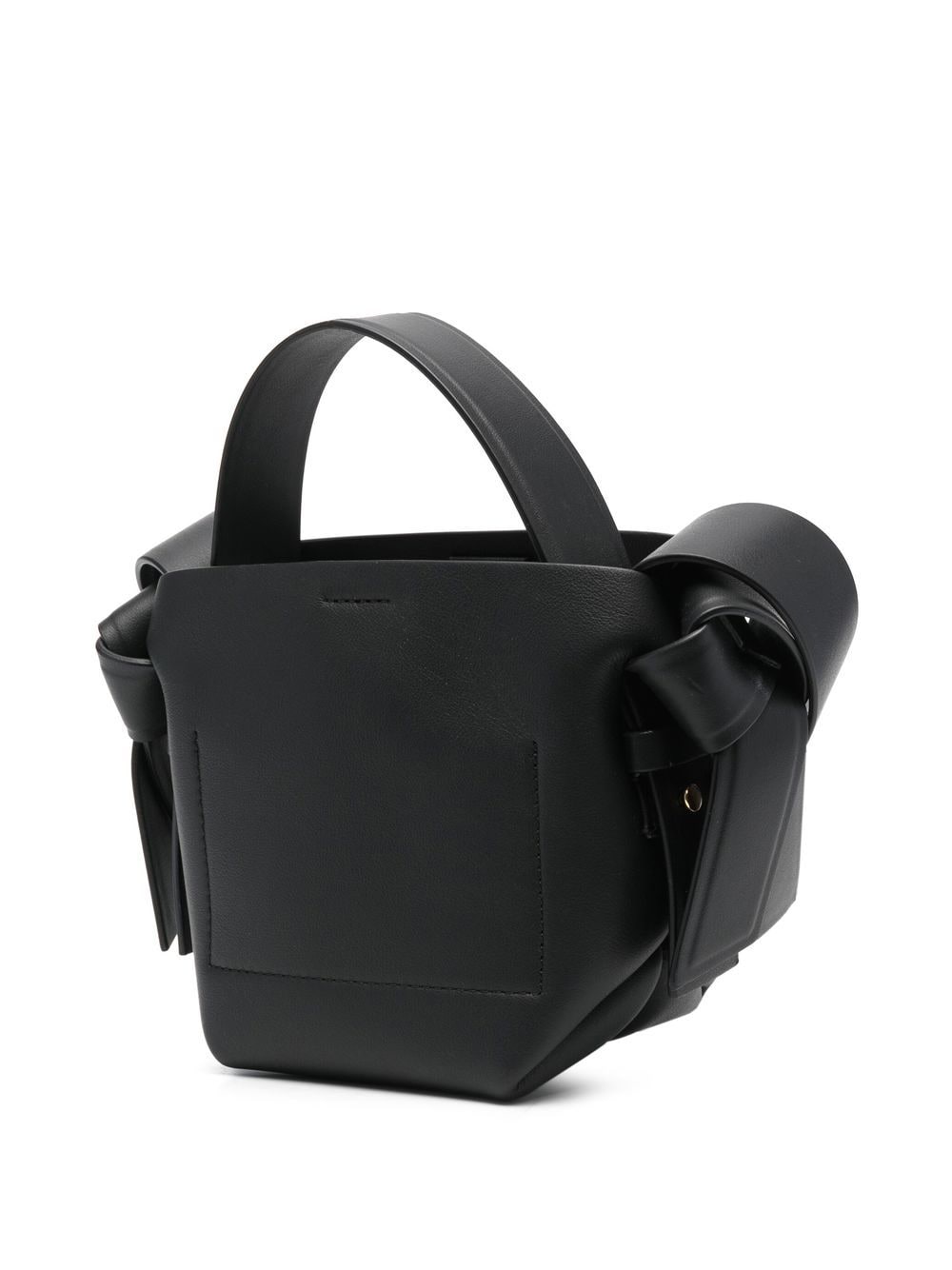 Borsa Micro Musubi in pelle nera di Acne Studios con dettagli nodo, logo debossato, maniglia singola e spalla singola.