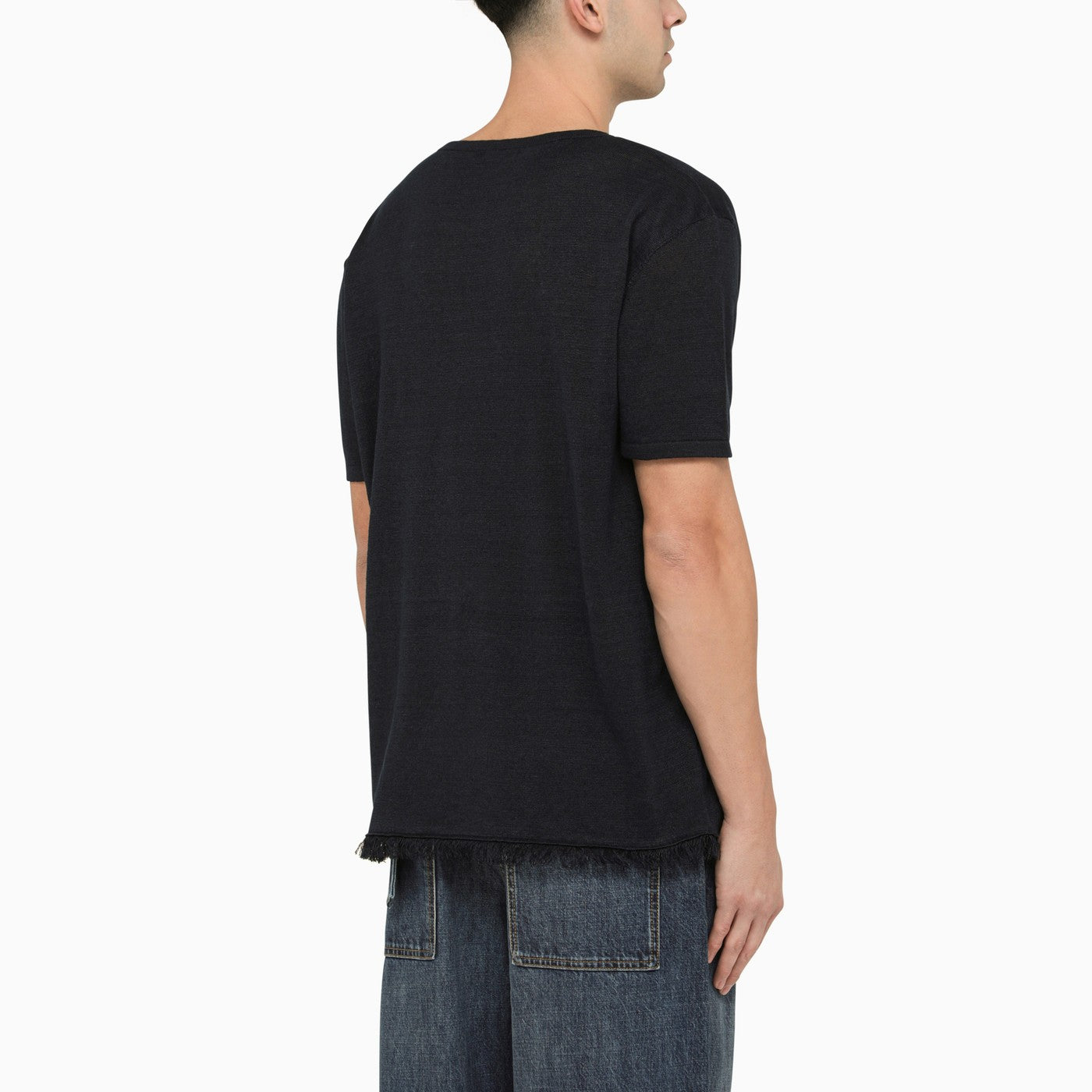 Maglietta con il collo dell'equipaggio di lino blu scuro di Alanui con dettagli