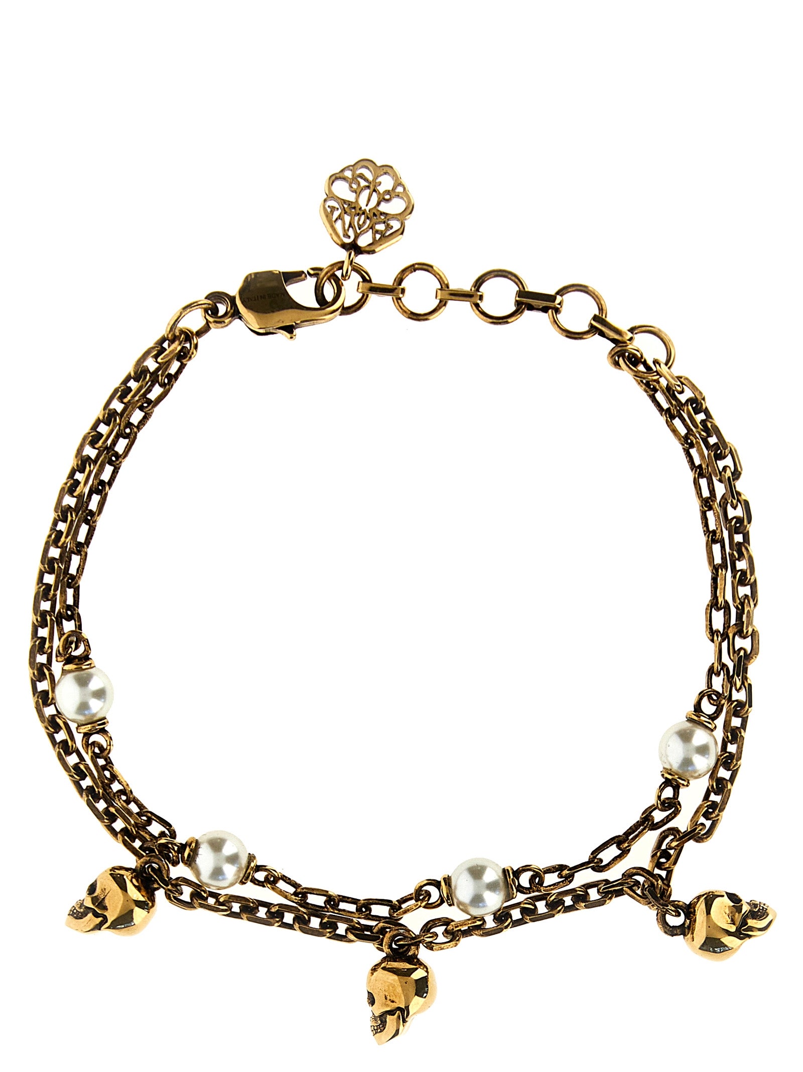 Bracciale in metallo oro "Skull Pearl" con ciondoli iconici.
