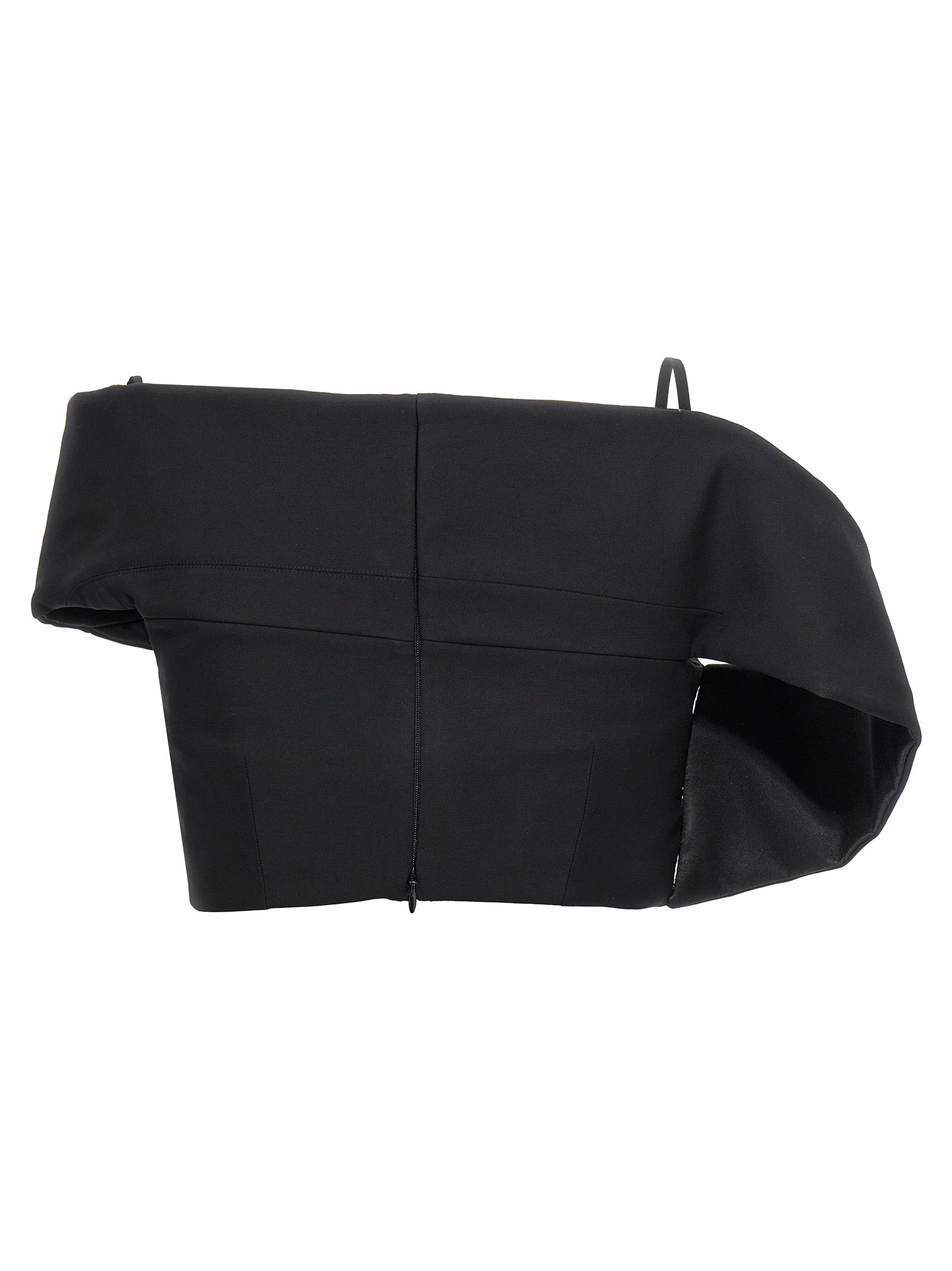 Top ritagliato in lana "Corsetto per lana" con chiusura a zip posteriore.