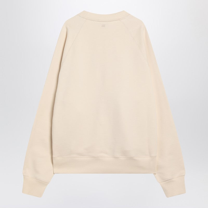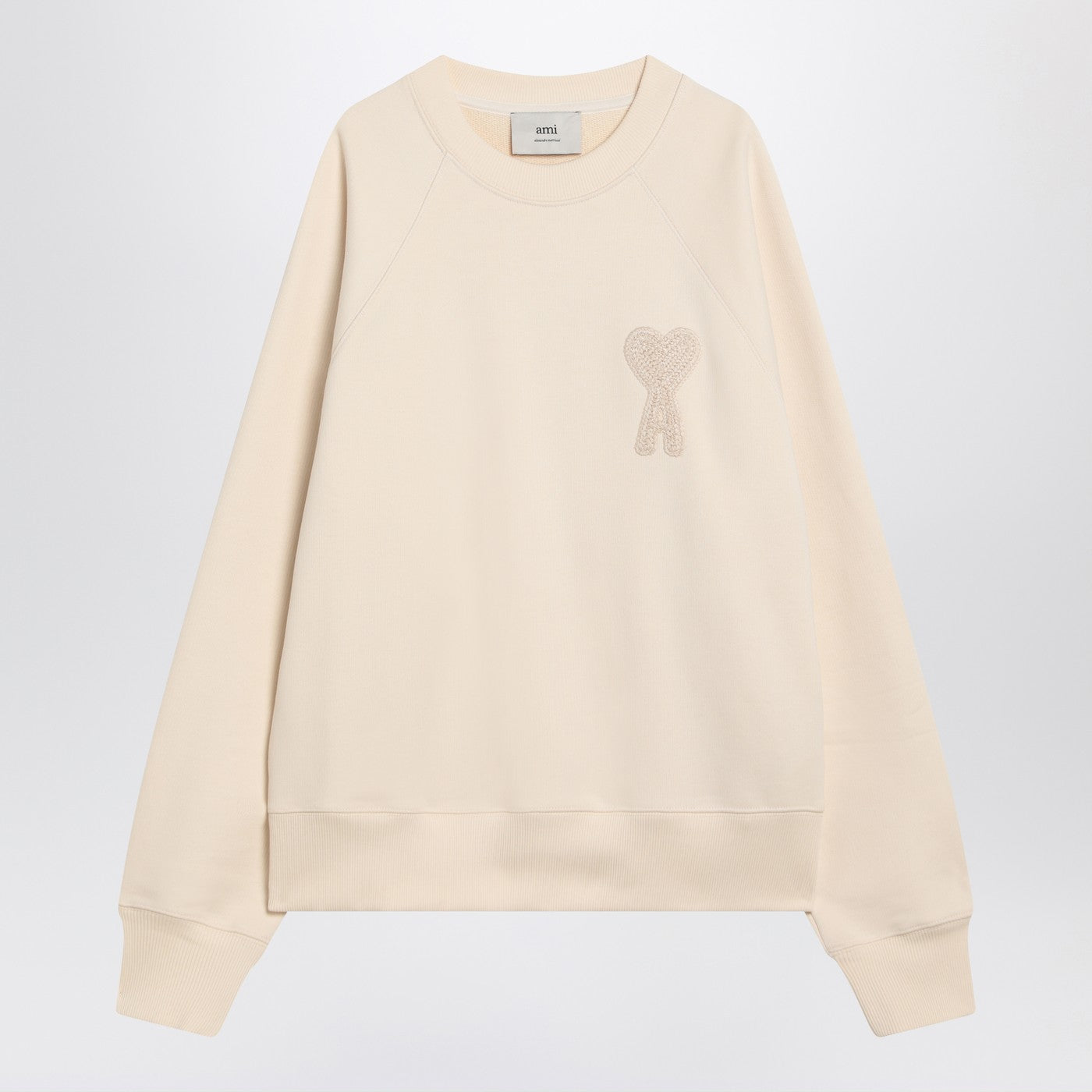 Spaccata in cotone biologico bianco crema di crema di Ami Paris, con ricami Ami de Coeur sul tono del torace su tono, maniche lunghe ed orli a coste.