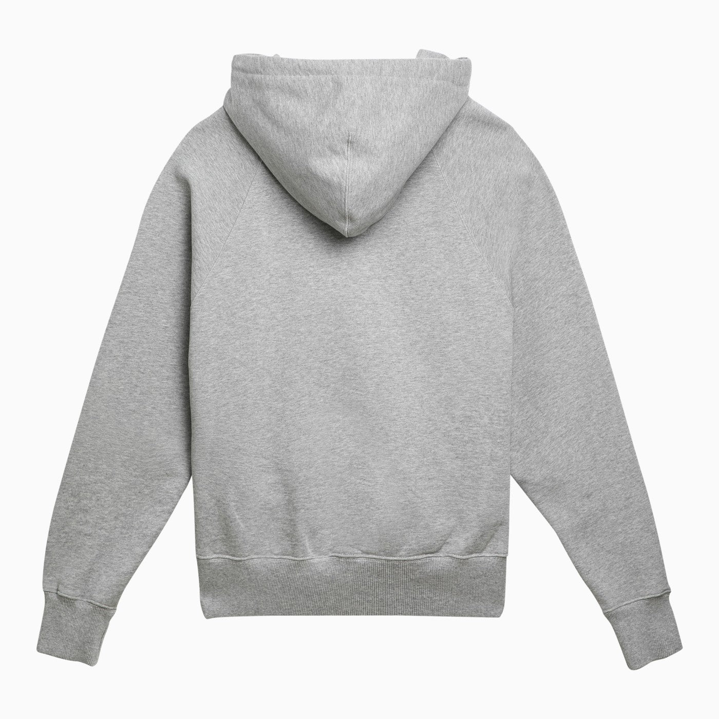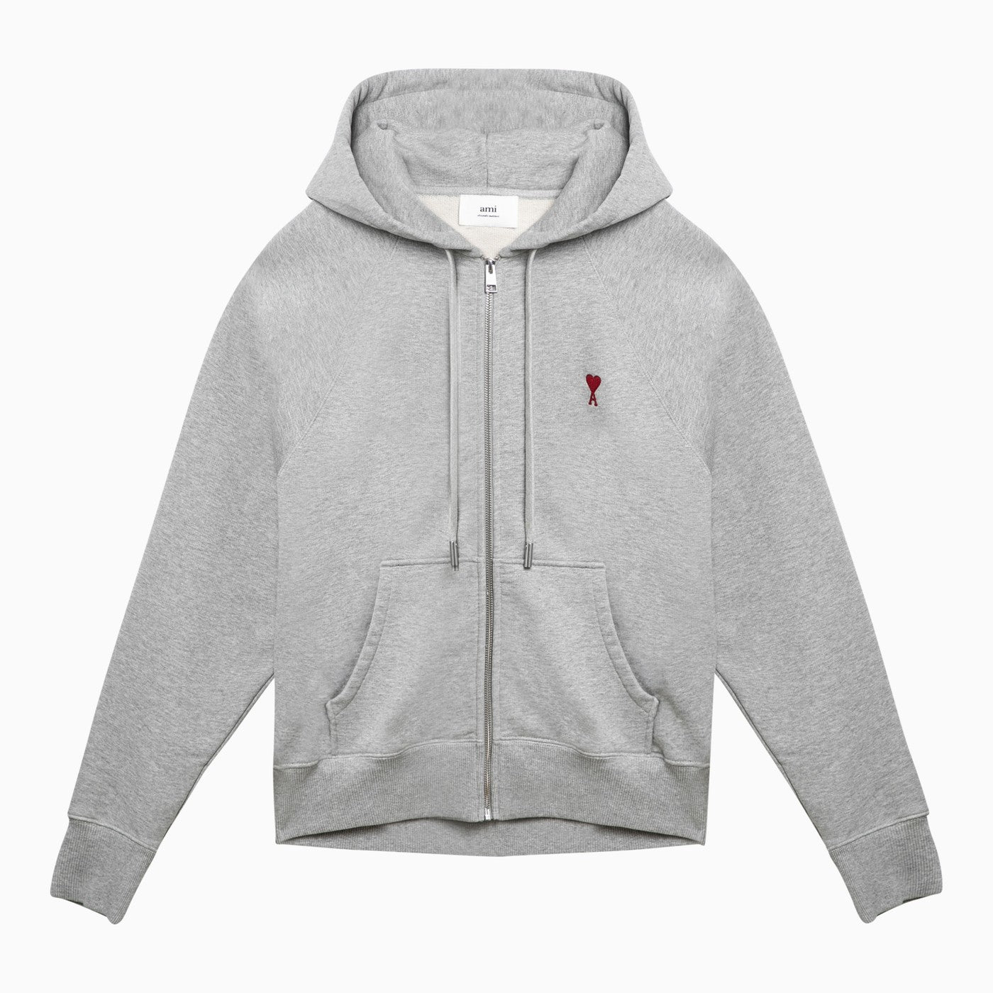 Felpa di cotone grigio chiaro di Ami Paris con ricamo Ami de Coeur contrastante sul petto, cofano regolabile, maniche lunghe raglan, tasca di canguro sulla parte anteriore e fissaggio con zip.