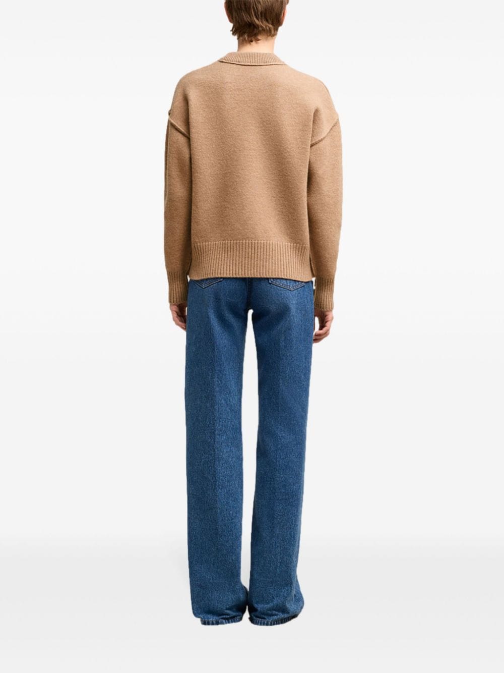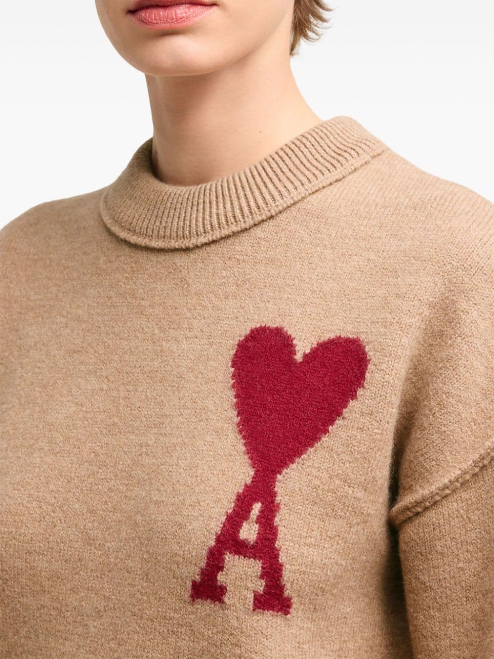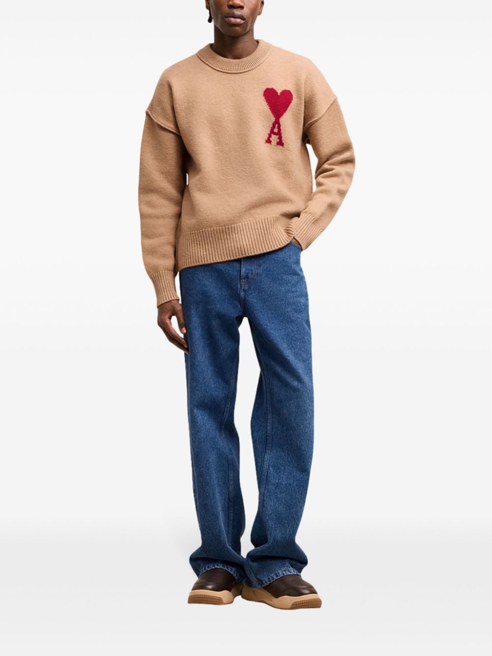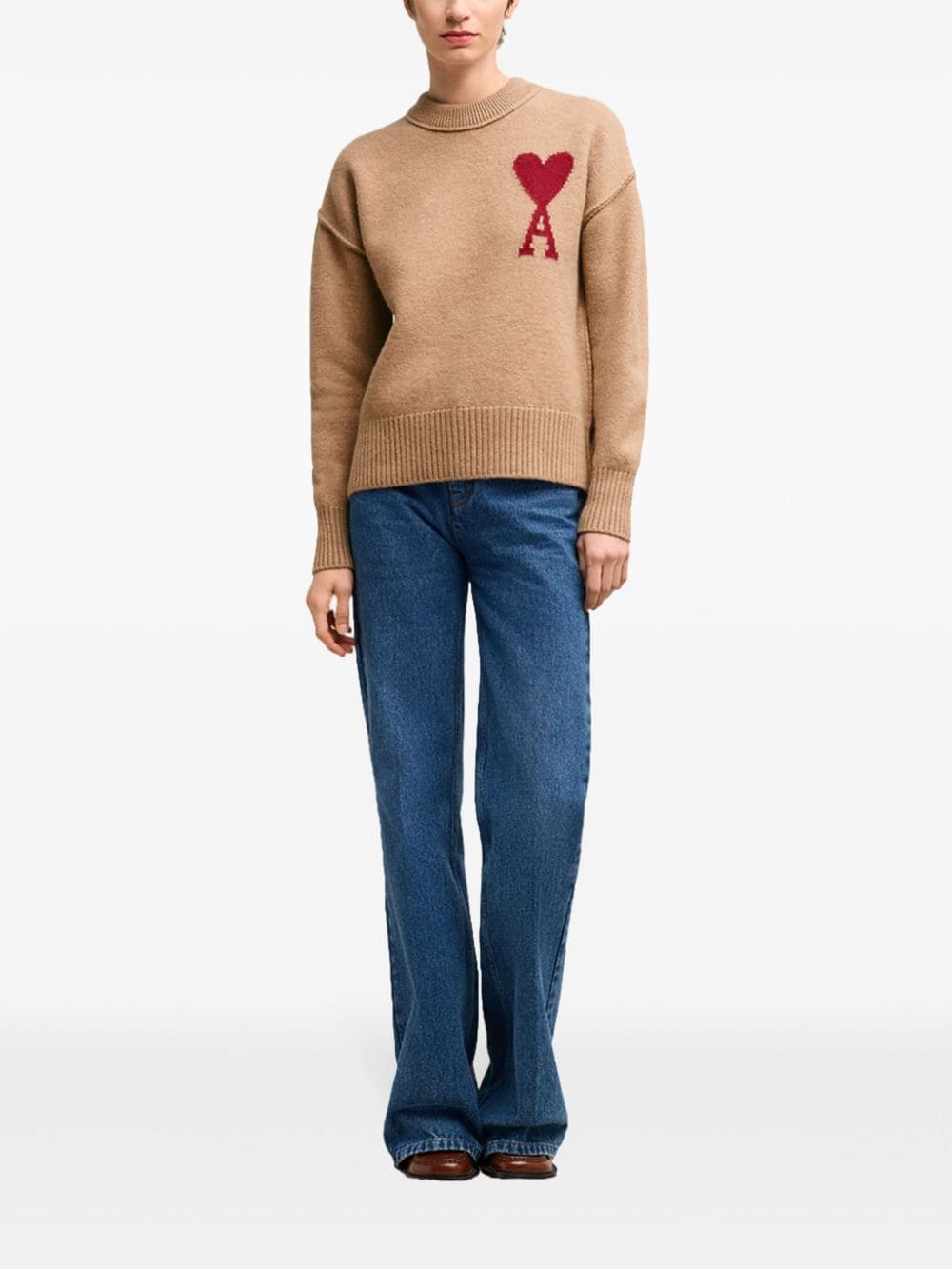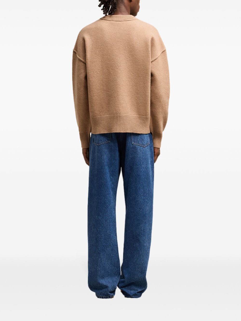 camel brown wool signature Ami de Coeur monogram motif ribbed cuffs and hem drop shoulder crew neck When buying this unisex item, keep in mind that it is graded in standard men's dimensionamento.