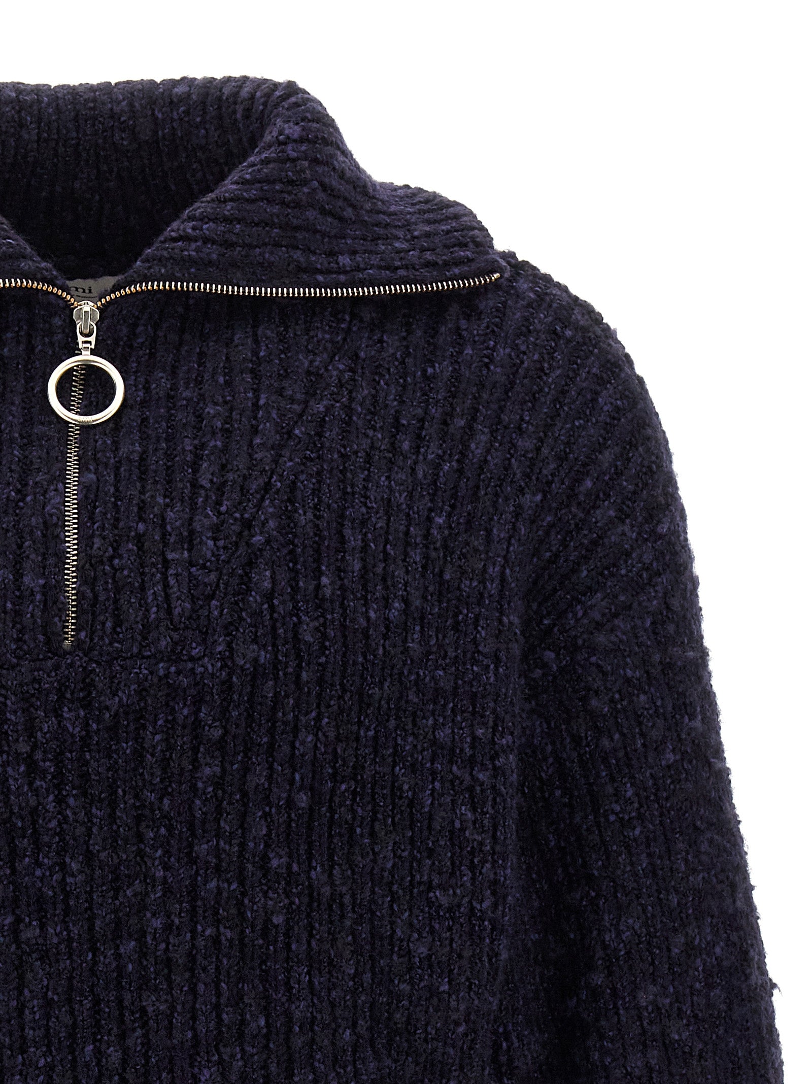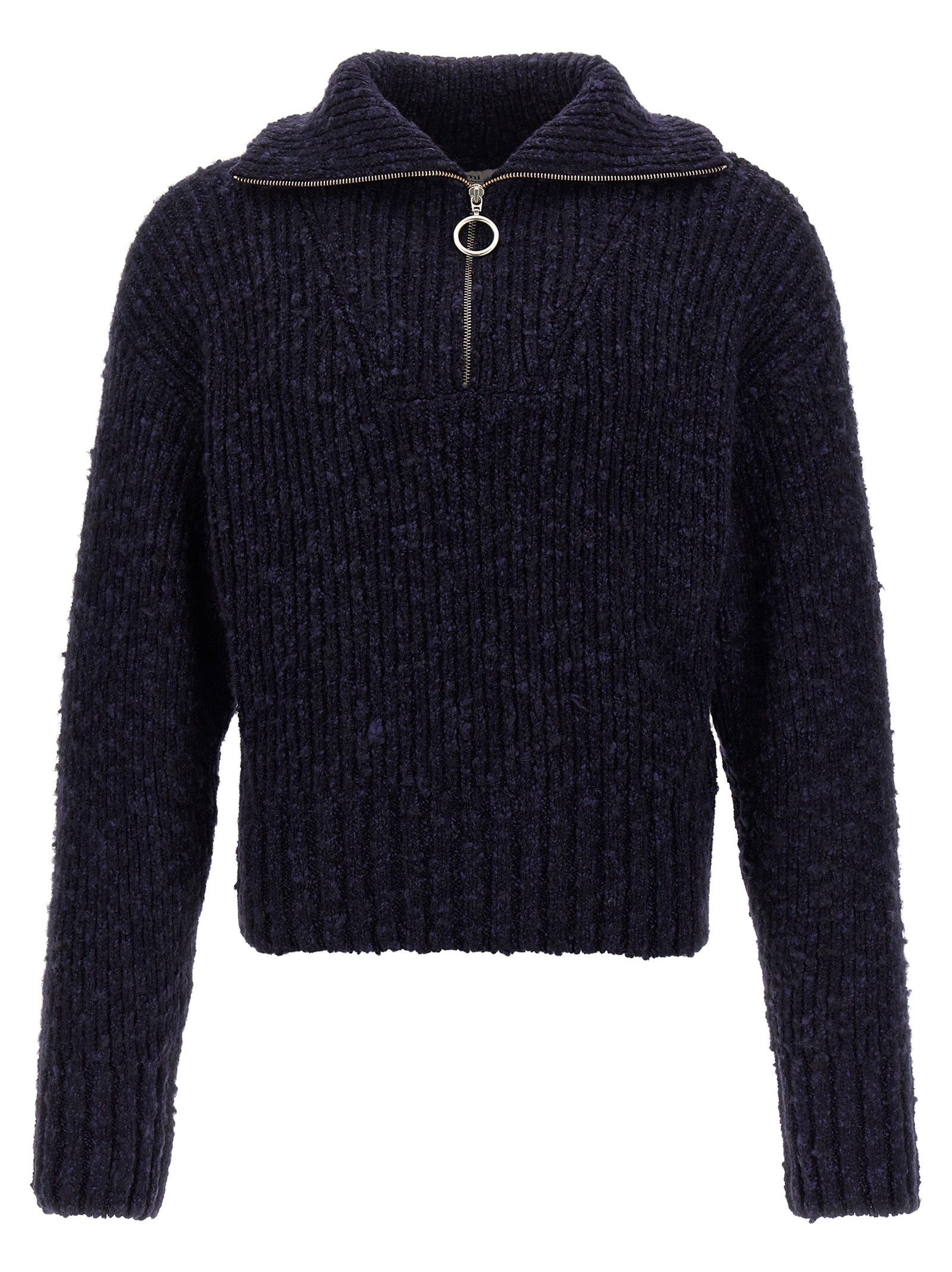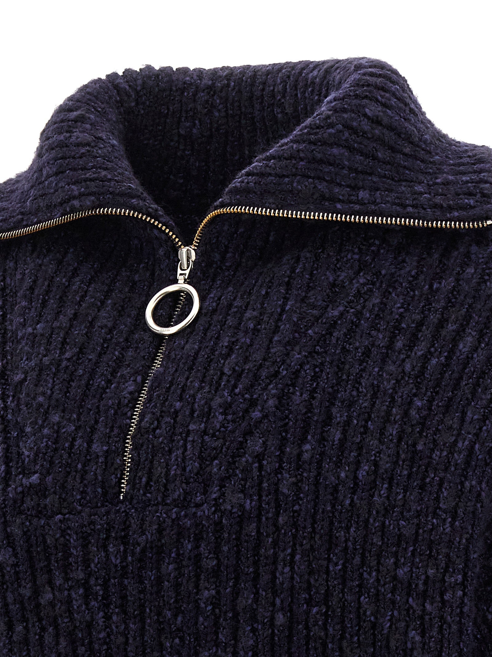 Maglione di lana con collare a mezza zip, maniche lunghe.