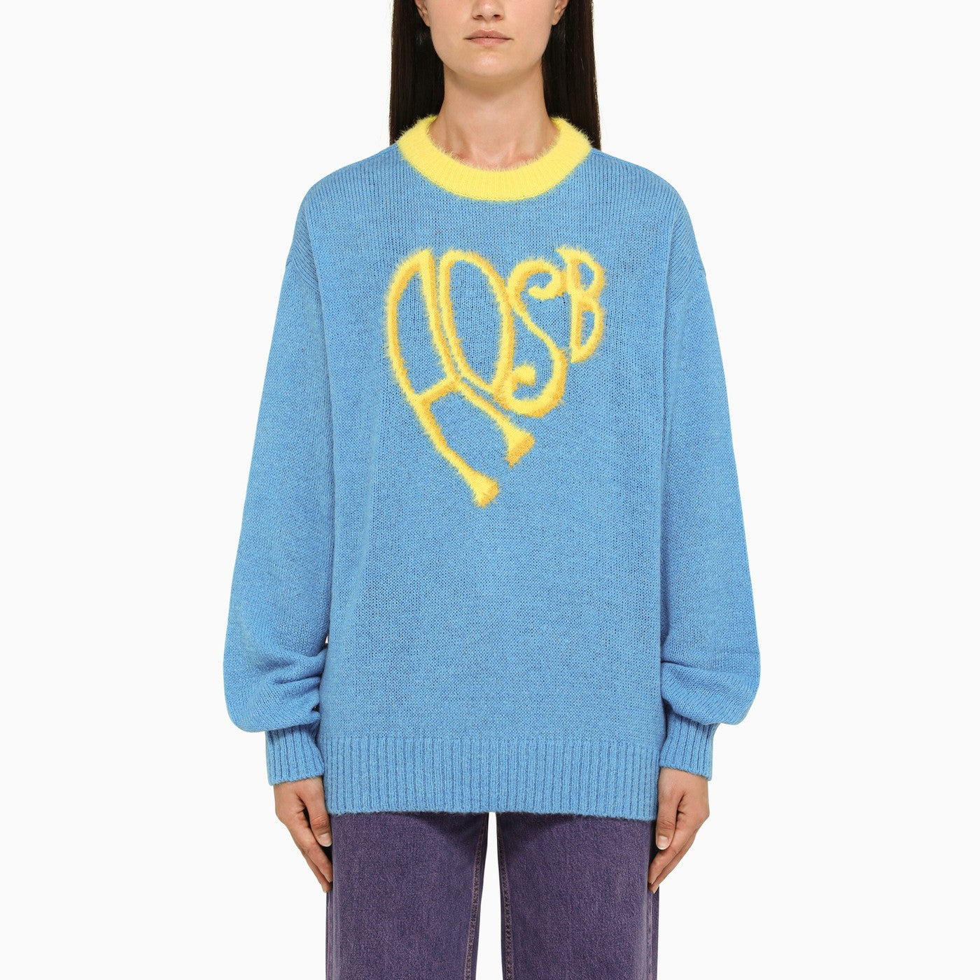 La maglia da scollo azzurra di Andersson azzurra e gialla, con bordi a coste e intarsia sul davanti.
