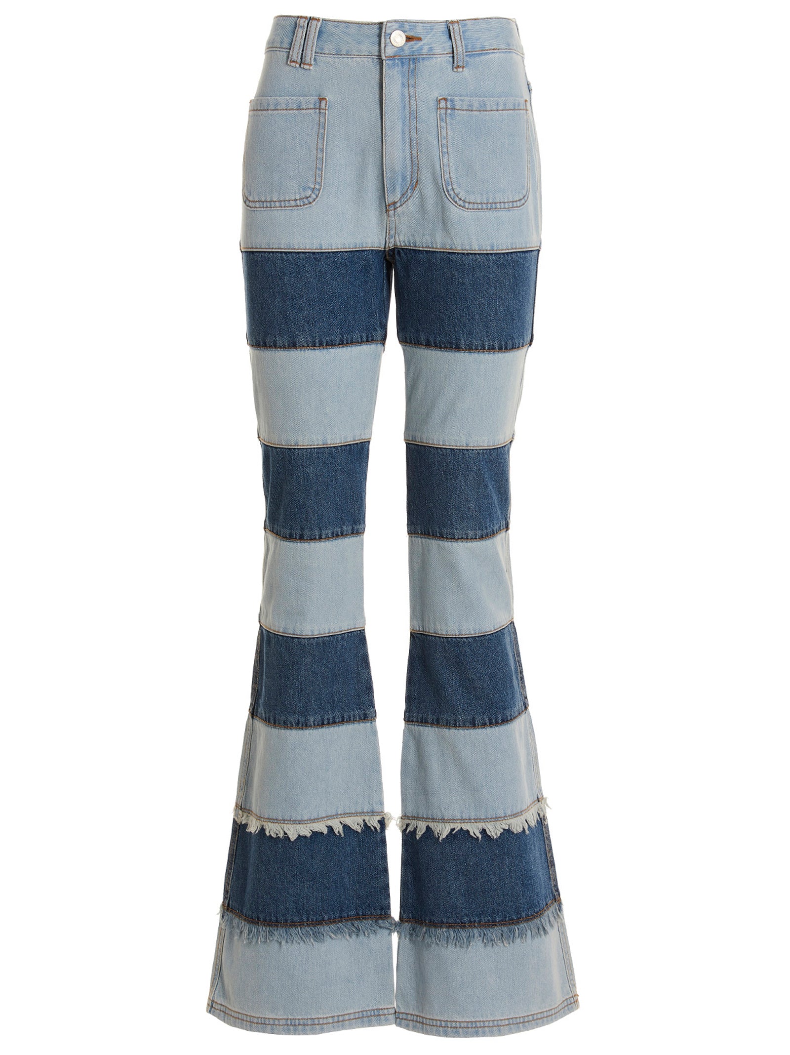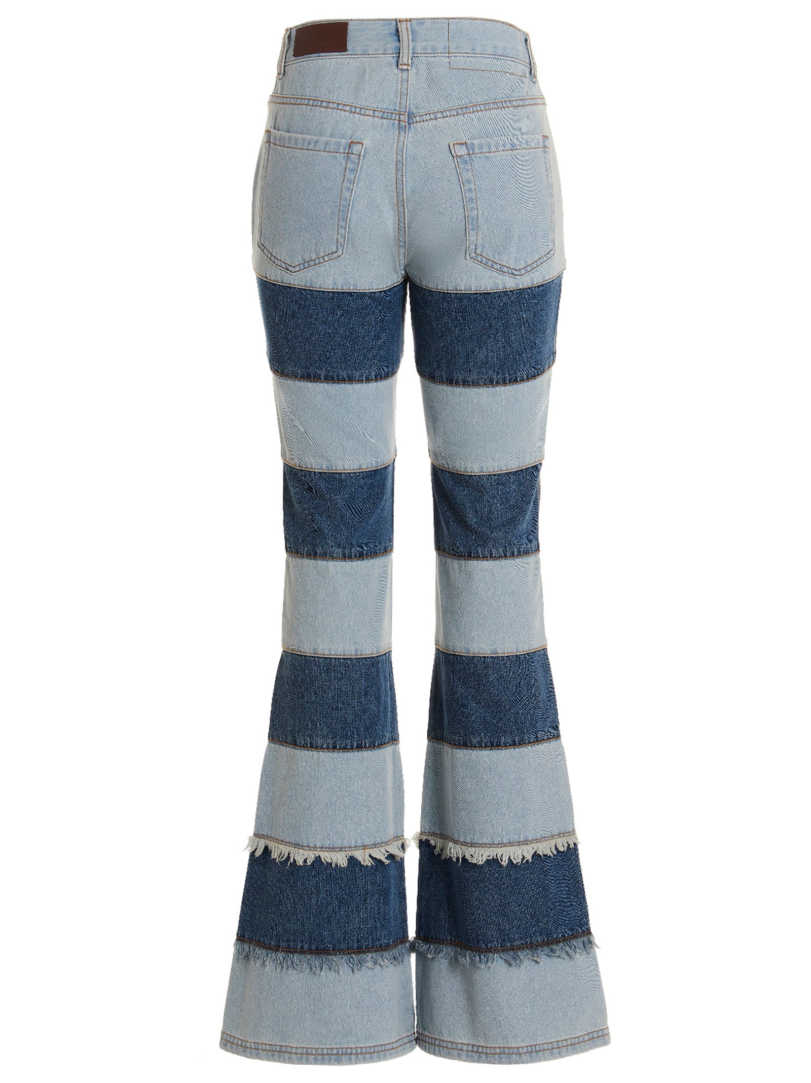Patchwork gamba gamba jeans in denim con zip e fissaggio a bottone.