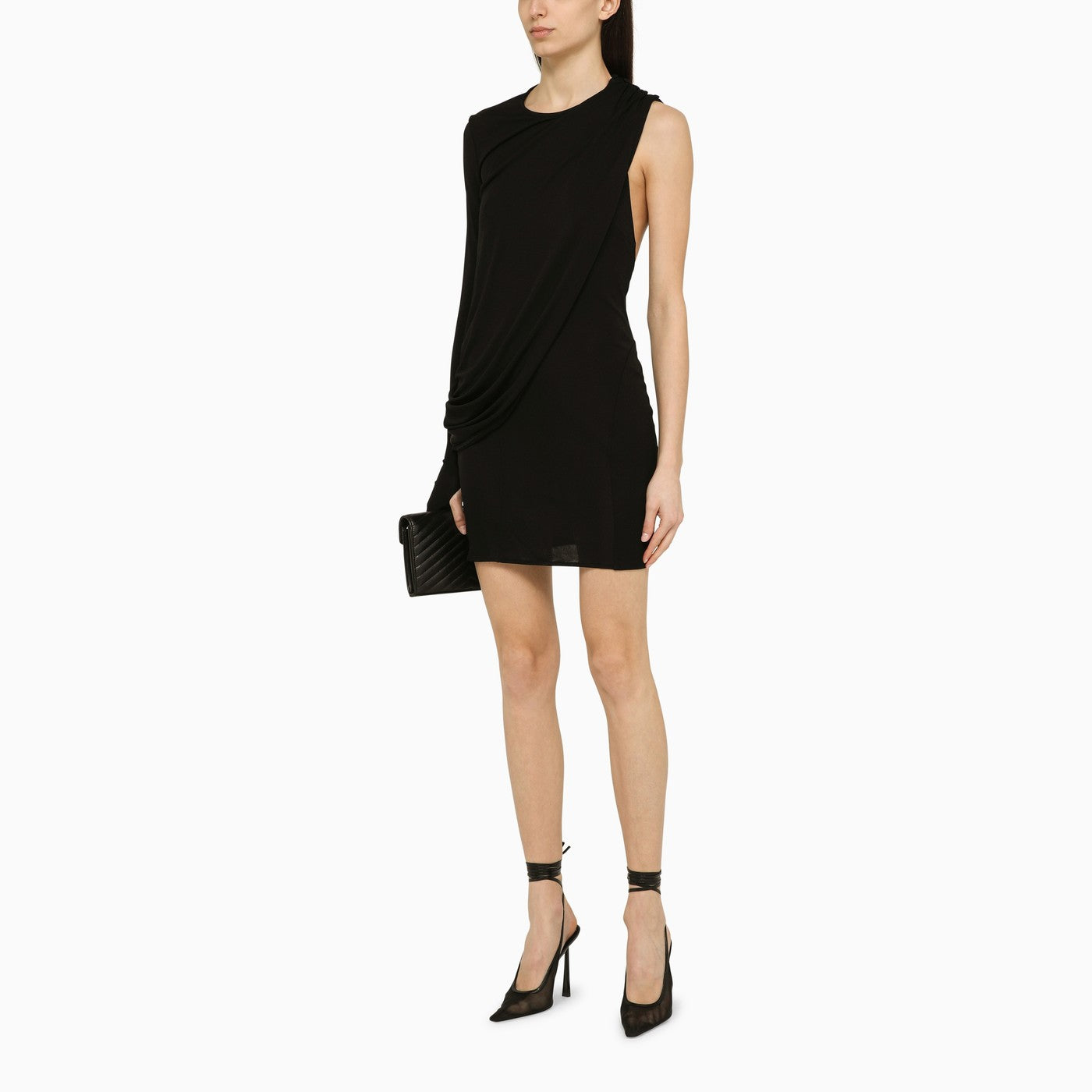 Andreādamo Black Viscose con una spalla con drappeggio