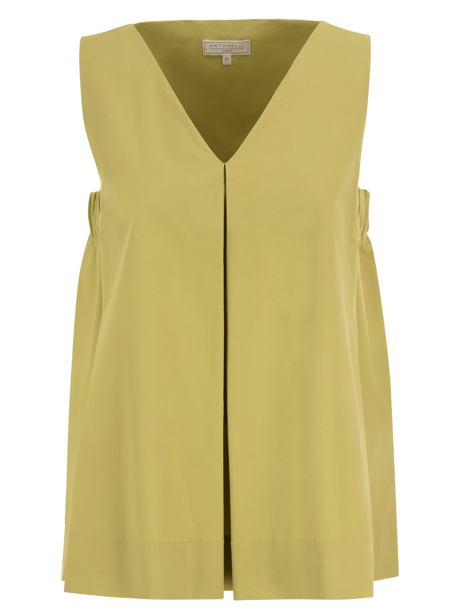 Antonelli Firenze presenta questo top aderente per un maggiore comfort. La miscela di cotone rende questo abito perfetto per la stagione estiva. - Sleeveless - Wide Fit - V -Nine - Pleat at Front Designer ID: J5663 135B 605