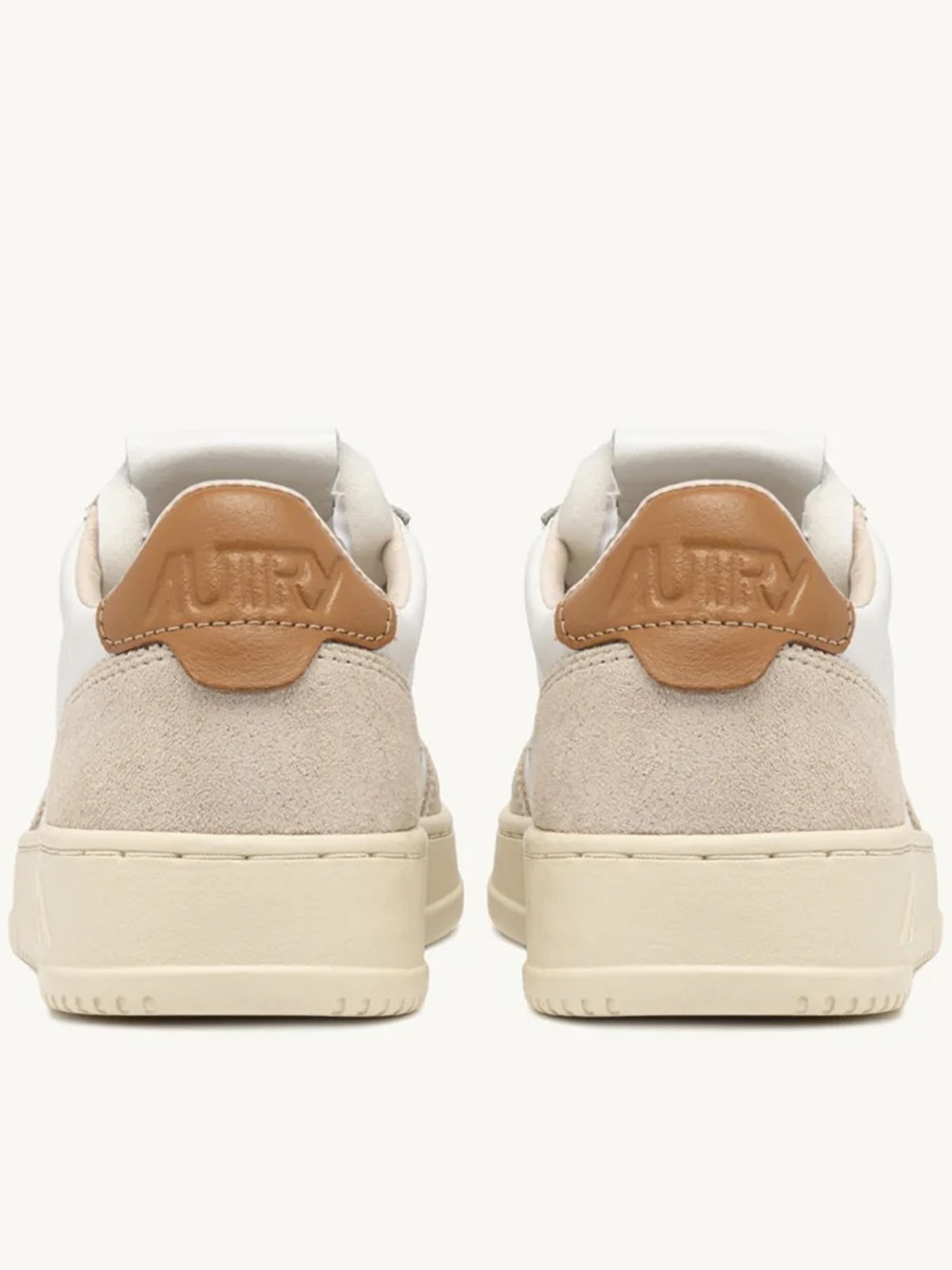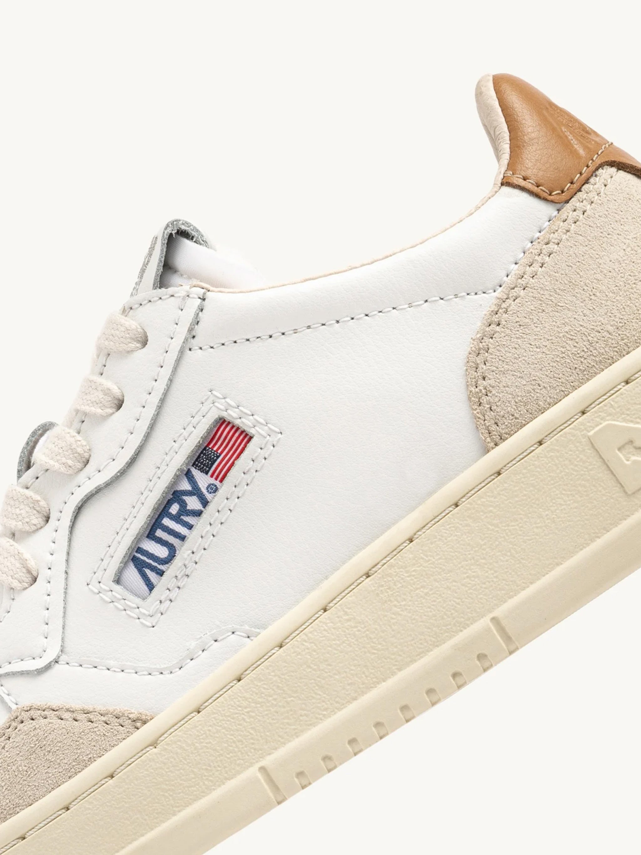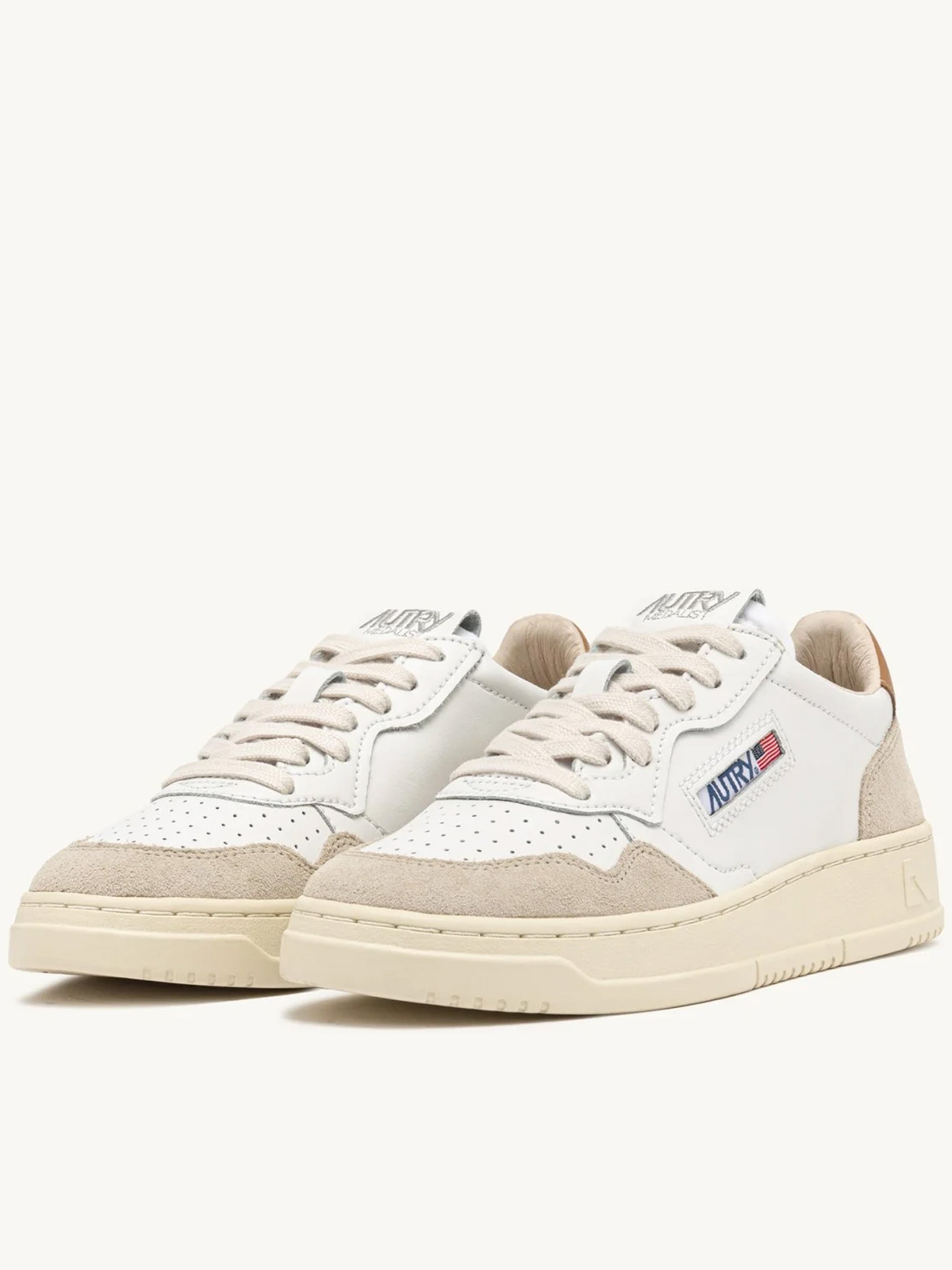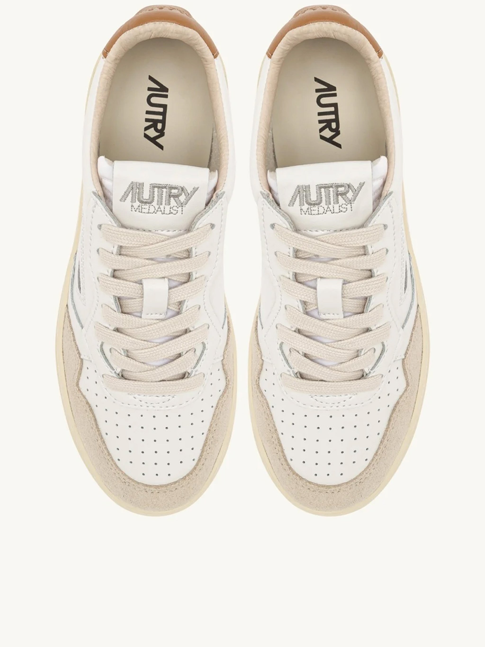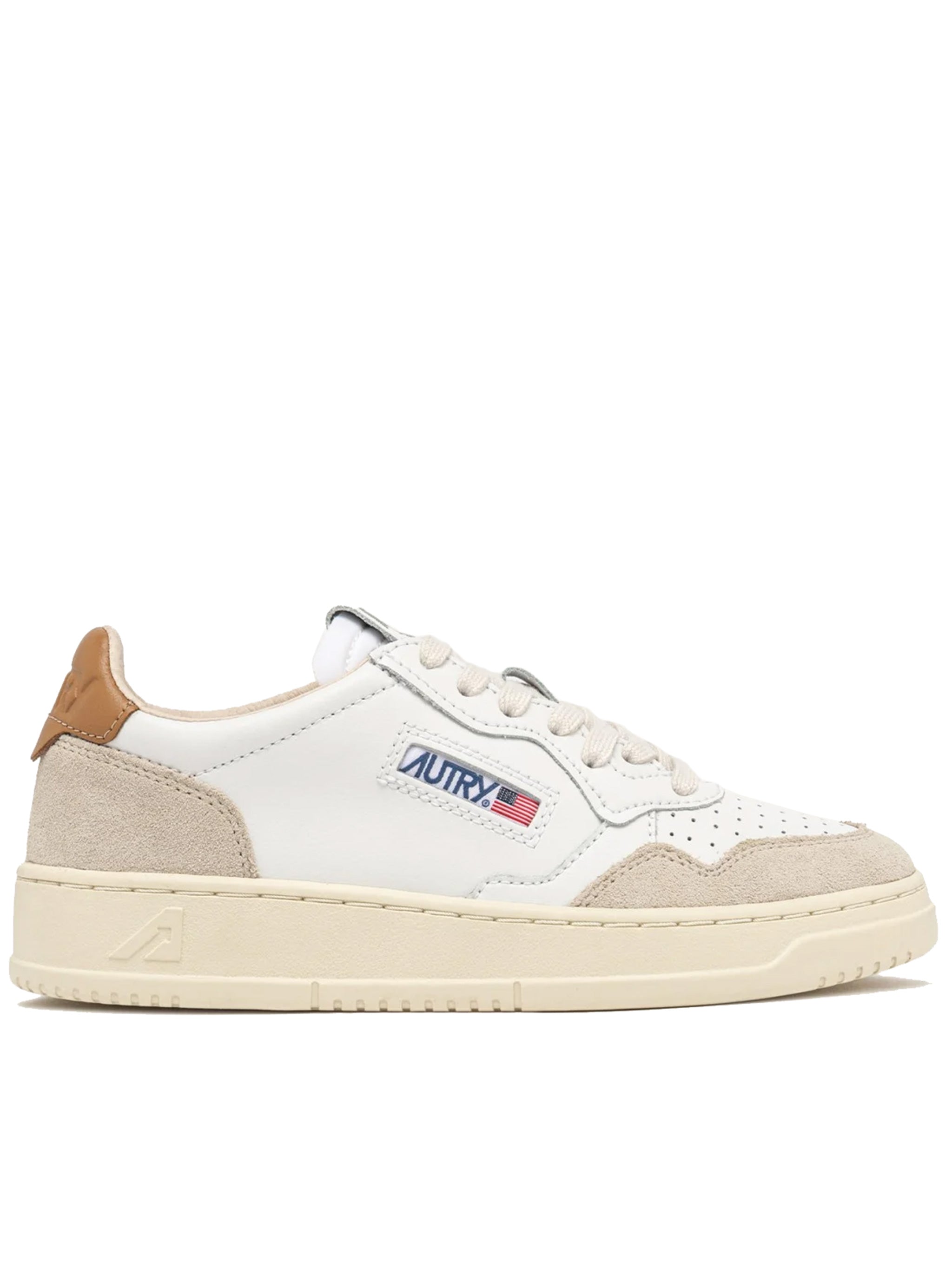 Le sneakers Autry Medalist Low combinano pelle bianca e suede beige per un look tennis anni ’80 rivisitato. Comfort garantito da suola rialzata e colletto imbottito, con dettagli marroni e logo Autry. Perfette per uno stile vintage contemporaneo. Compra ora!