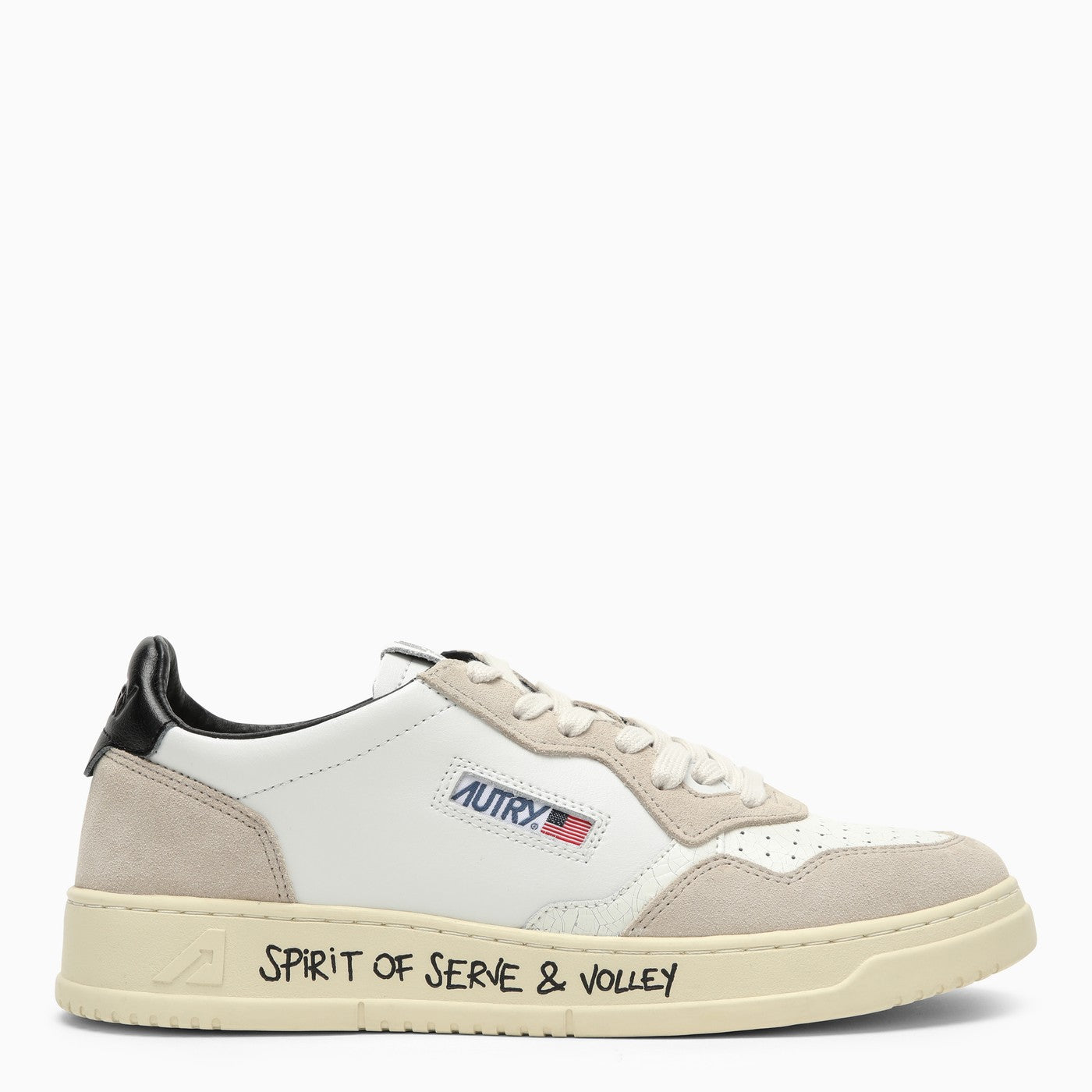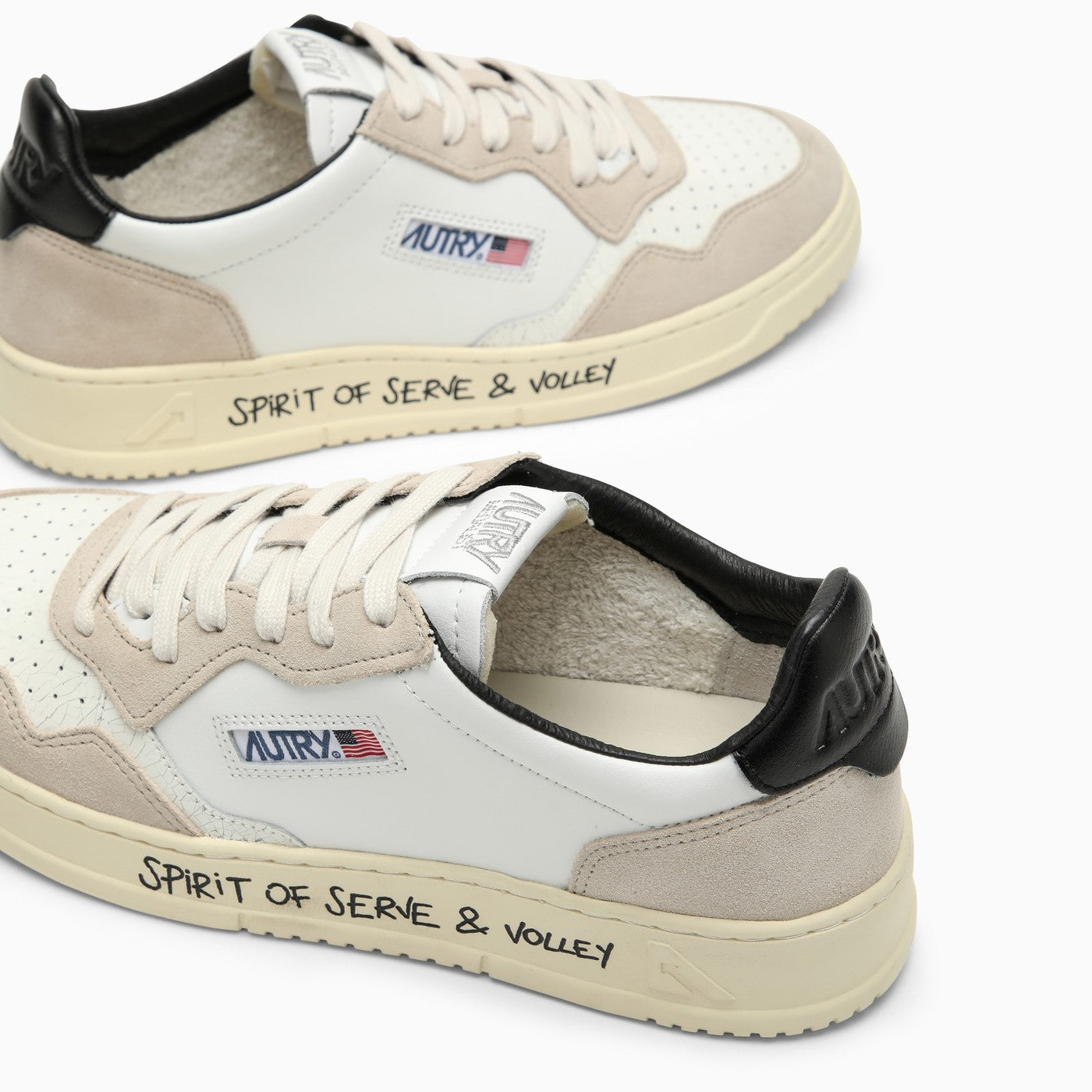 Medaglia in pelle bianca e medaglia in pelle scamosciata Low Trainer di Autry presenta una punta perforata, la fissaggio anteriore allacciato, la lingua in pelle con etichetta cucita tono su tono, colletto imbottito, iconico tallone posteriore nero con logo in rilievo, pelle in pelle e cotone Terry e una fodera in cotone e un fodera di cotone e un cotone e una fodera in cotone e un cotone e un rivestimento di cotone e un cotone e una fodera di cotone e un cotone e una fodera di cotone e un cotone e una fodera di cotone e un coito suola in gomma color crema con stampa "Spirit of Serv & Volley".
