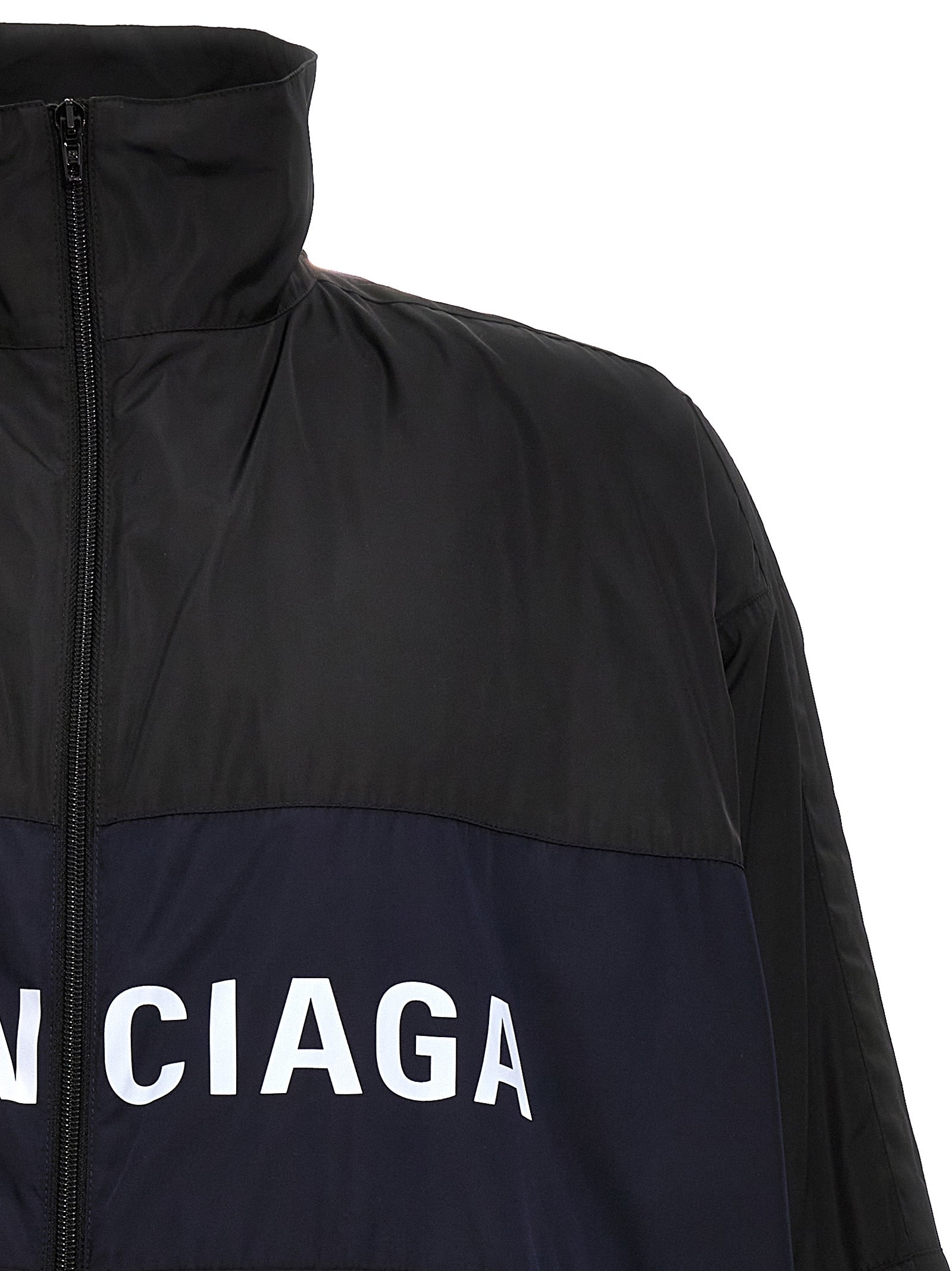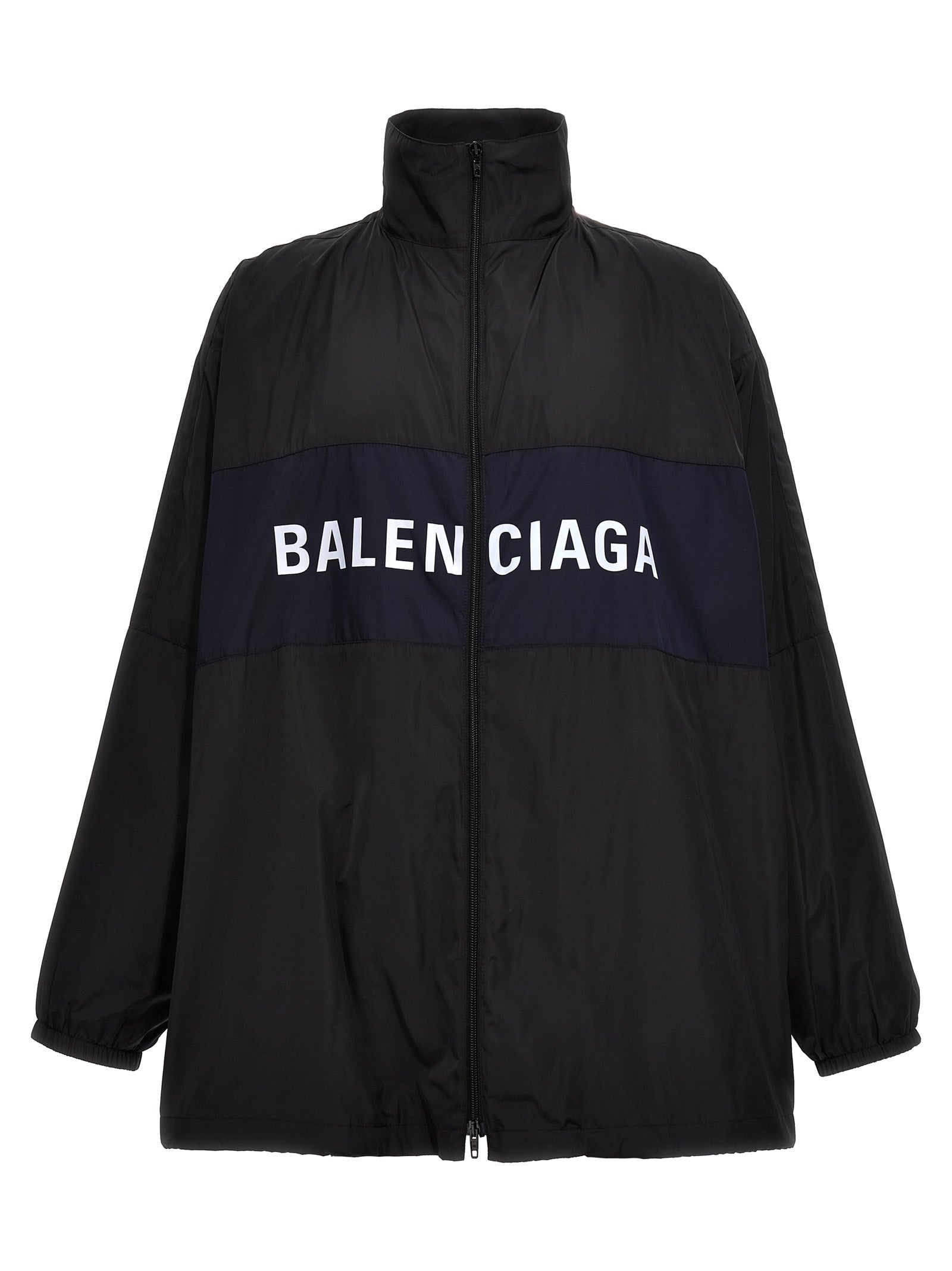 Giacca micro Faille leggera, stampa logo "Balenciaga" anteriore, collo alto, chiusura a zip, tasche, maniche lunghe con polsini elastici, coulisse regolabili sull'orlo.