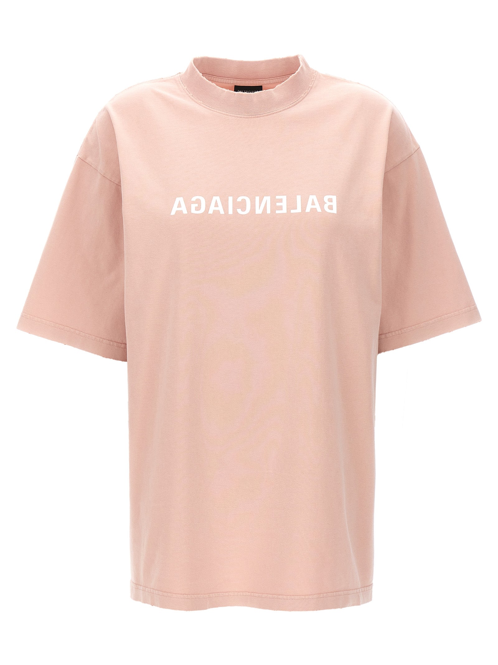 T-shirt in cotone "Balenciaga Mirror" con dettagli in difficoltà, stampa sul logo anteriore, collo dell'equipaggio, maniche corte.