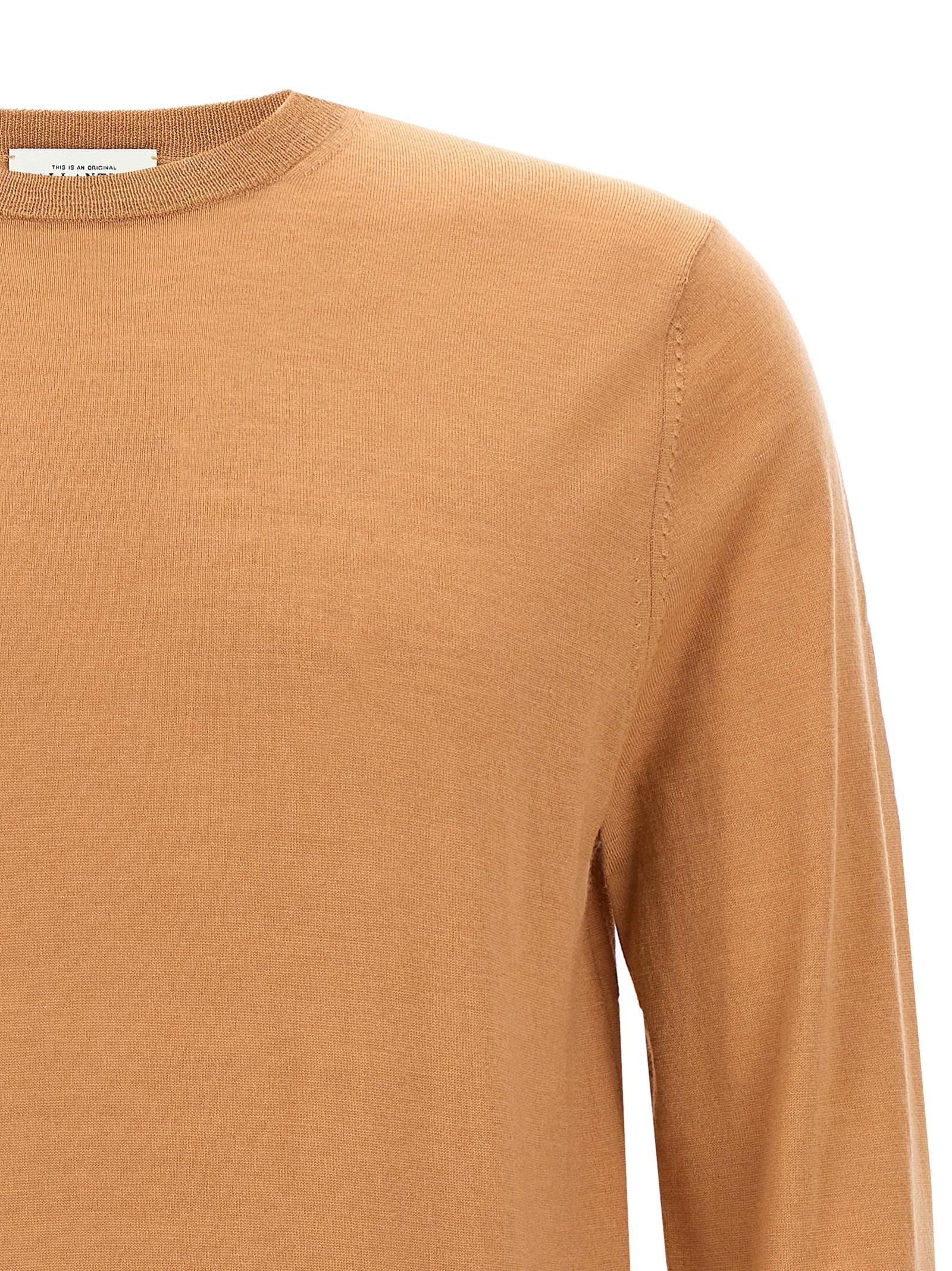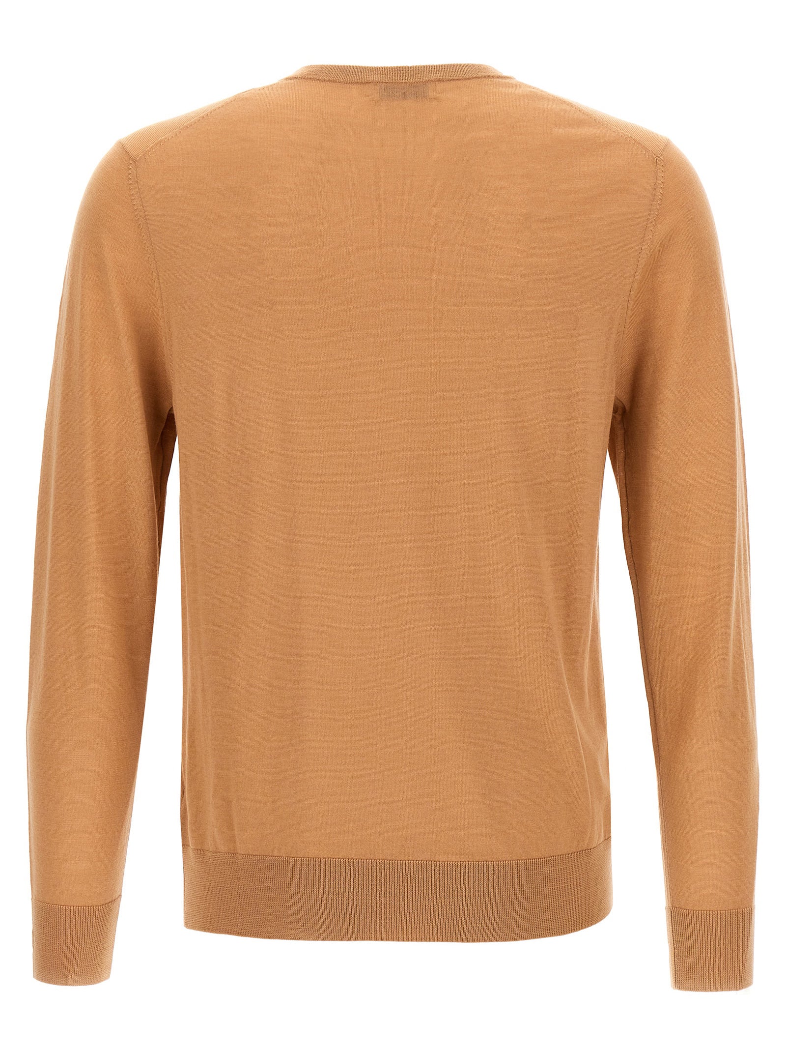 Maglione di lana leggera "collo r" con collo dell'equipaggio, maniche cantaccanti lunghe.