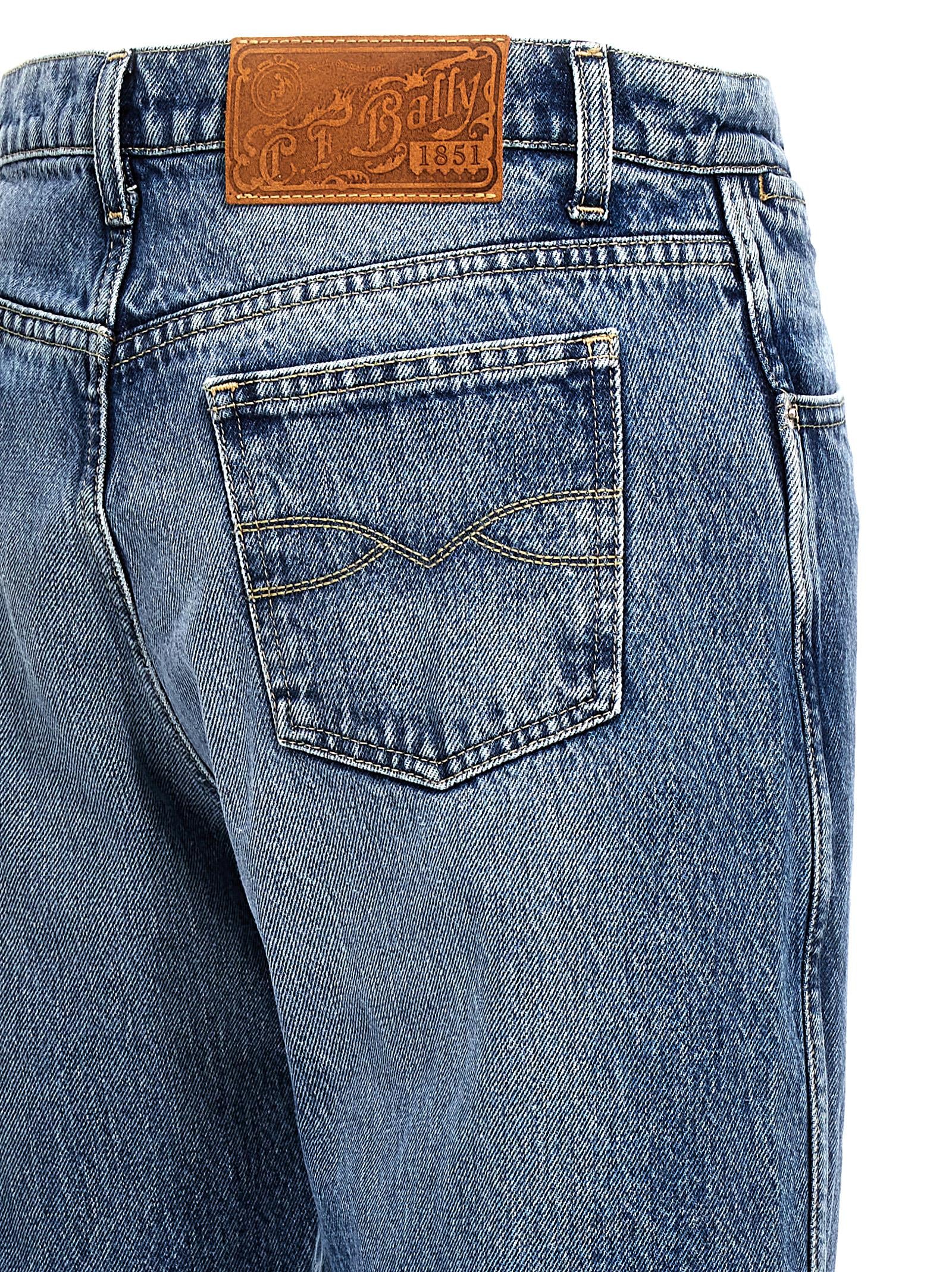 Jeans in denim in cotone con chiusura con zip e bottoni, cinque tasche e tag logo in pelle.