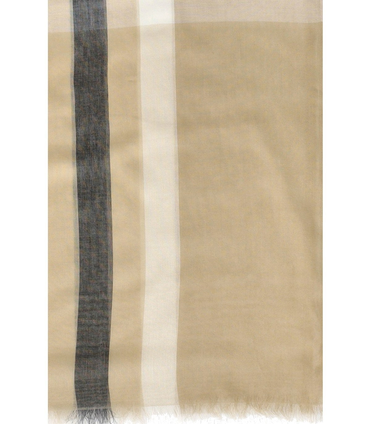 Barbour Bethany Stola è realizzato in cotone in sfumature di beige, rosa e nero. Bordi sfrenati, misurazioni 200x100 cm. Composizione: cotone 100%.
