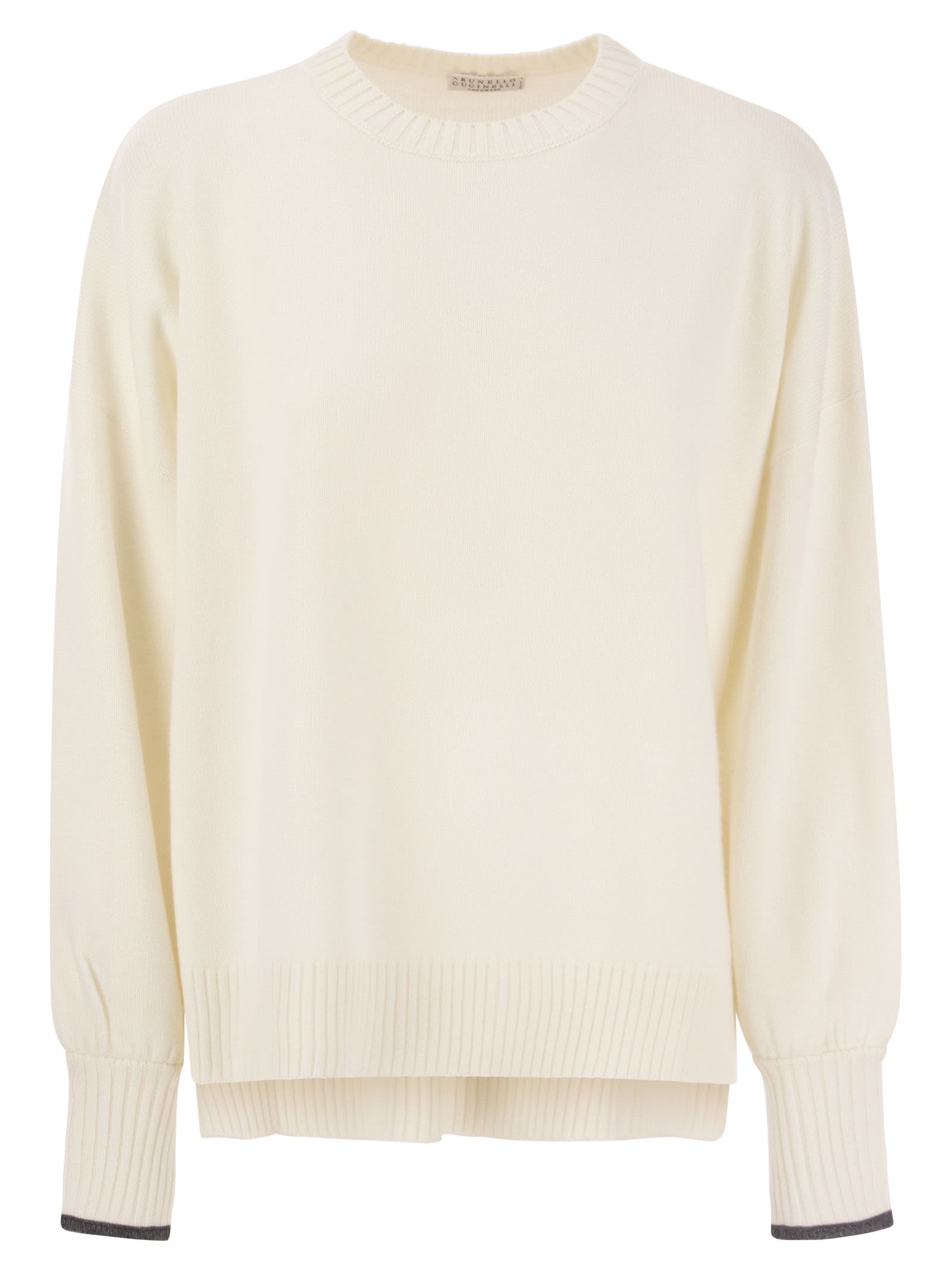 Brunello Cucinelli Cashmere a maglia con polsini di contrasto lucido