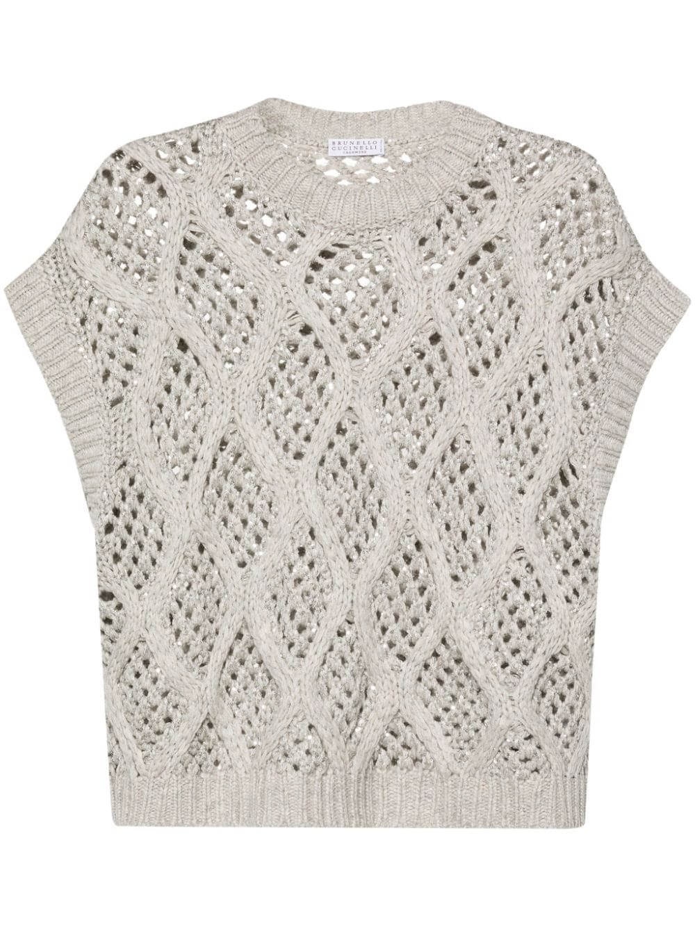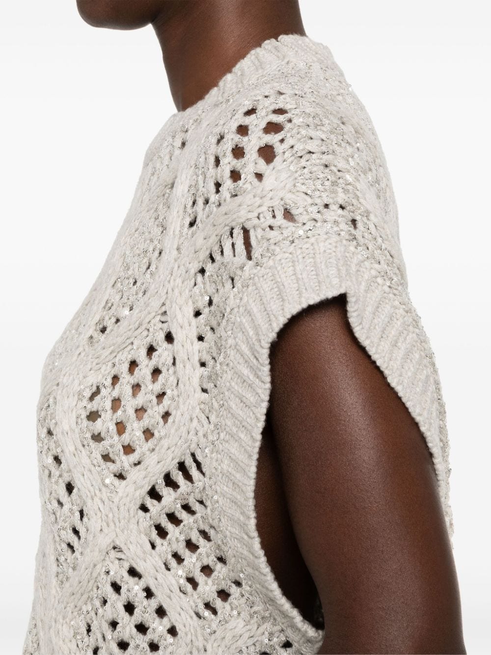 Cashmere grigio chiaro a maglia costruzione a maglia Open di paillettestri a costumini a costumini senza maniche orlo dritto