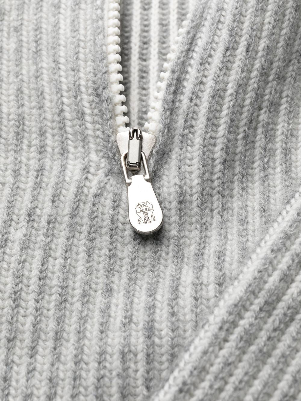 Cashmere grigio chiaro a costola a costiera con imbuto al collo corto zip corto zip maniche di raglan lungo orlo dritto