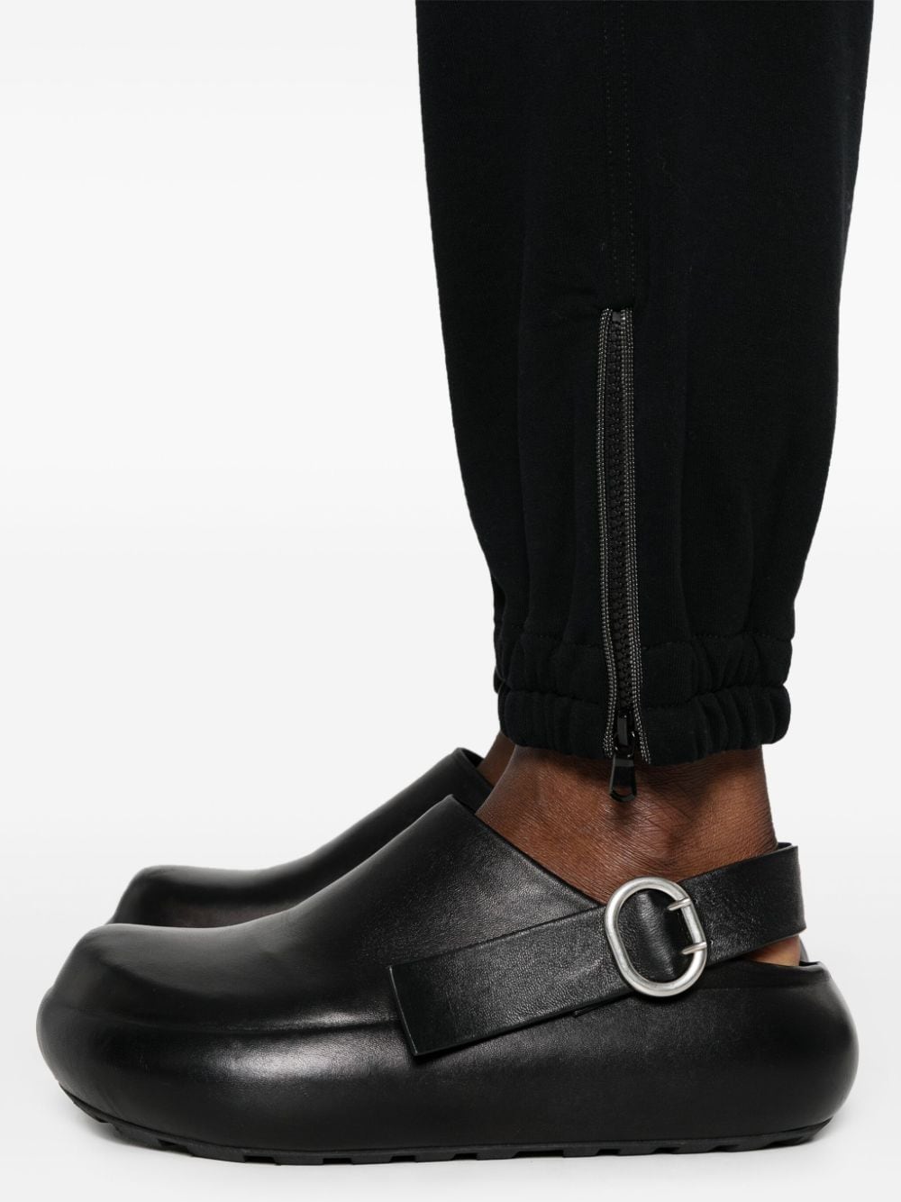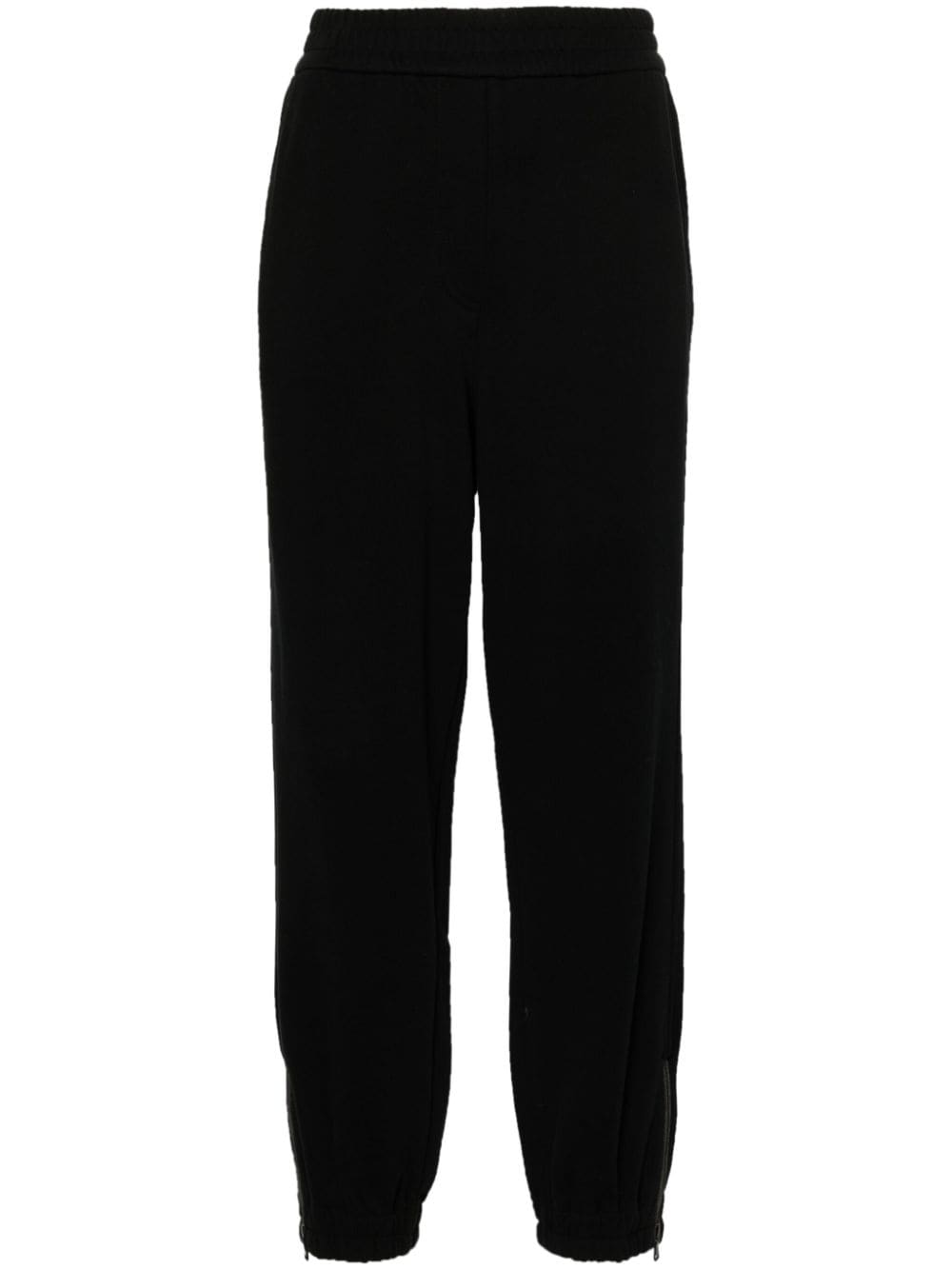 Texture in cotone nero texture elasticata elastica in finta volare due tasche diagonali ai lati due tasche a forcella posteriore gamba rastremata elasticizzate caviglie