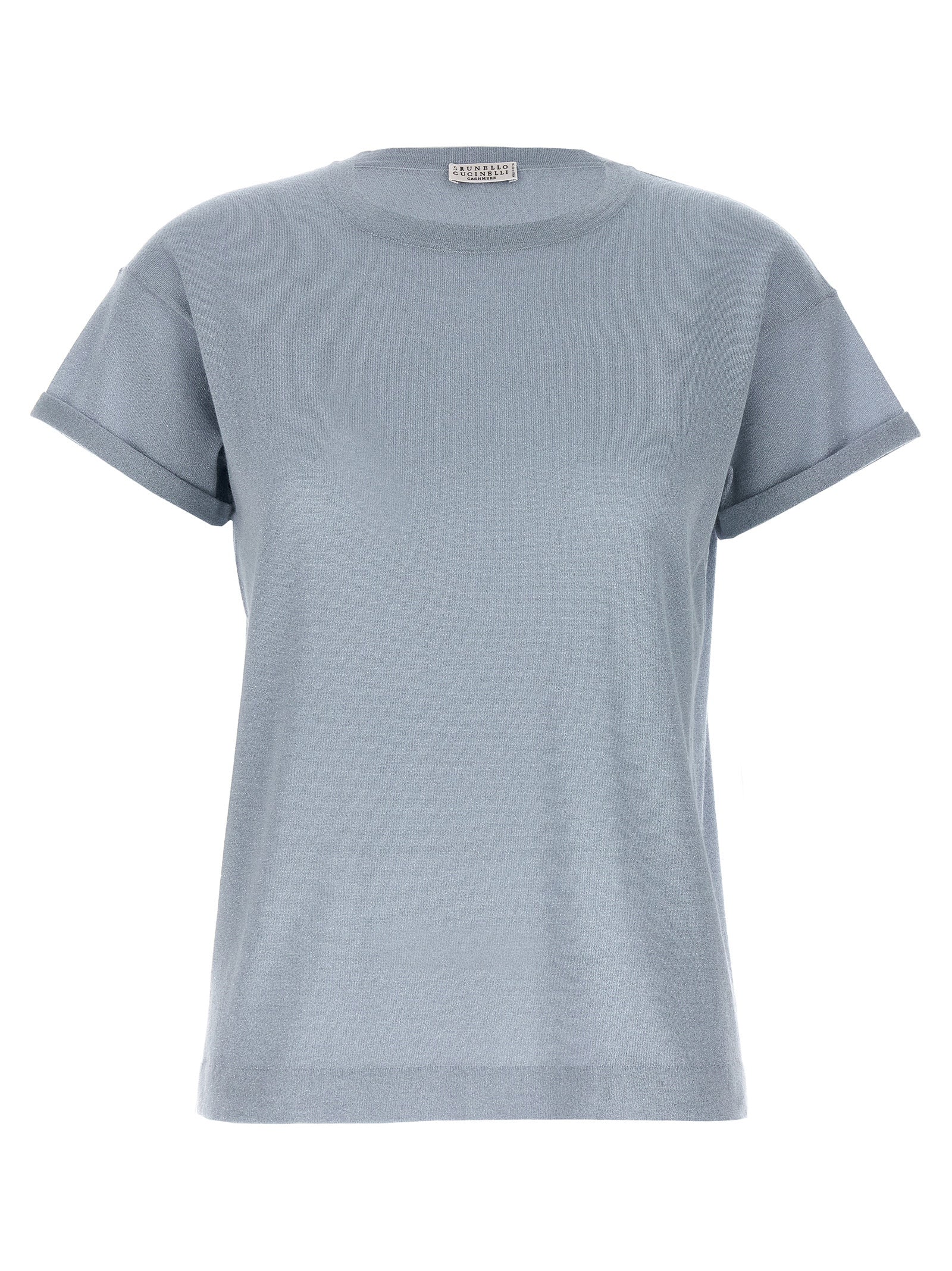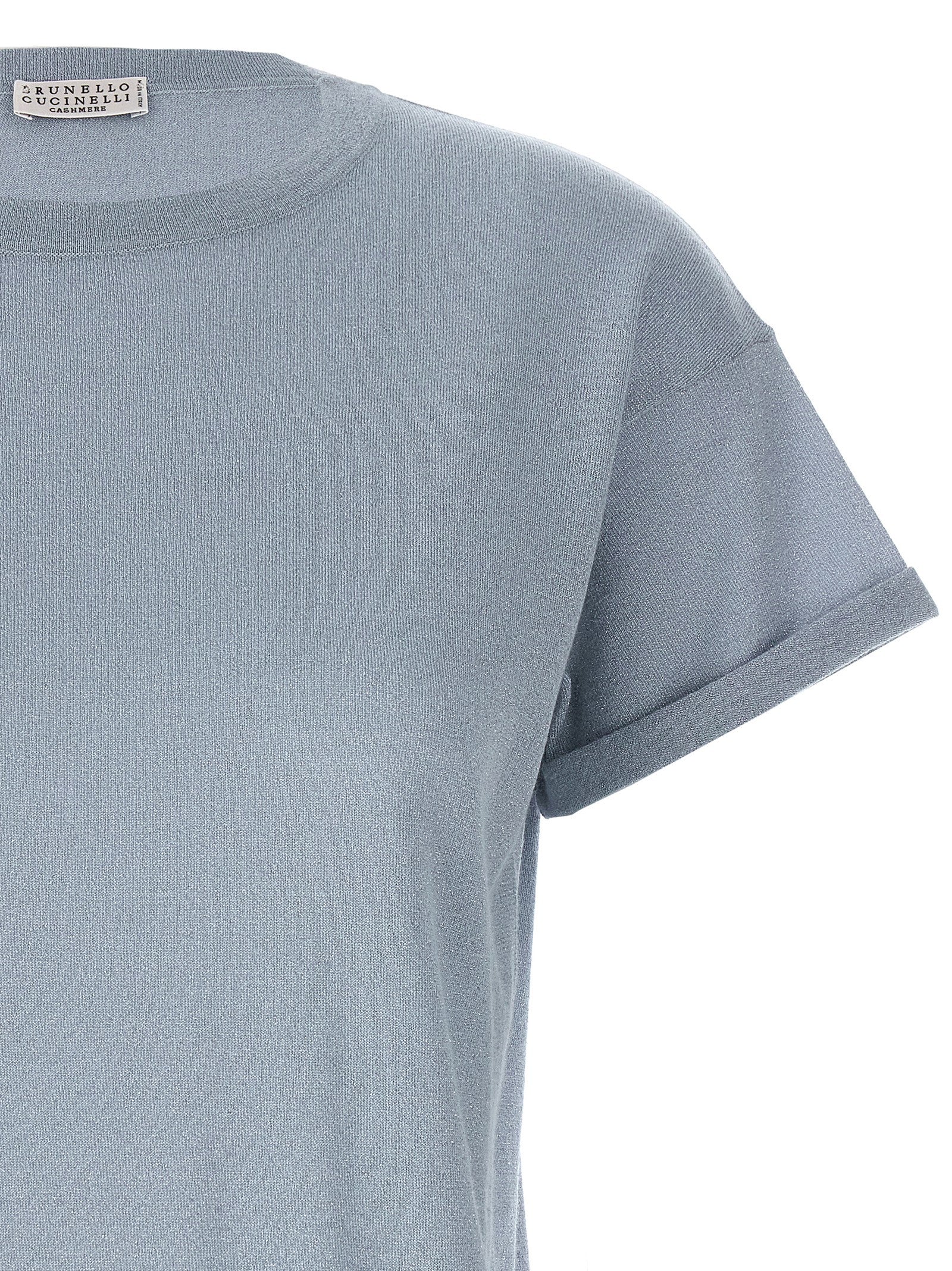 Significa a maniche corte, maglione in una miscela di cachemire e seta con fili Lurex.