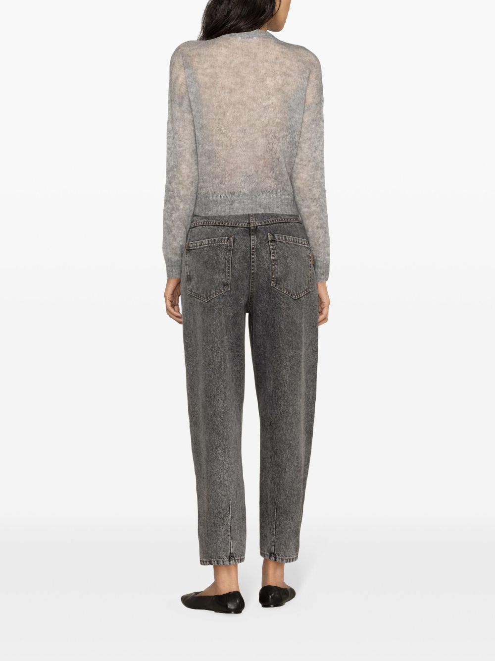 miscela grigia miscela aperta a maglia spazzolata a costine maniche lunghe a vello a costine e orlo dritti ritagliati