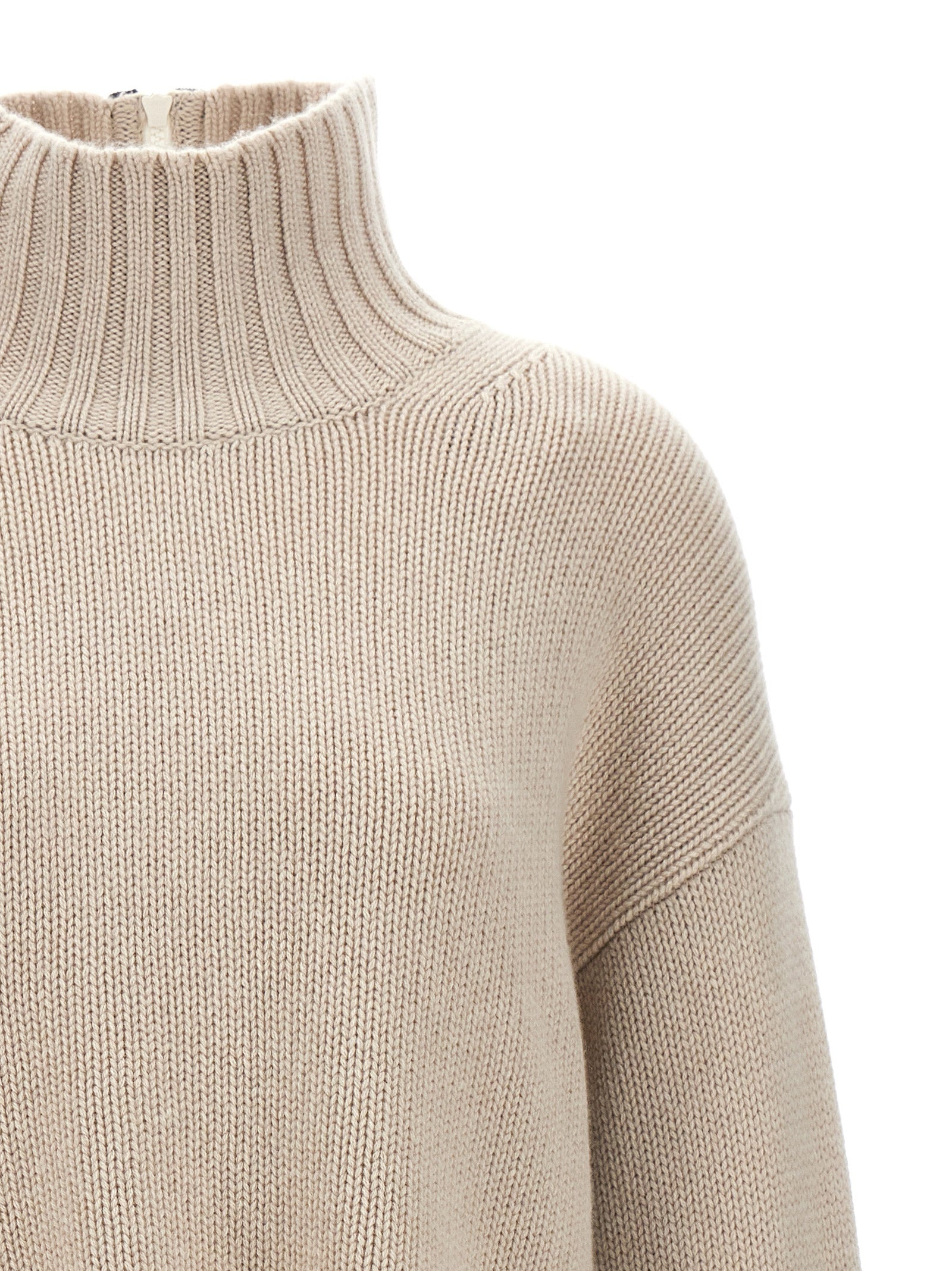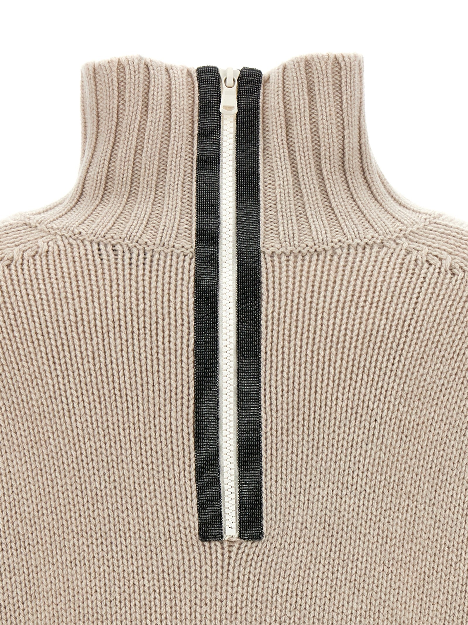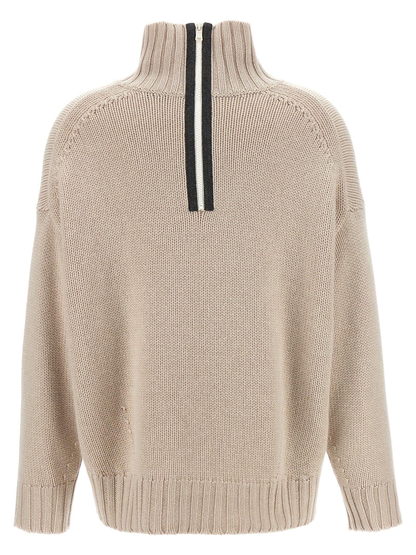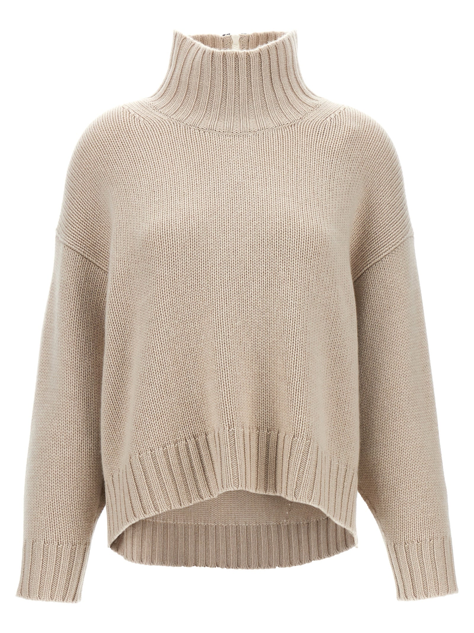 Sighiplo di cashmere con collo alto con mezza zip sul retro, dettaglio "monile", maniche cantaccanti lunghe.