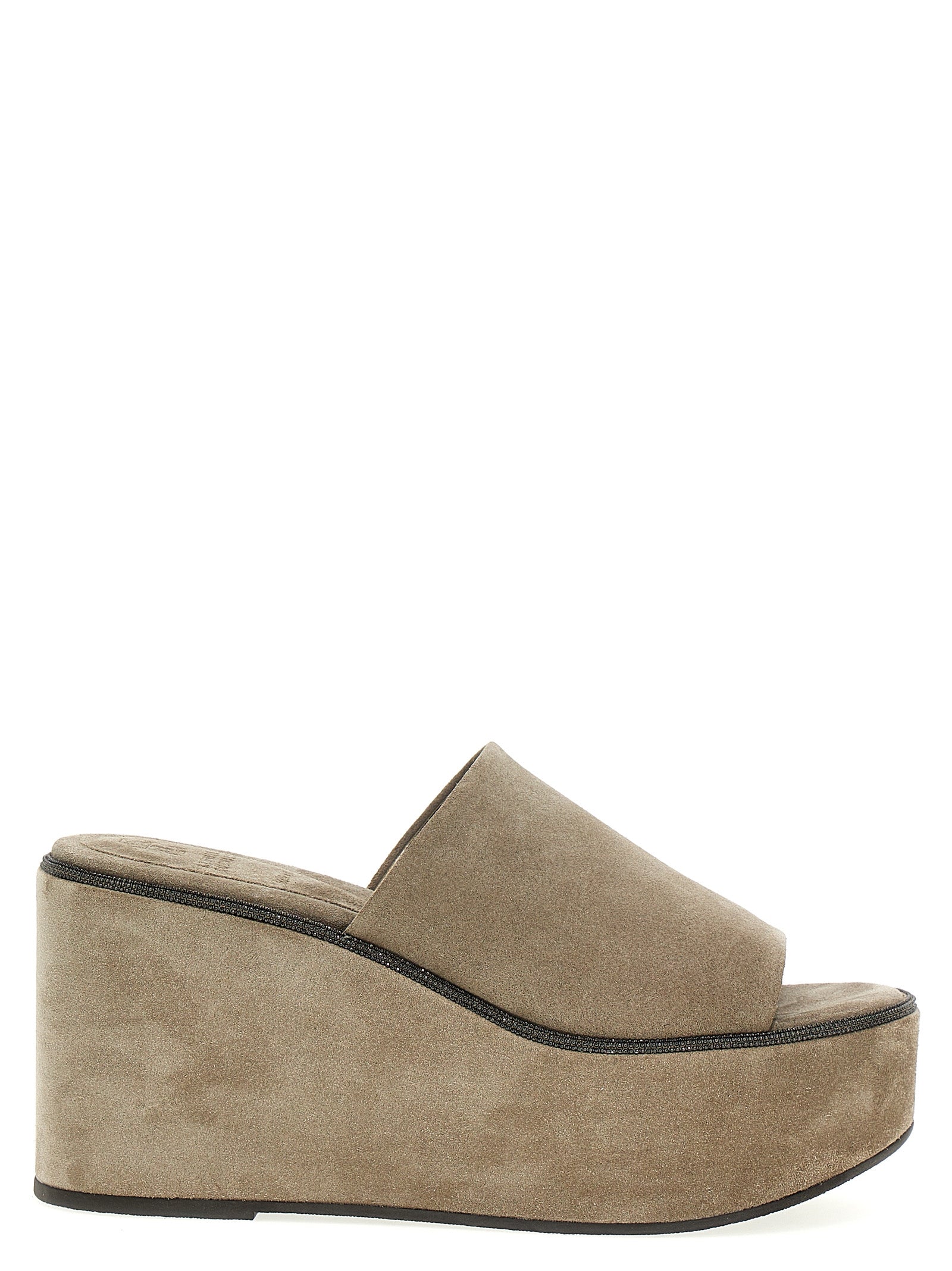 Zeppe in pelle scamosciata con dettaglio "mobile", suola in pelle.
