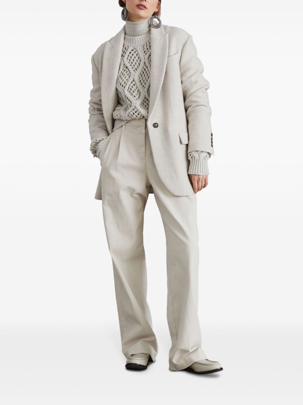 Cashmere White Blend Signature Monili Dettaglio Monili Picco Picco Rinserisci Pulsante Flaccamento Flaccante Long Polsini Poccipli Tasto Tasca Due Tasche anteriori Tasche Fronte Venta posteriore Curce Curved Hem